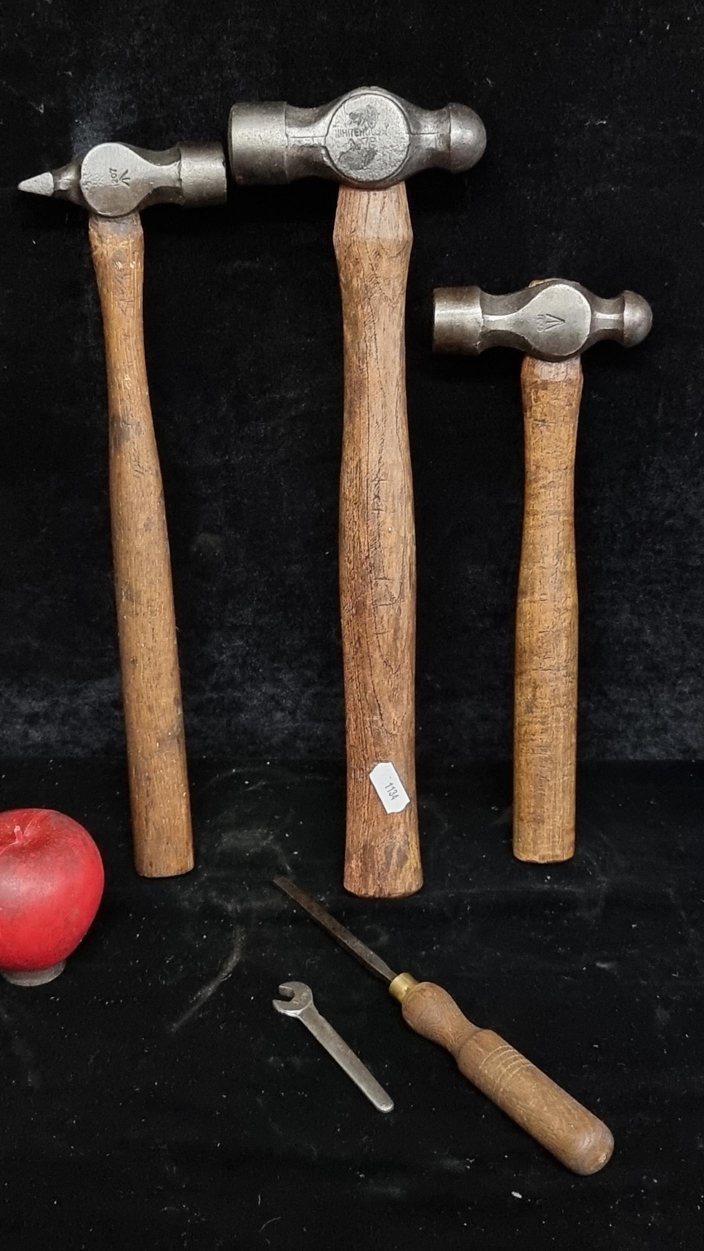 A set of five vintage British military tools by various British brands. Featuring the crow's foot stamp. Including hammers, chisels and a tiny spanner.