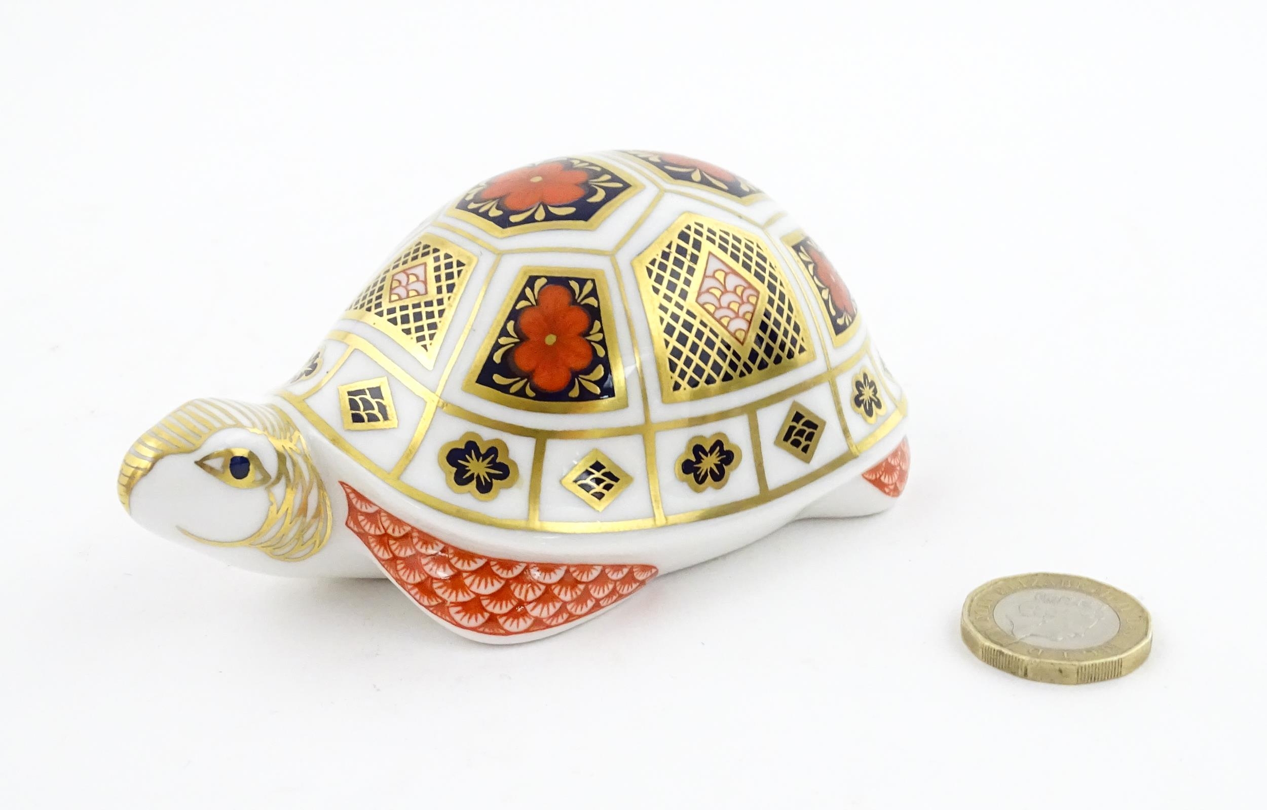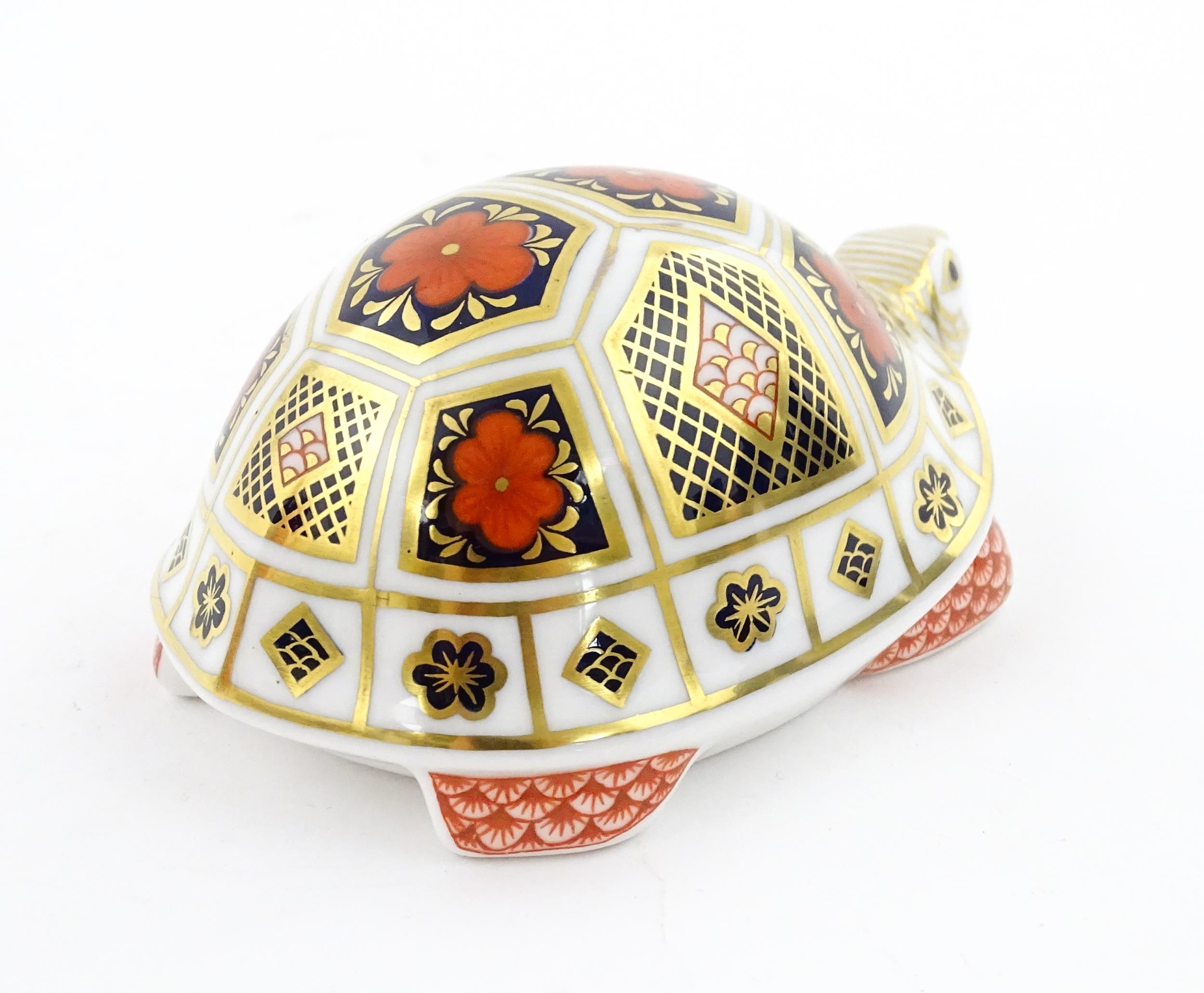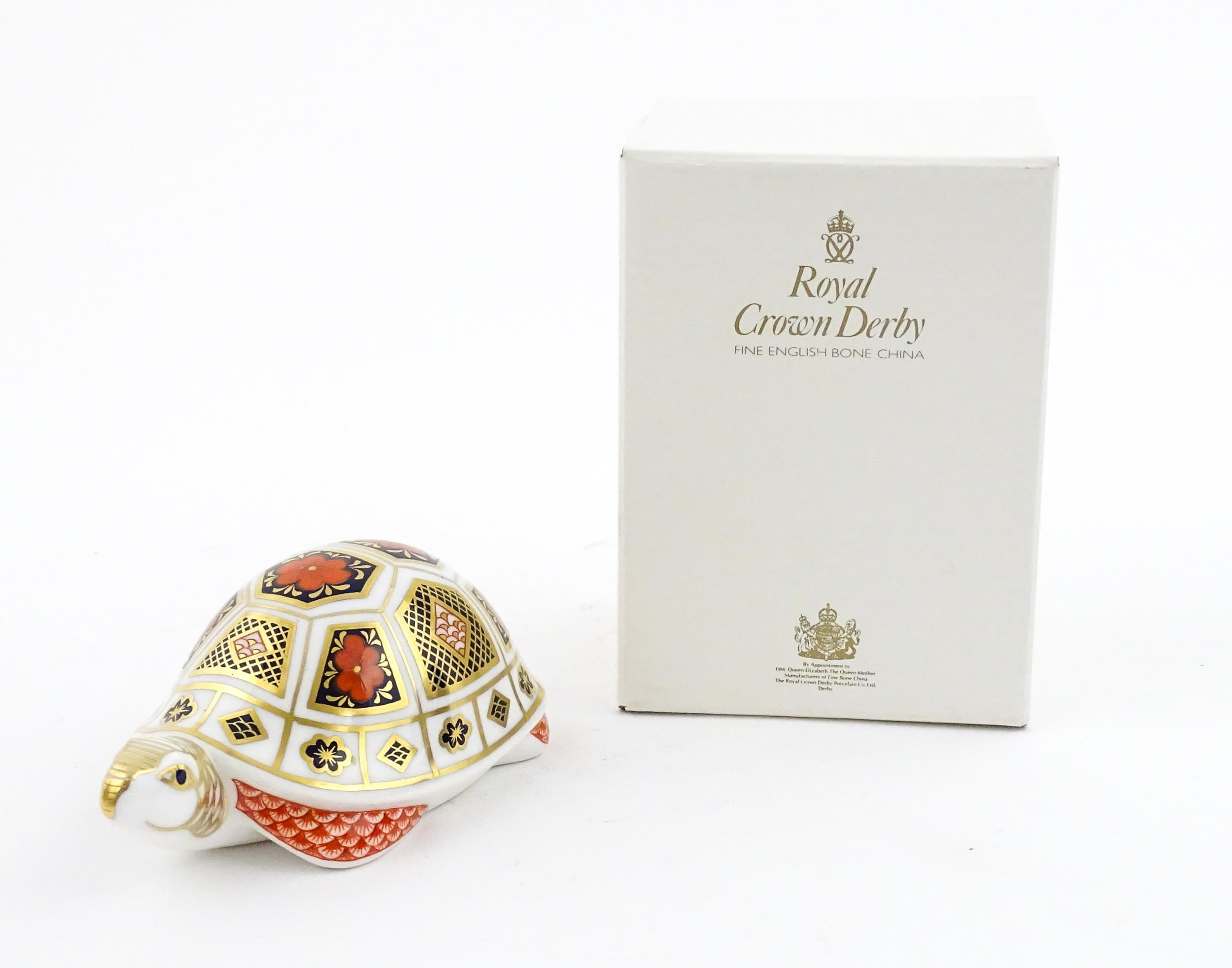 A Royal Crown Derby paperweight modelled as a Turtle. Boxed. Approx. 4 1/2" long