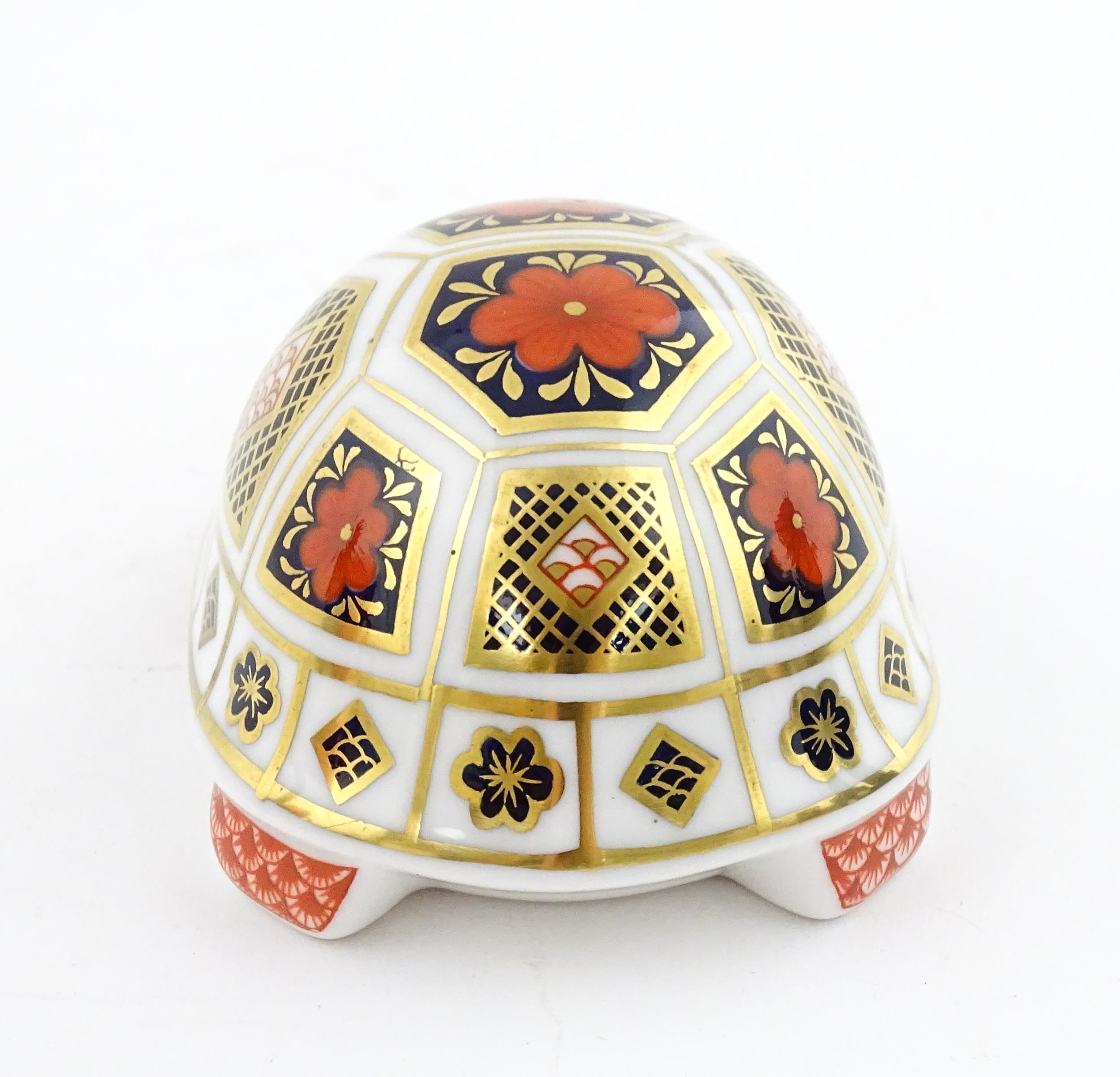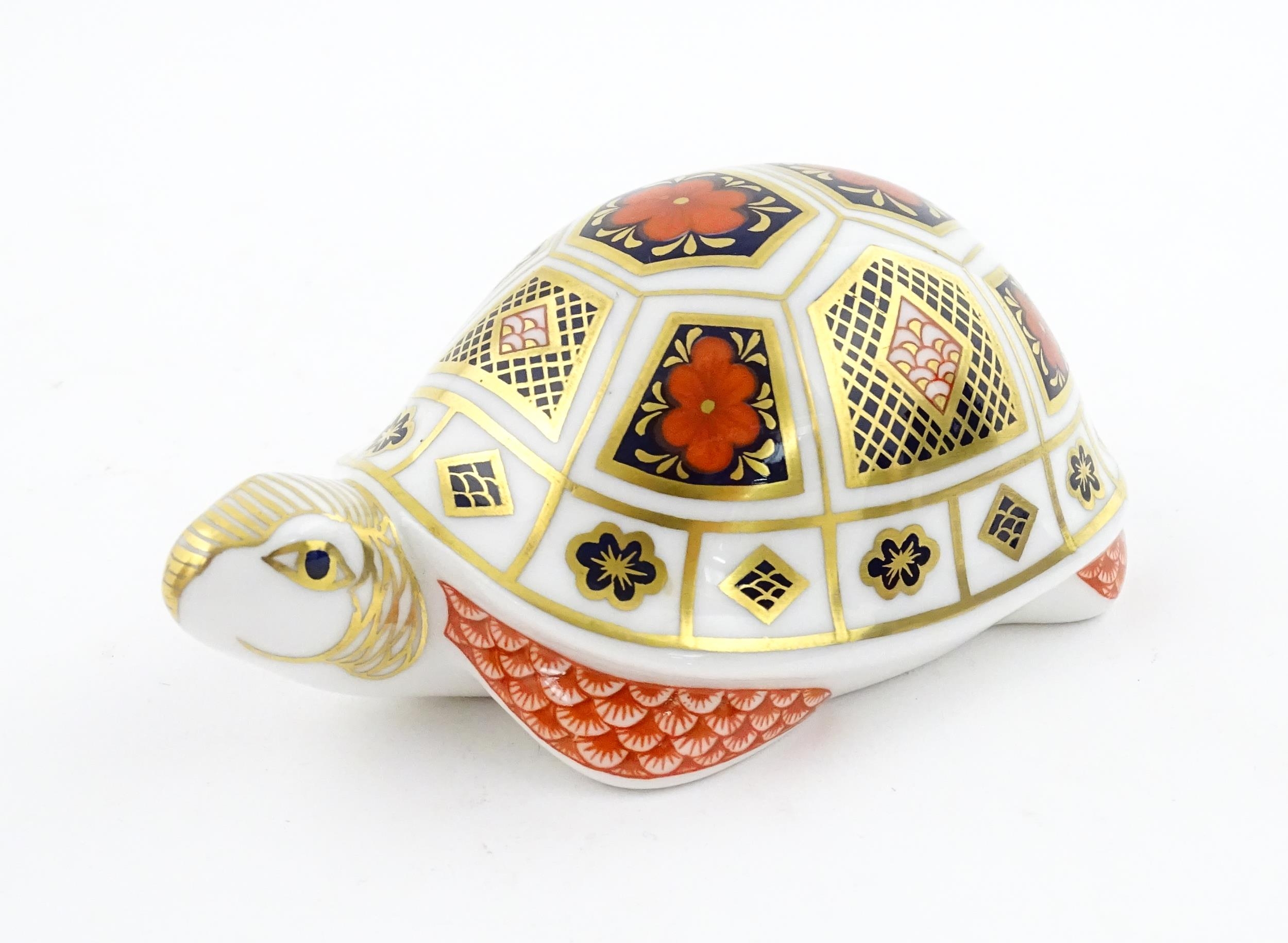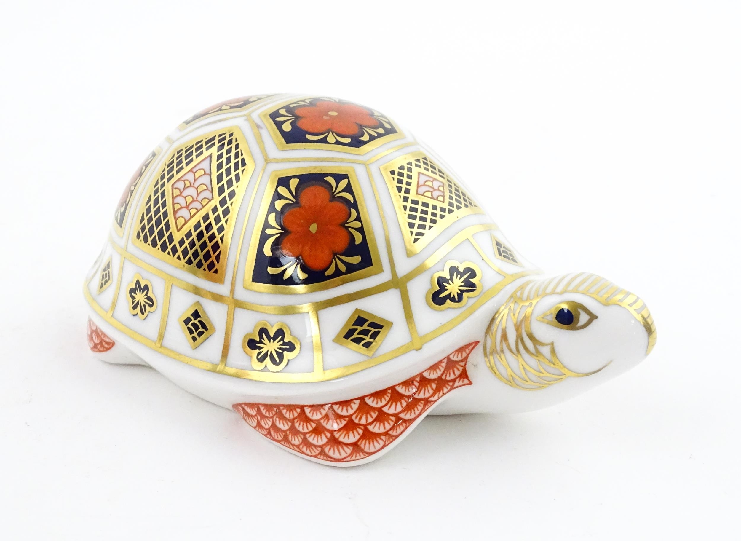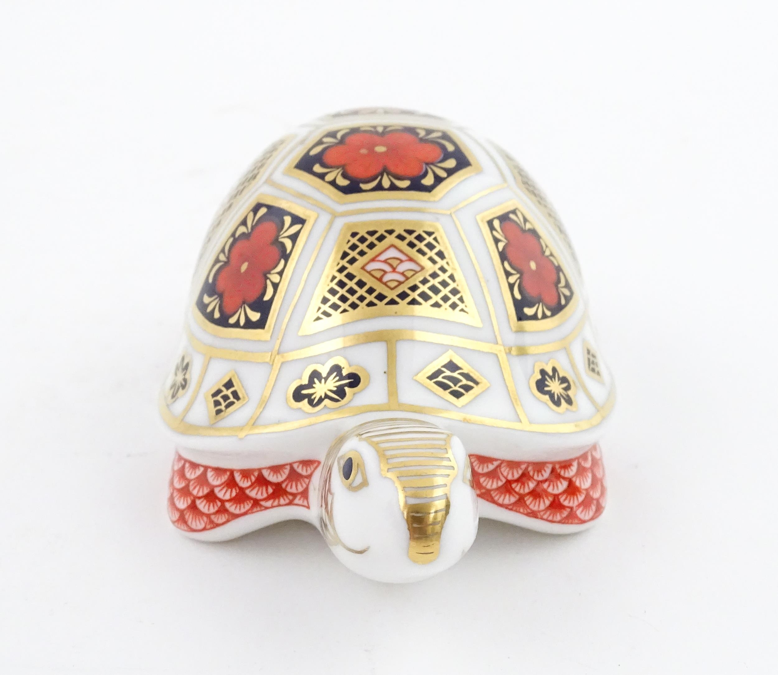 A Royal Crown Derby paperweight modelled as a Turtle. Boxed. Approx. 4 1/2" long