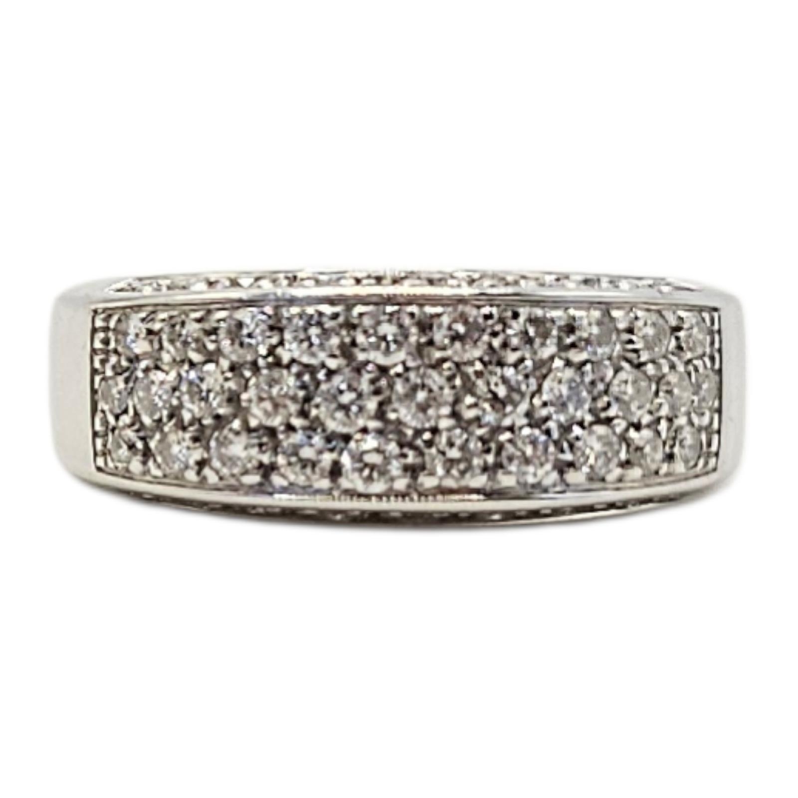 AN 18CT WHITE GOLD AND DIAMOND THREE ROW RING