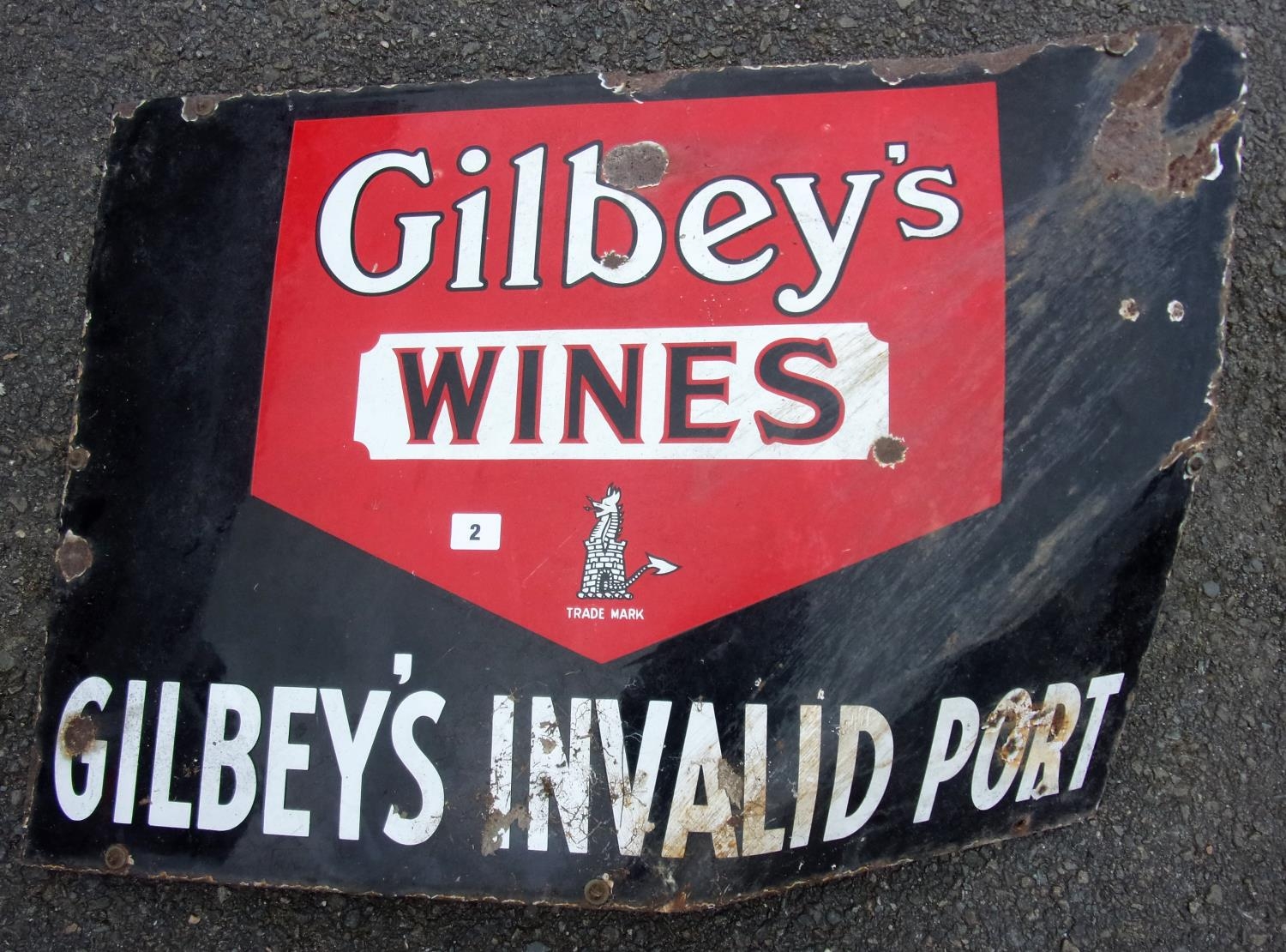ENAMEL SIGN GILBEY'S WINES, GILBEY'S INVALID PORT APPROX 30 X 21 INCHES,