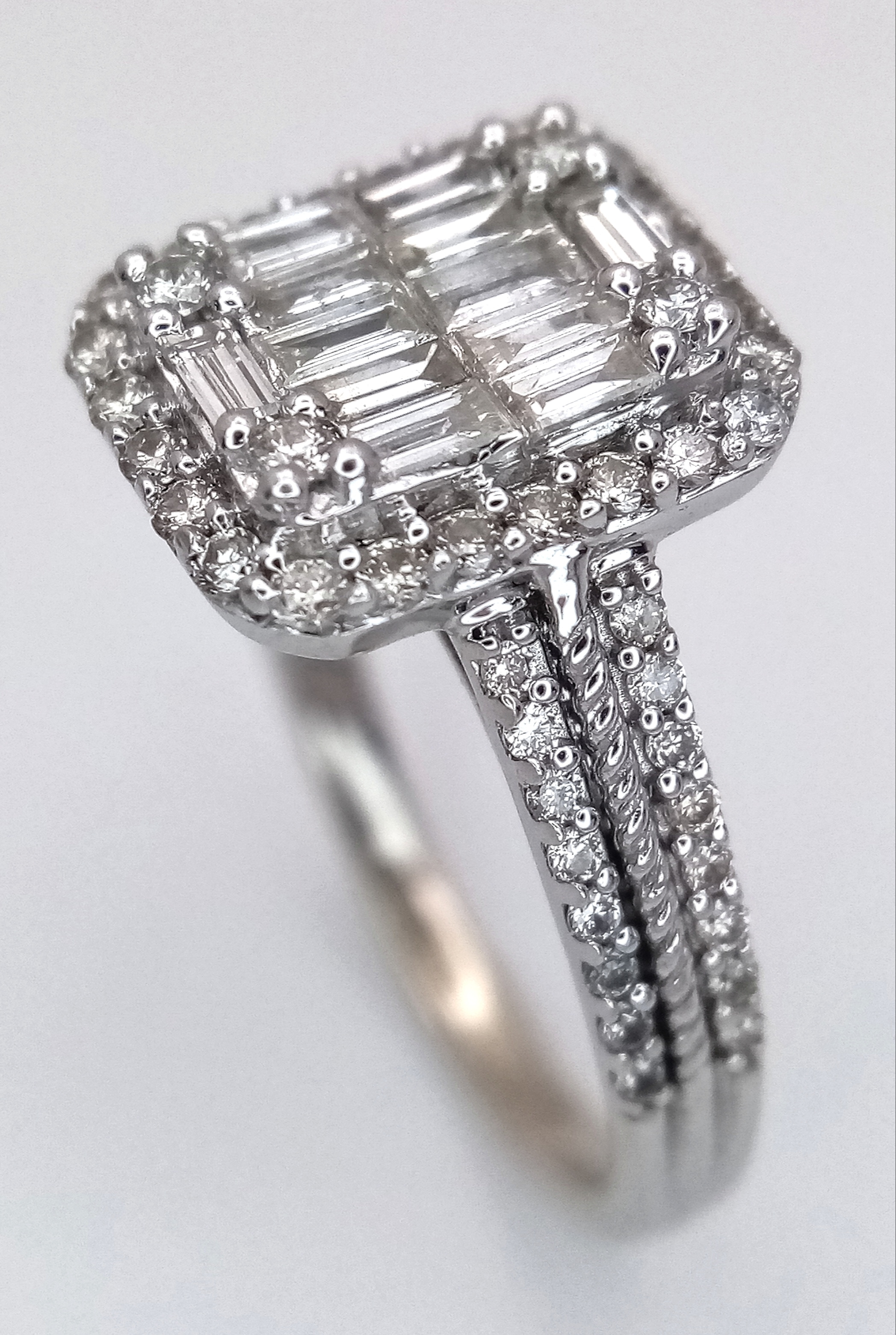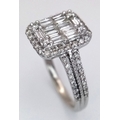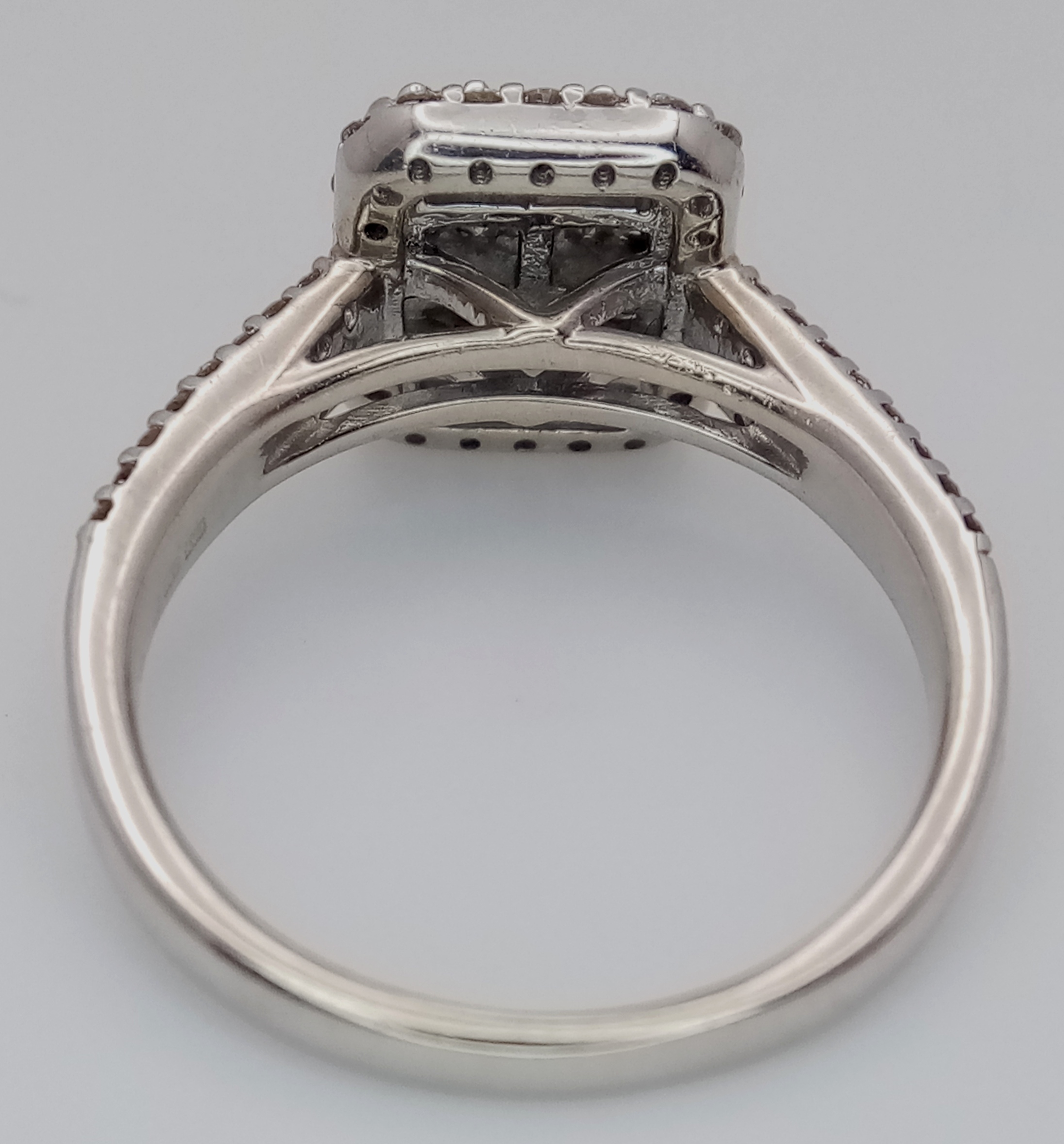 A 9K WHITE GOLD, FANCY DIAMOND SET, CLUSTER RING. 0.80 CTW. 4.4G, SIZE N. SPSA 1004