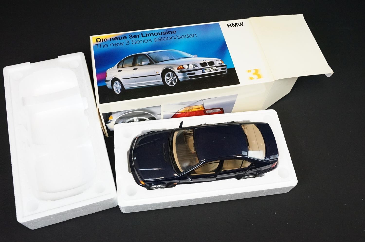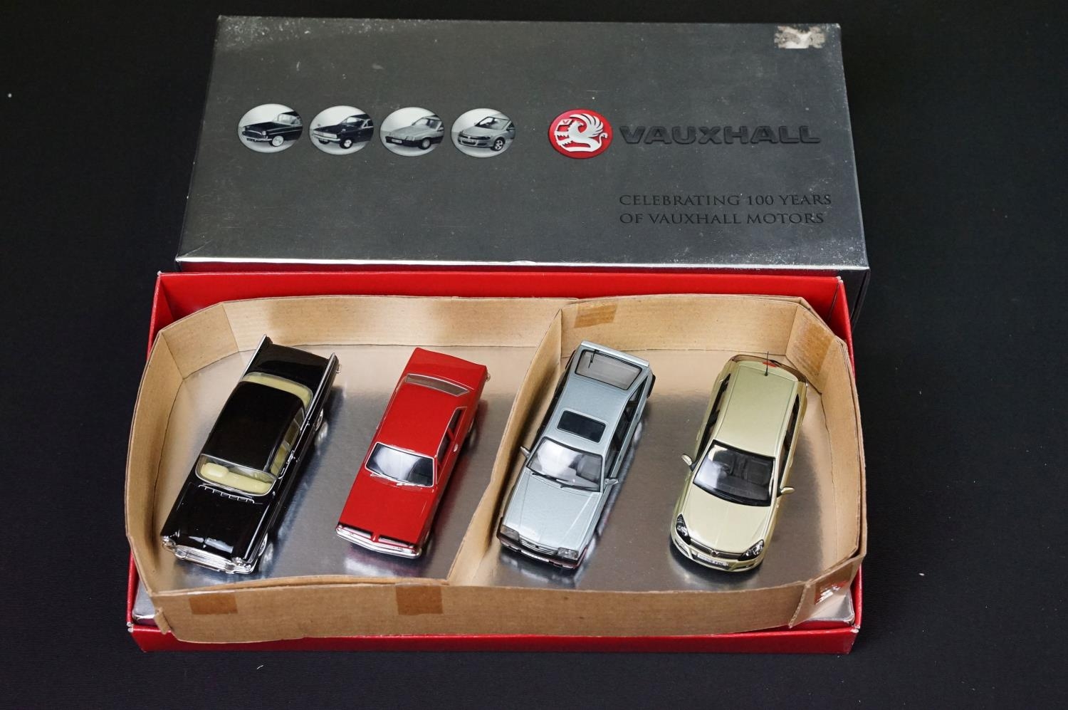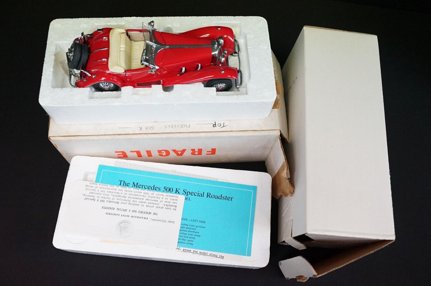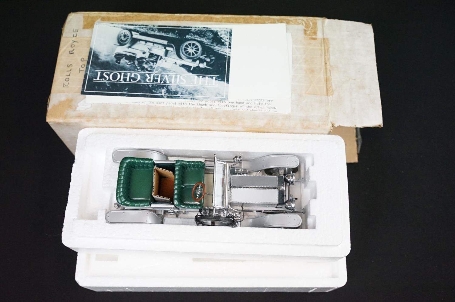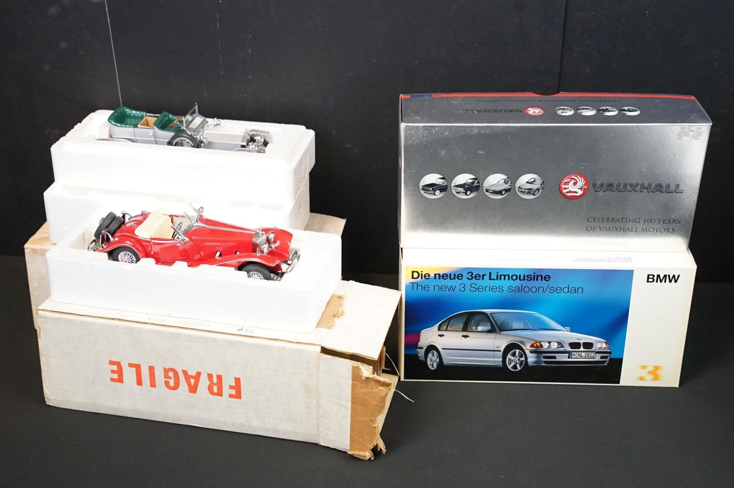 Four boxed 1/18 and 1/24 scale diecast models to include Corgi VX1004 Vauxhall Motors Centenary Set 1907-2007, UT Models The BMW 3 Series Saloon/Sedan and 2 x Franklin Mint models featuring 1907 Rolls Royce Silver Ghost / The Silver Ghost and The Mercedes 500K Special Roadster, both with COA's, all diecast ex, boxes vg