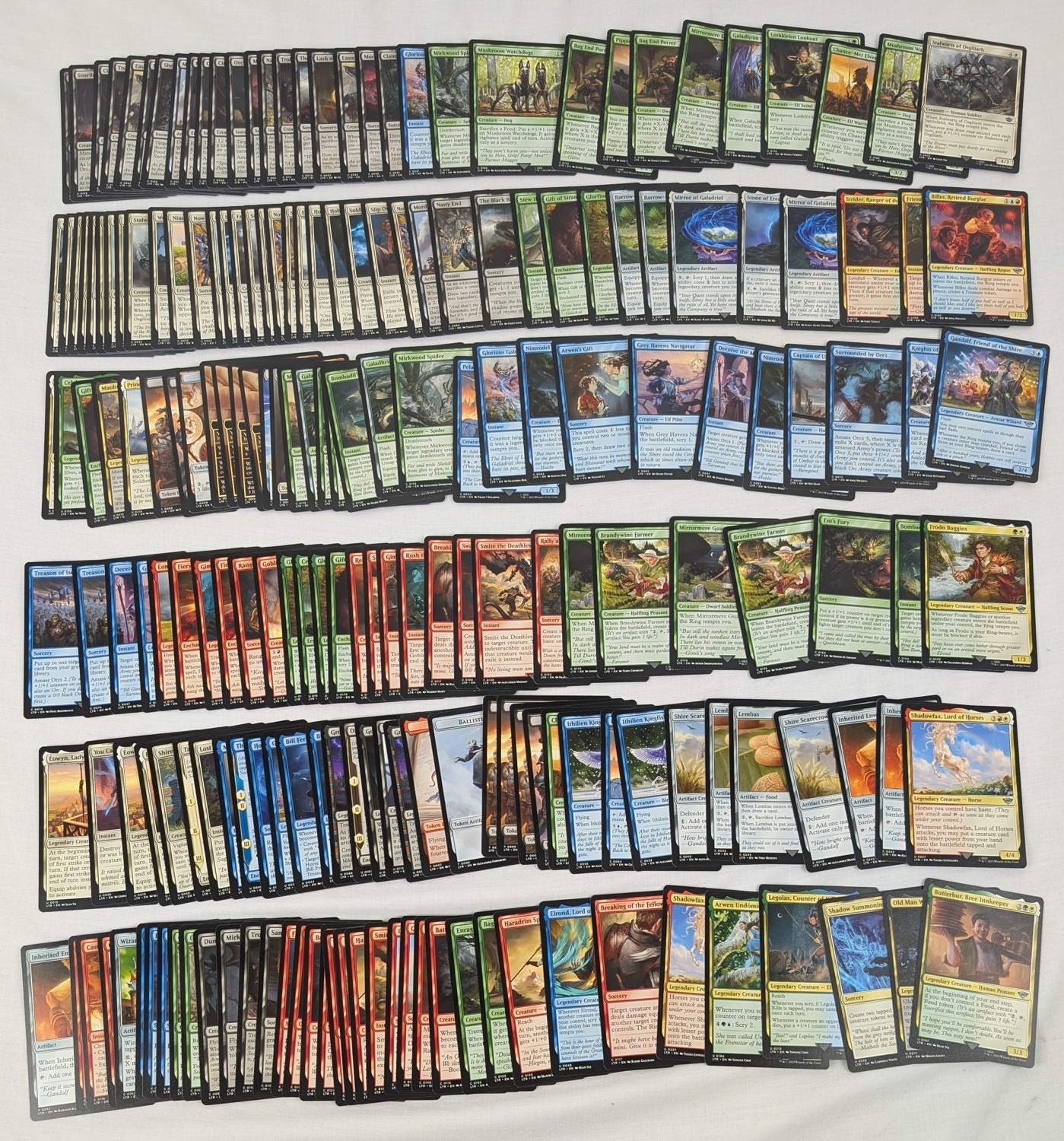 200 Lord of the Rings Magic the Gathering trading cards. To include Gandalf, Legolas, Bilbo cards and more. By Wizards of the Coast, 2023.