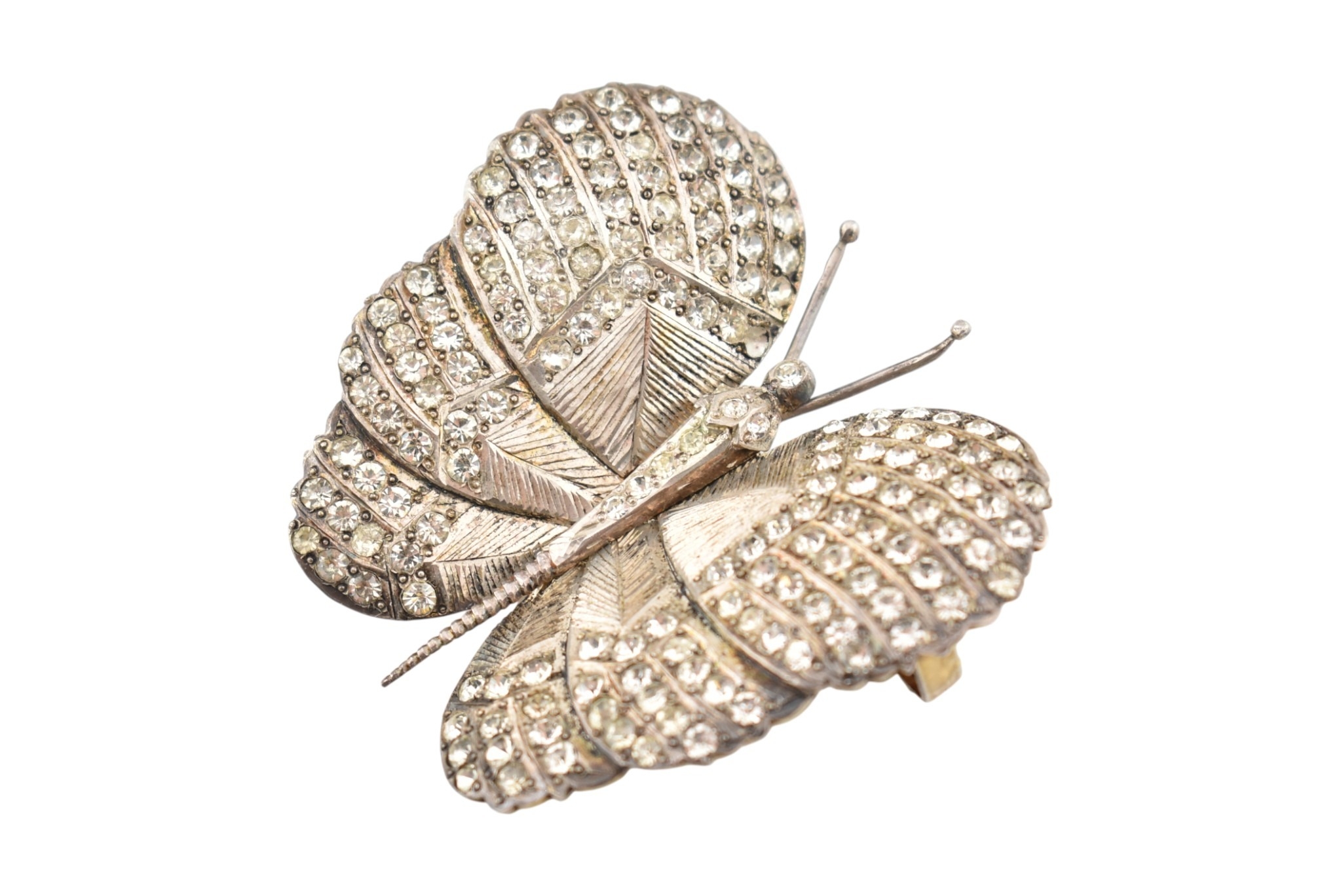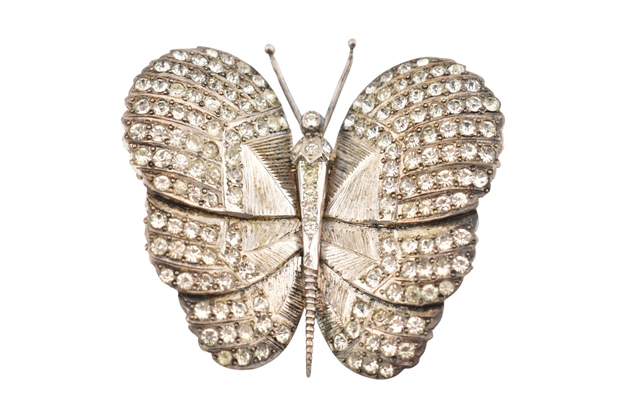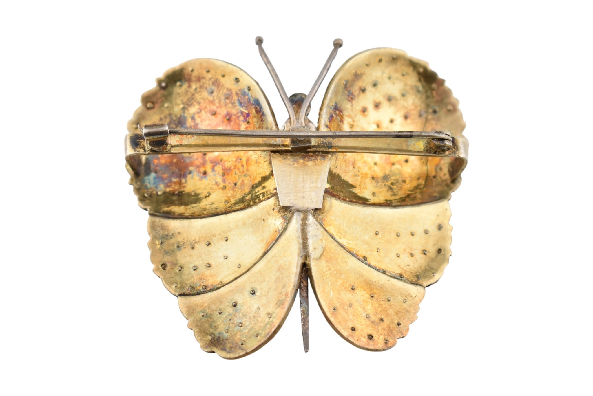 An Art Deco silver paste set butterfly brooch pin. Weight 28g. Measures 5cm.