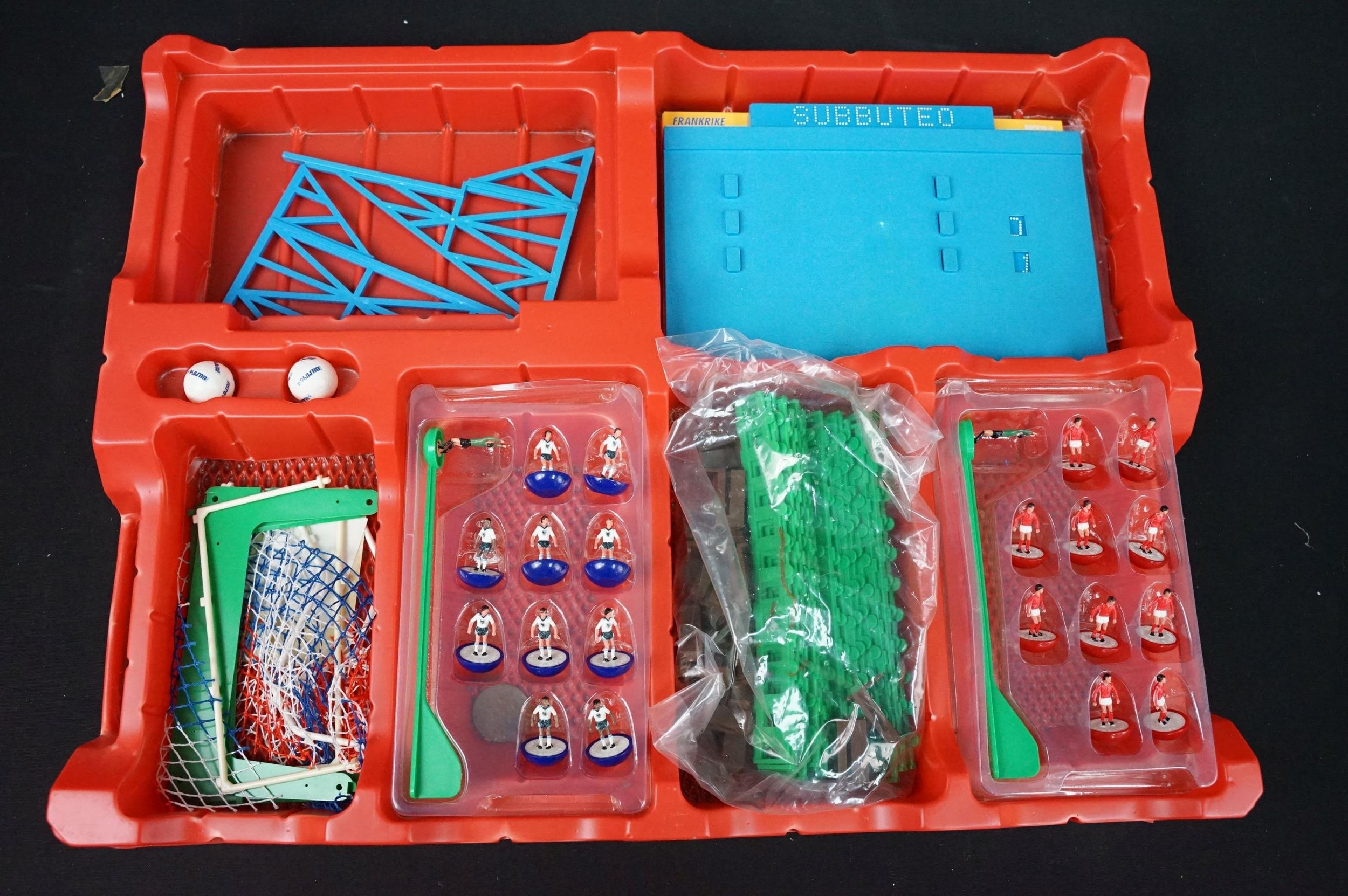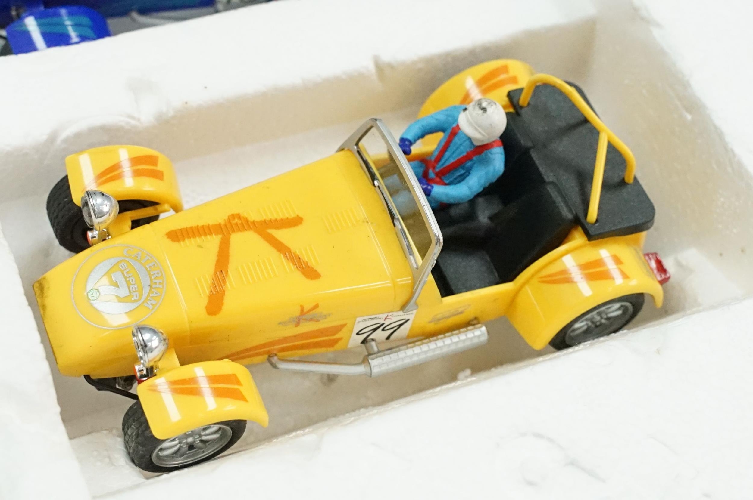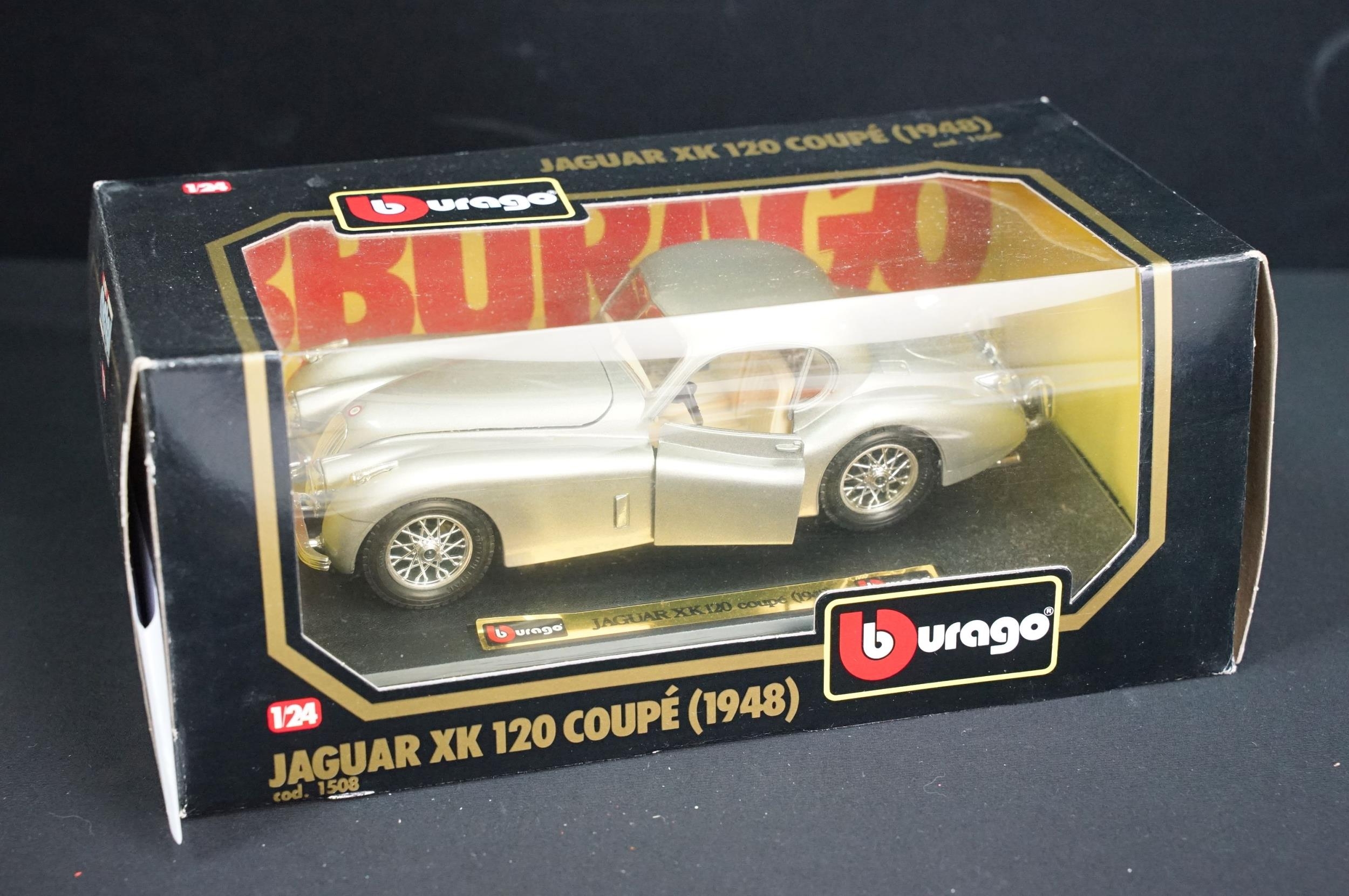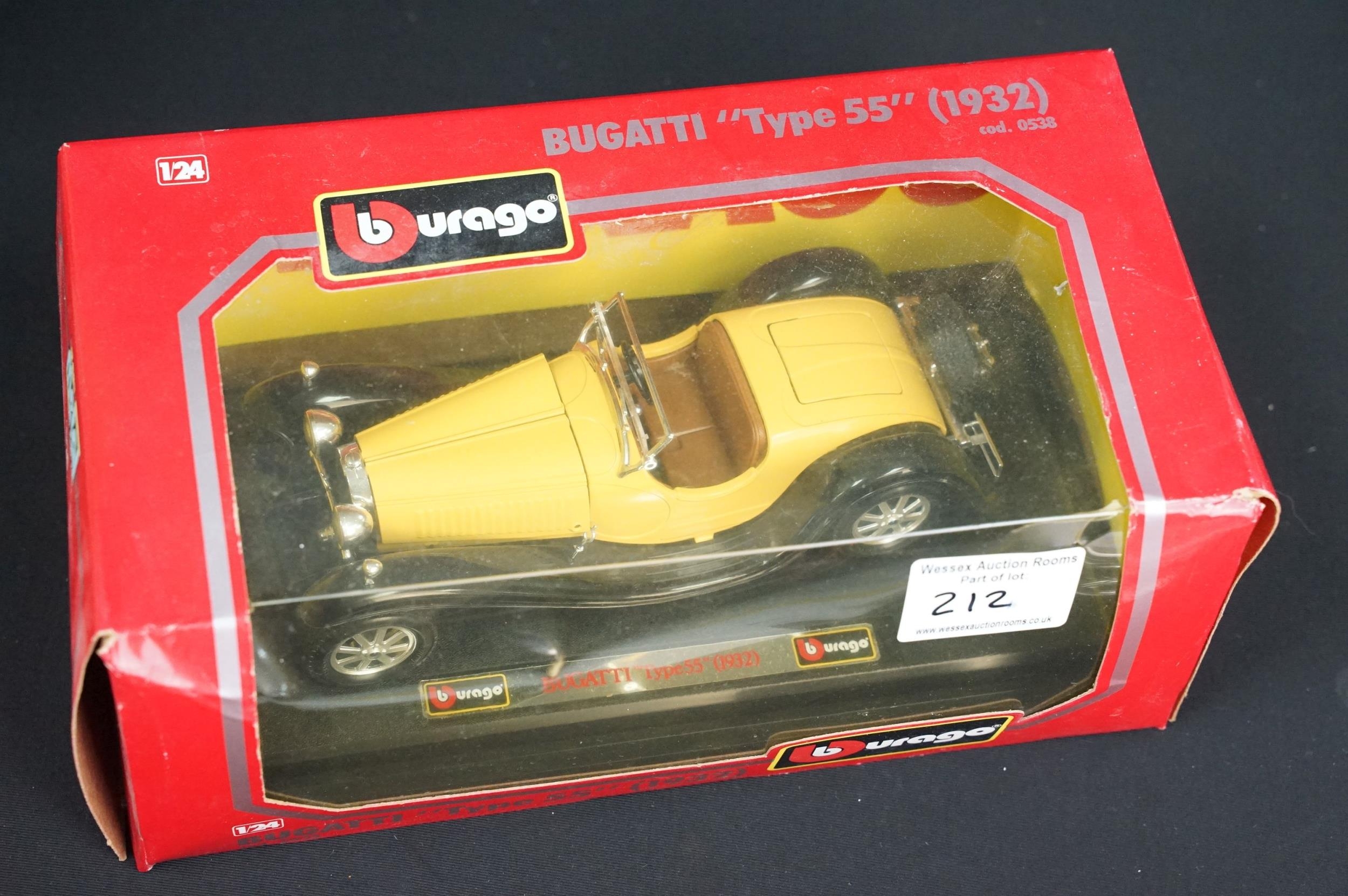Two boxed Scalextric sets including Monaco GP and Caterham Cup, boxed Subbuteo 60260 UEFA Euro 96 set and 2 x Burago 1/24 diecast models featuring Jaguar XK120 coupe and Bugatti Type 55, etc