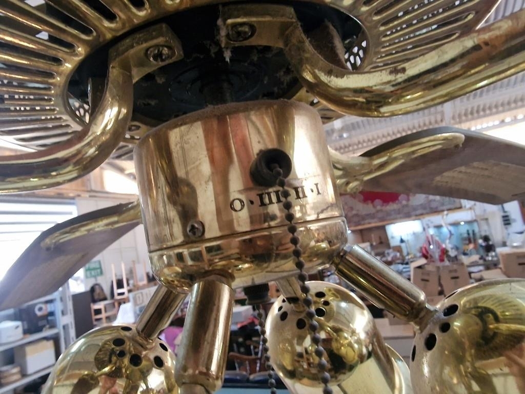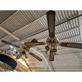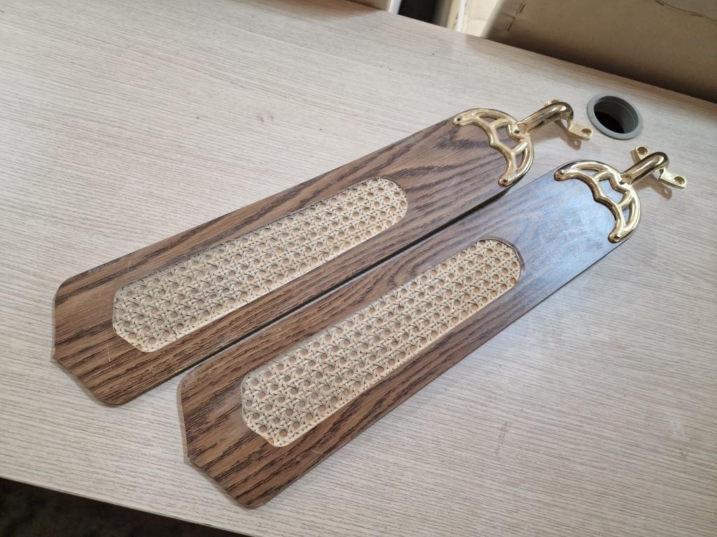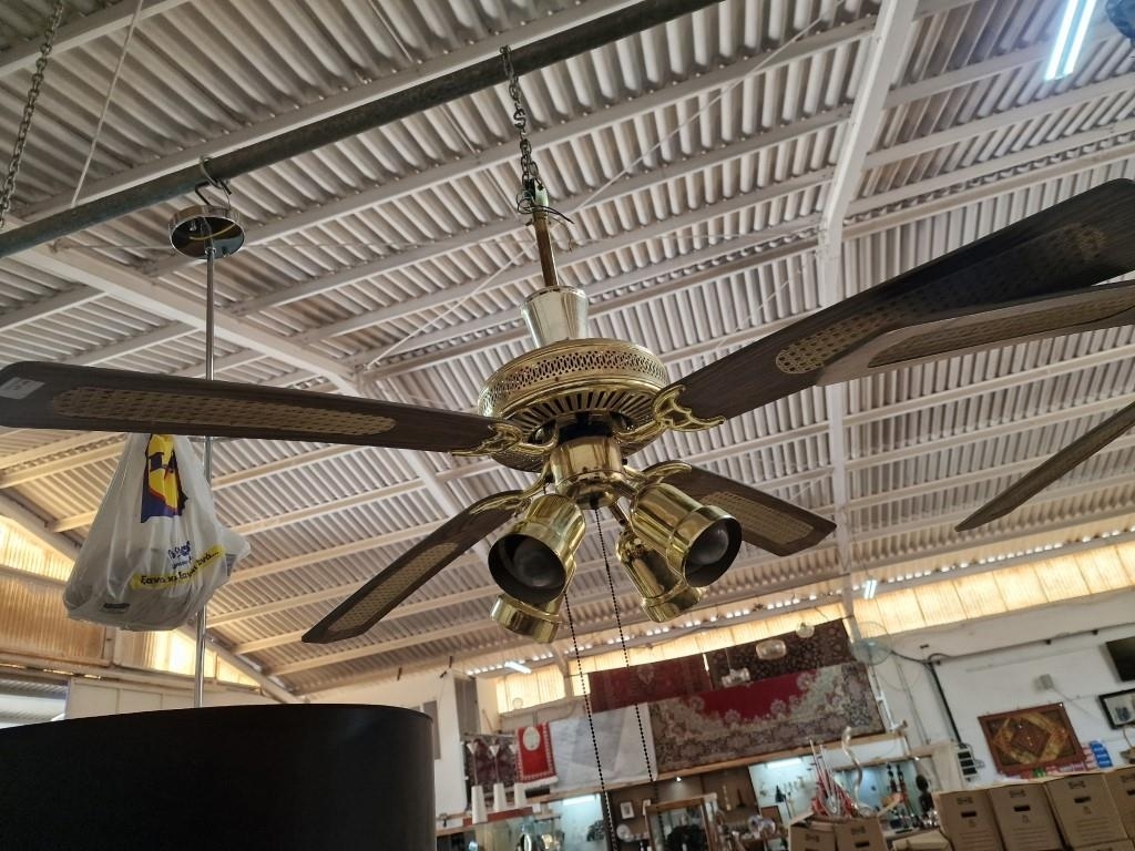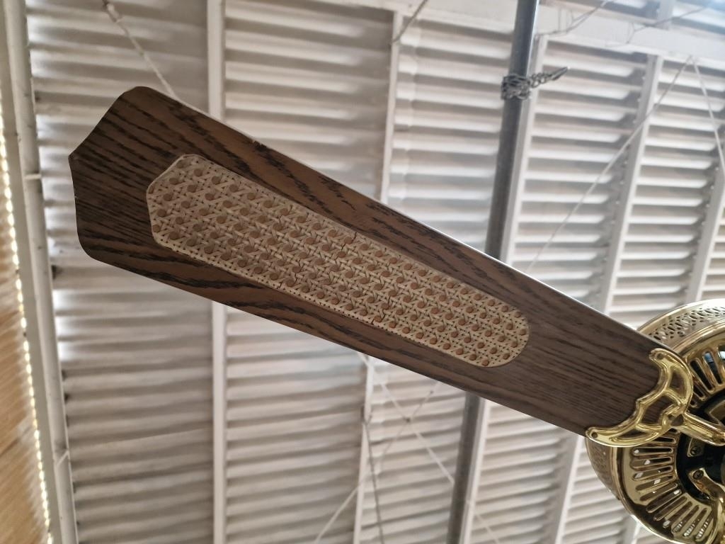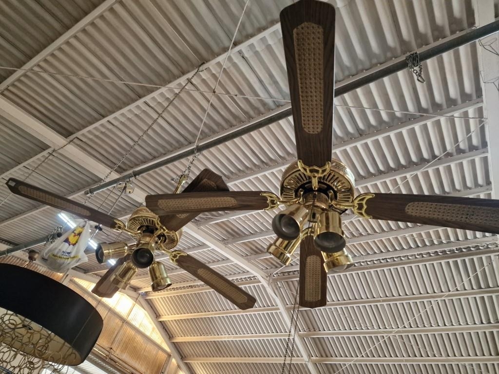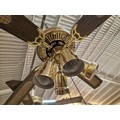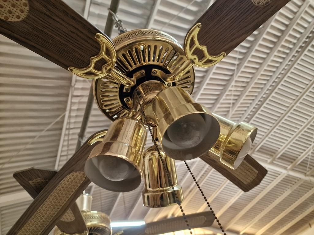 Pair of 4-Blade Ceiling Fans with 4-Spot Lights, Brass, Dark Wood and Cane Effect, (2), Together with 2 x Spare Blades