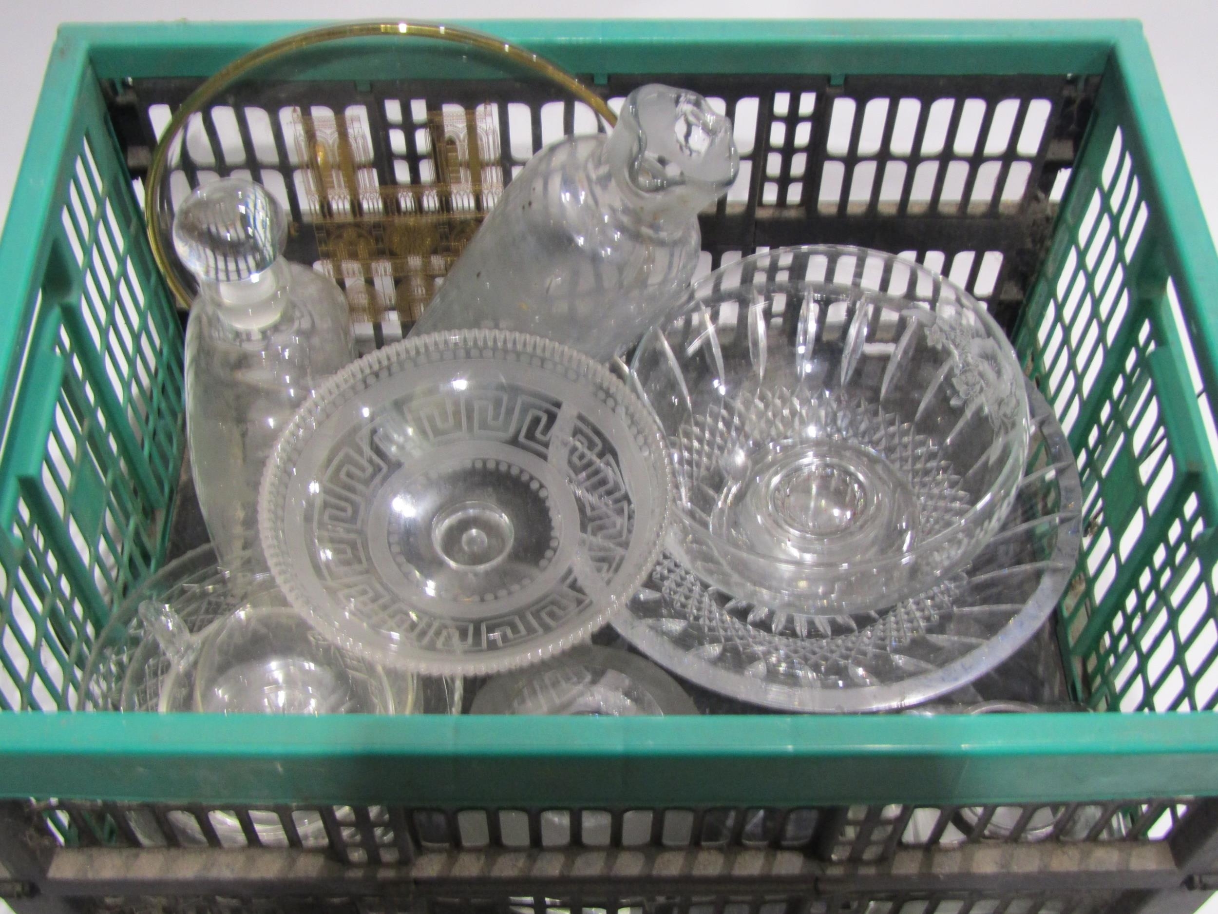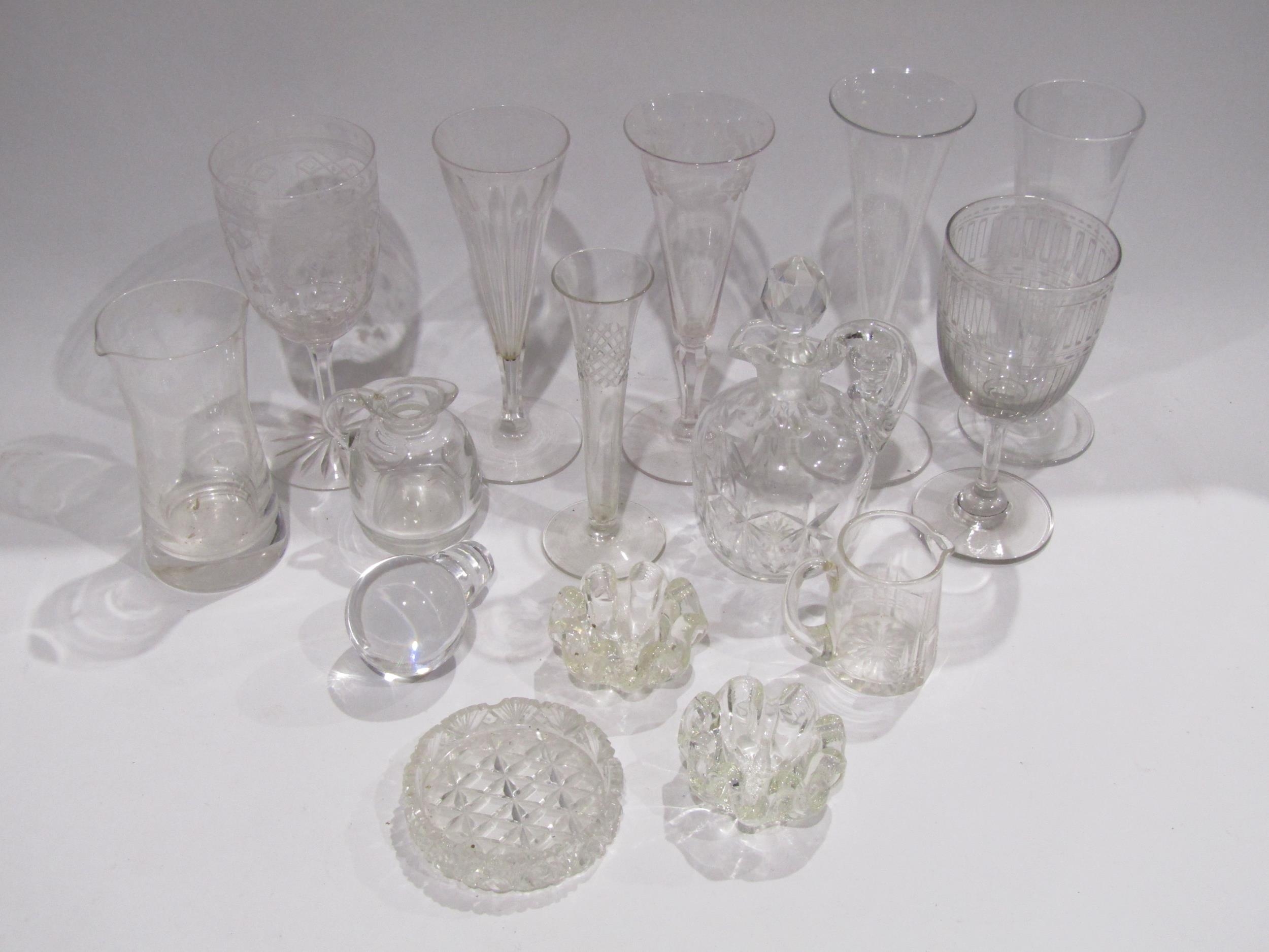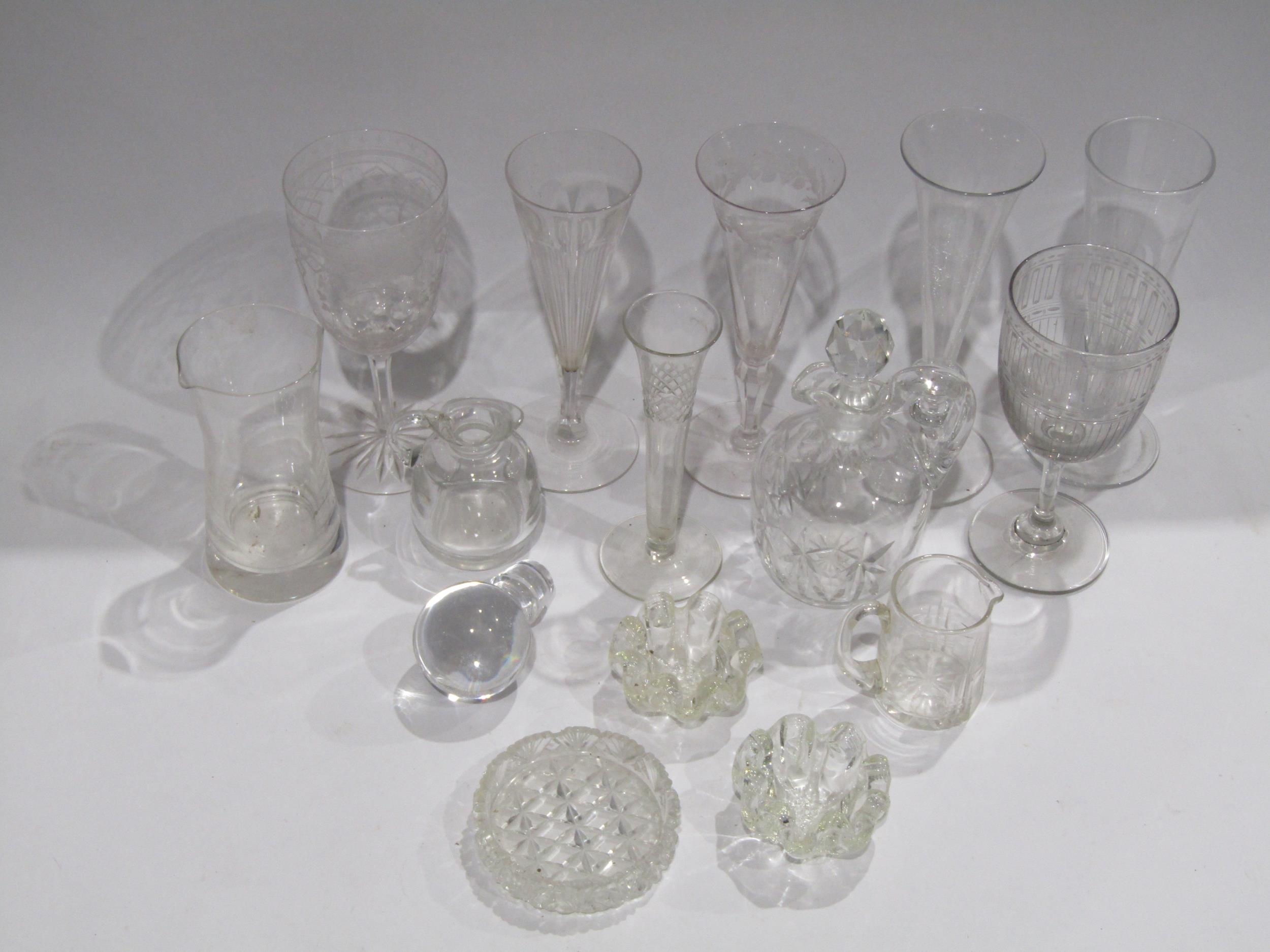 A collection of Georgian and later glassware including posy vases, decanter, bowls, inkwell etc.