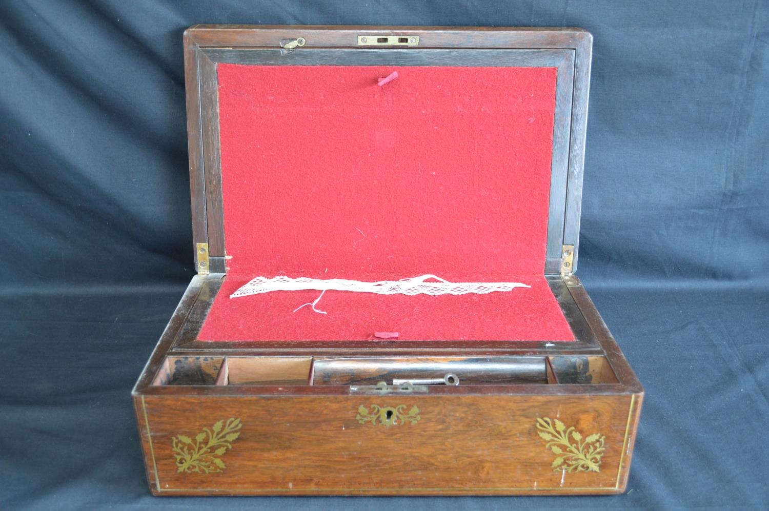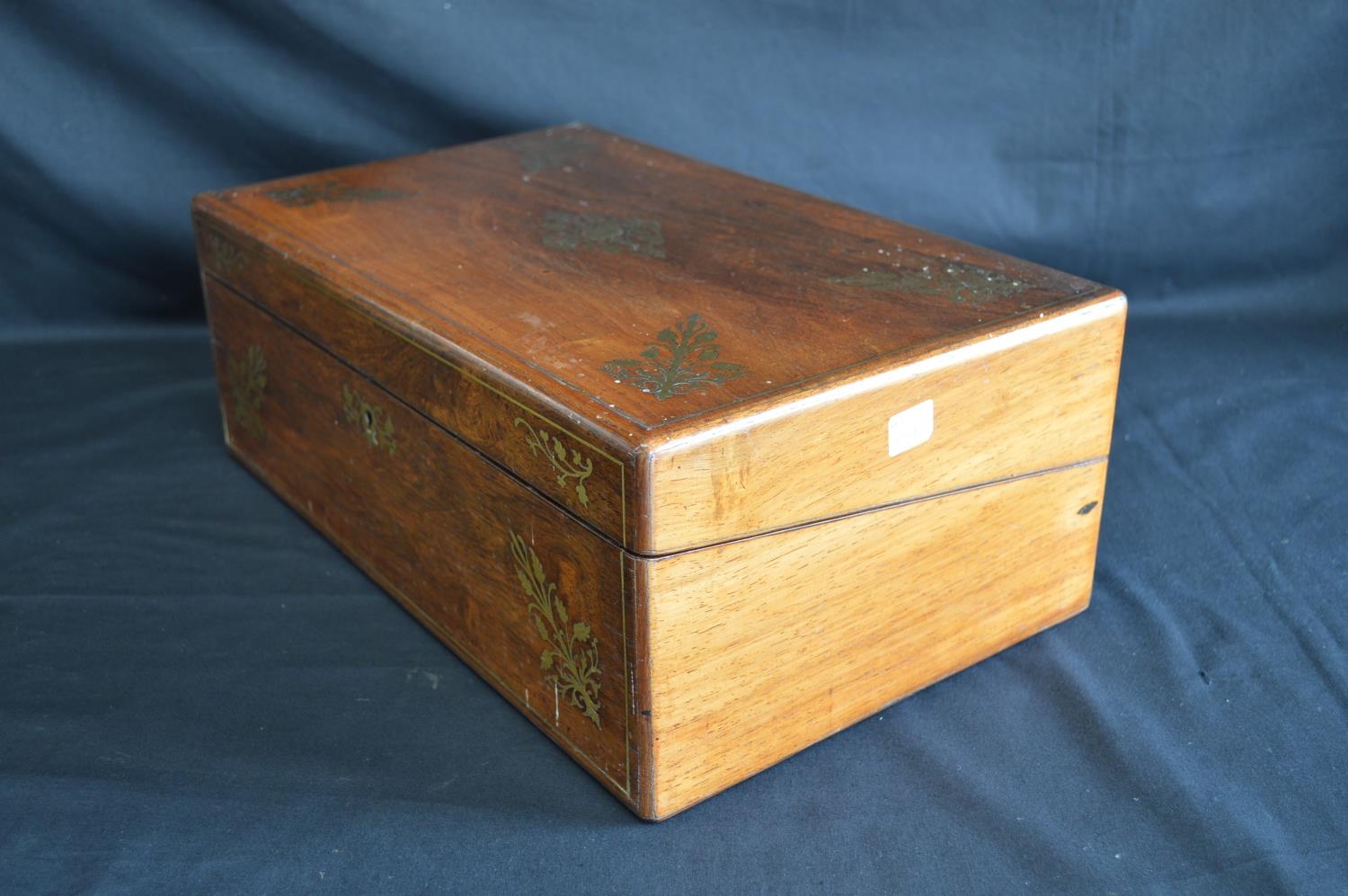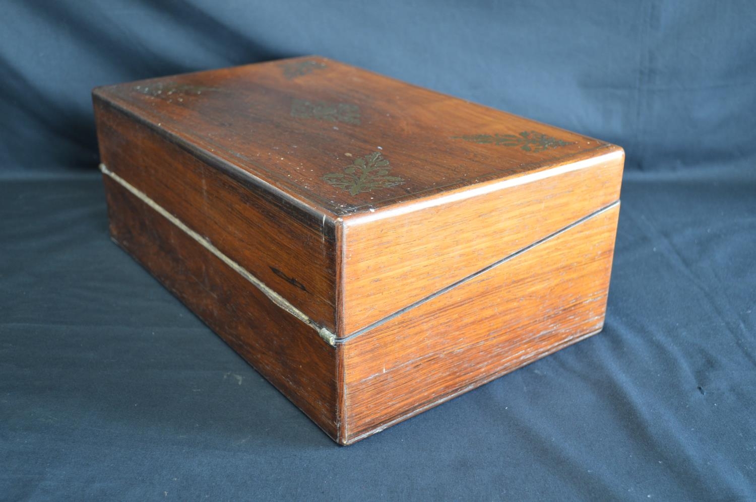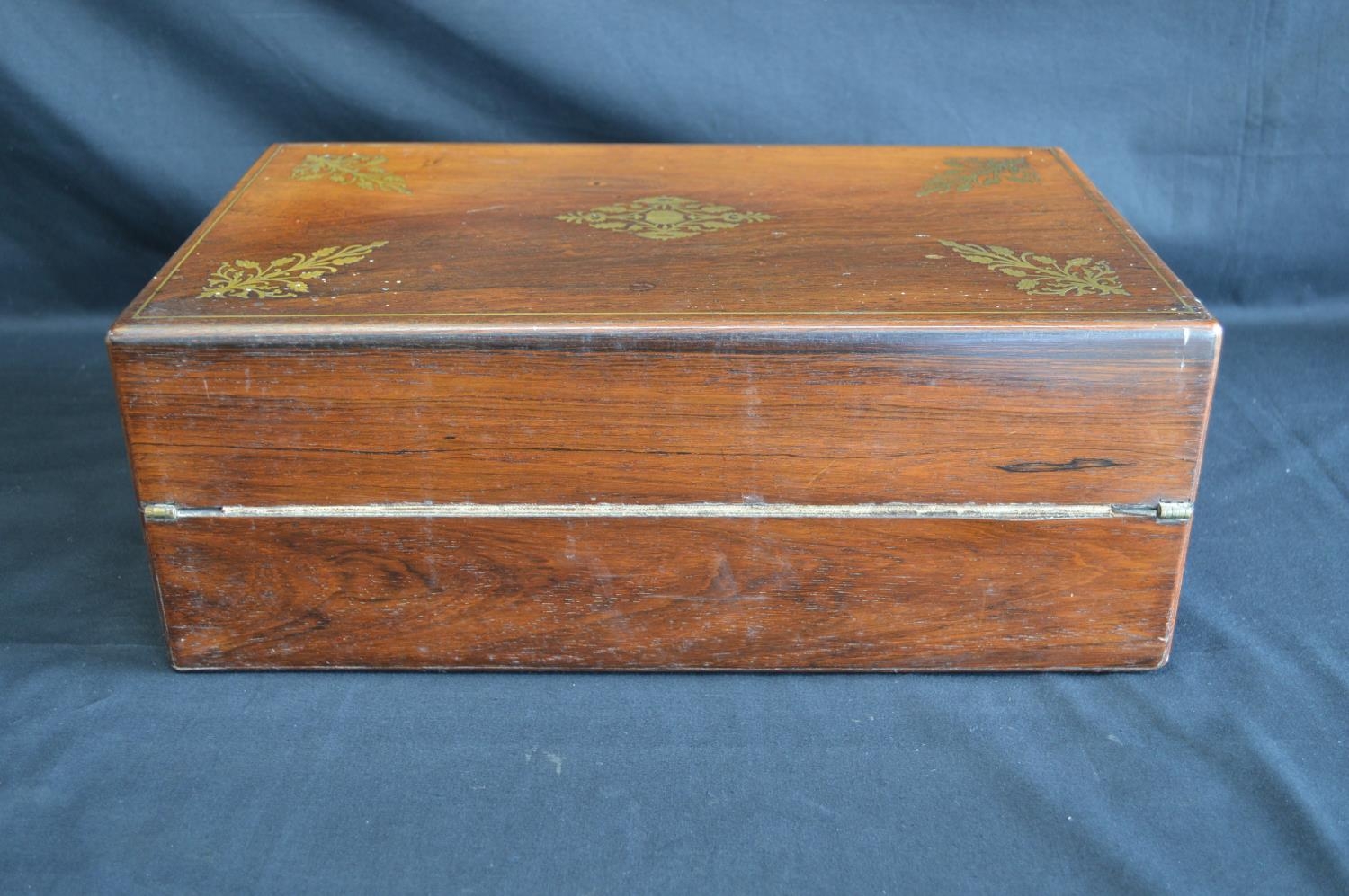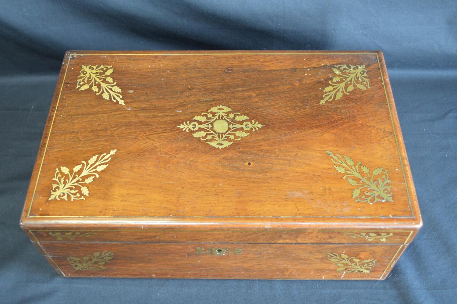 Brass inlaid rosewood writing slope opening to reveal red baize writing surface - 40cm wide
