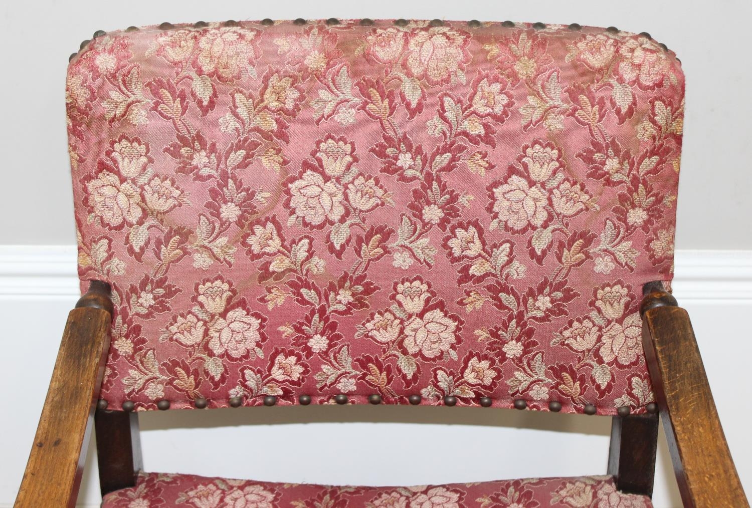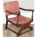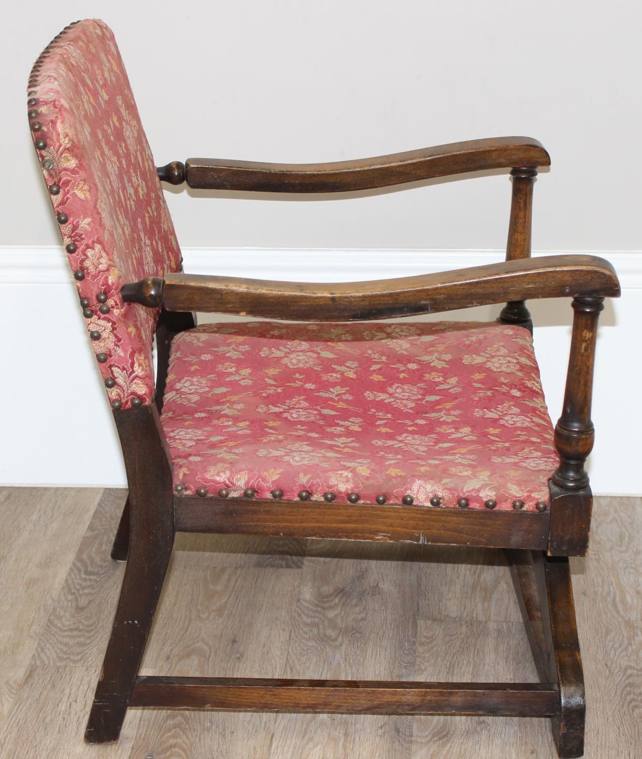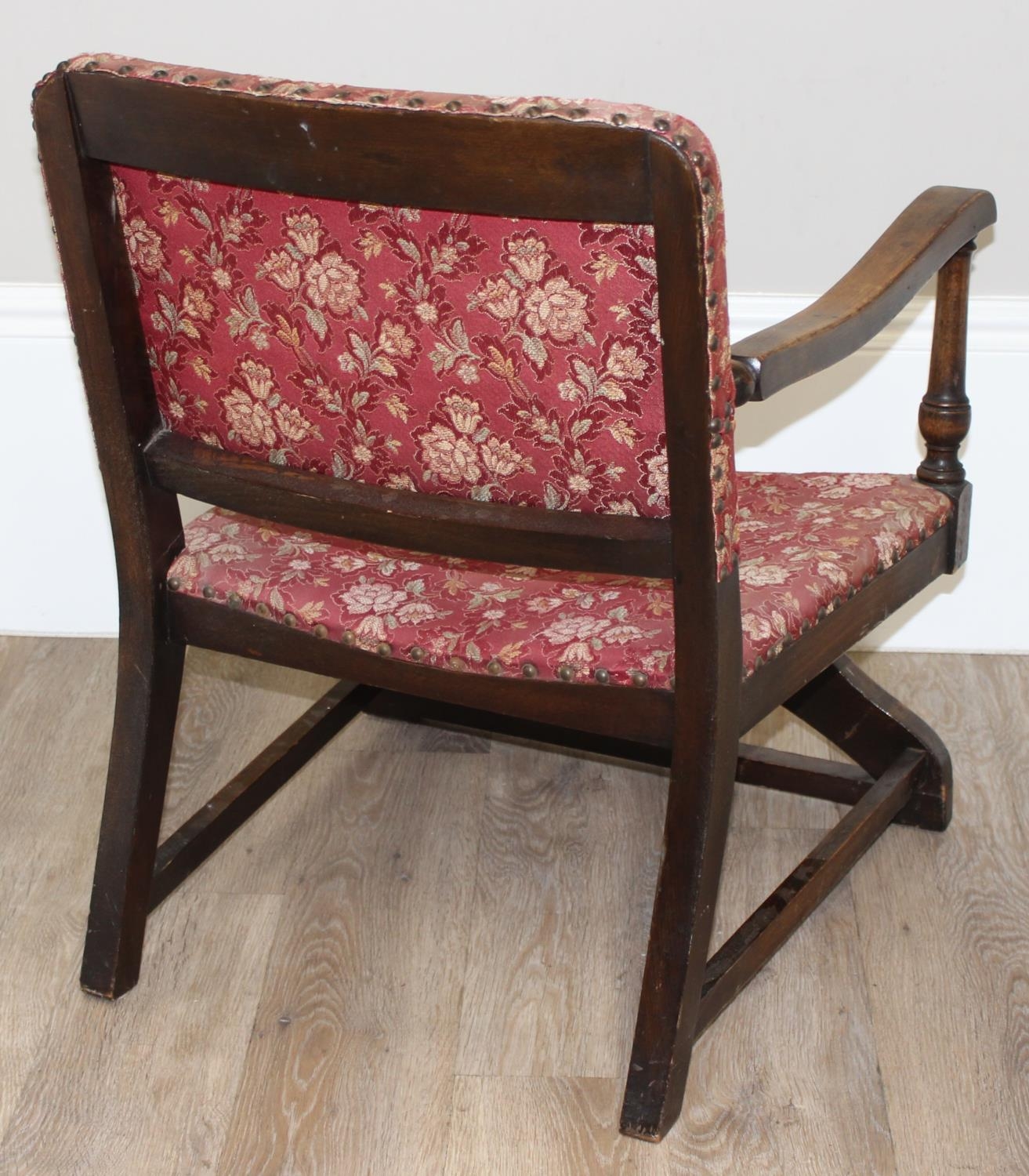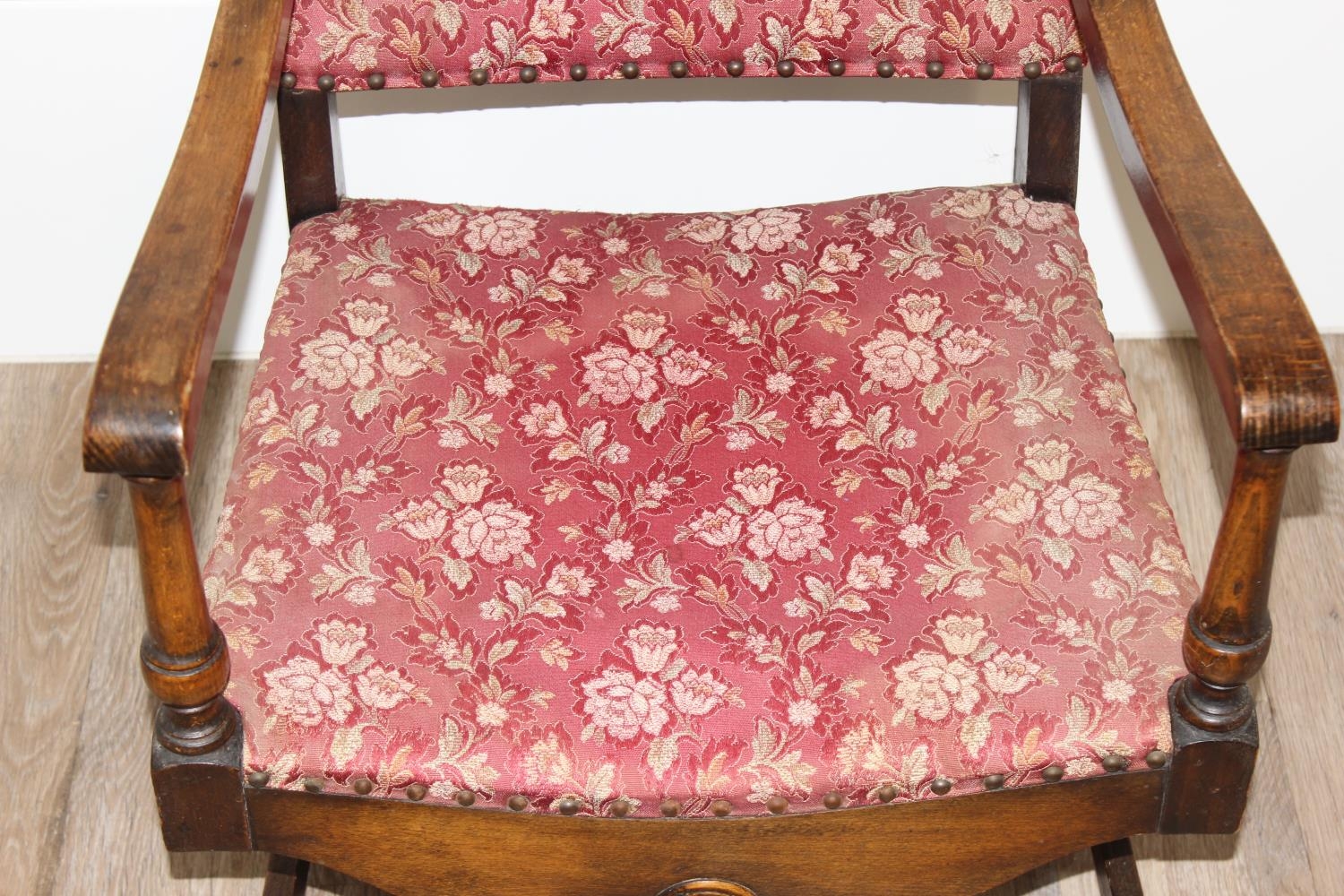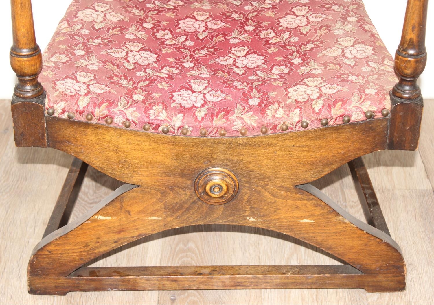An Art Deco period upholstered armchair with X base, approx 55cm wide x 55cm deep x 71cm tall