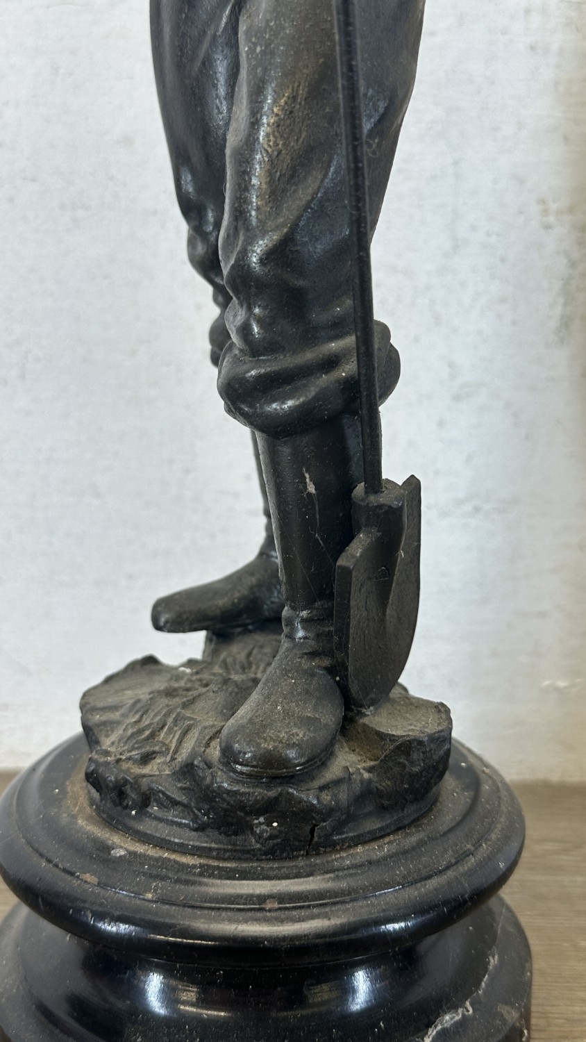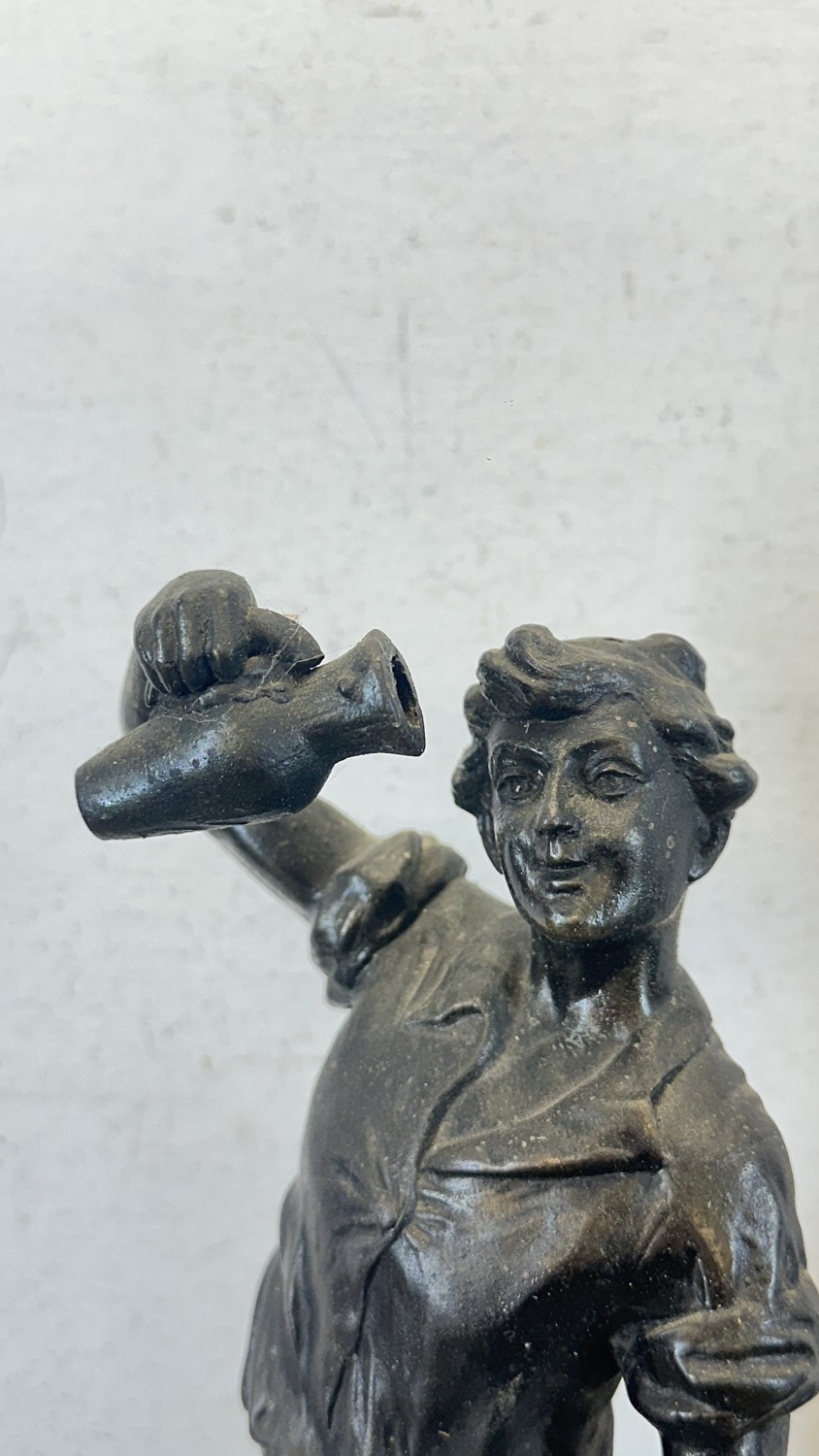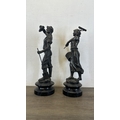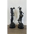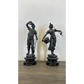 Two French bronzed spelter figurines on ebonised plinths, on...