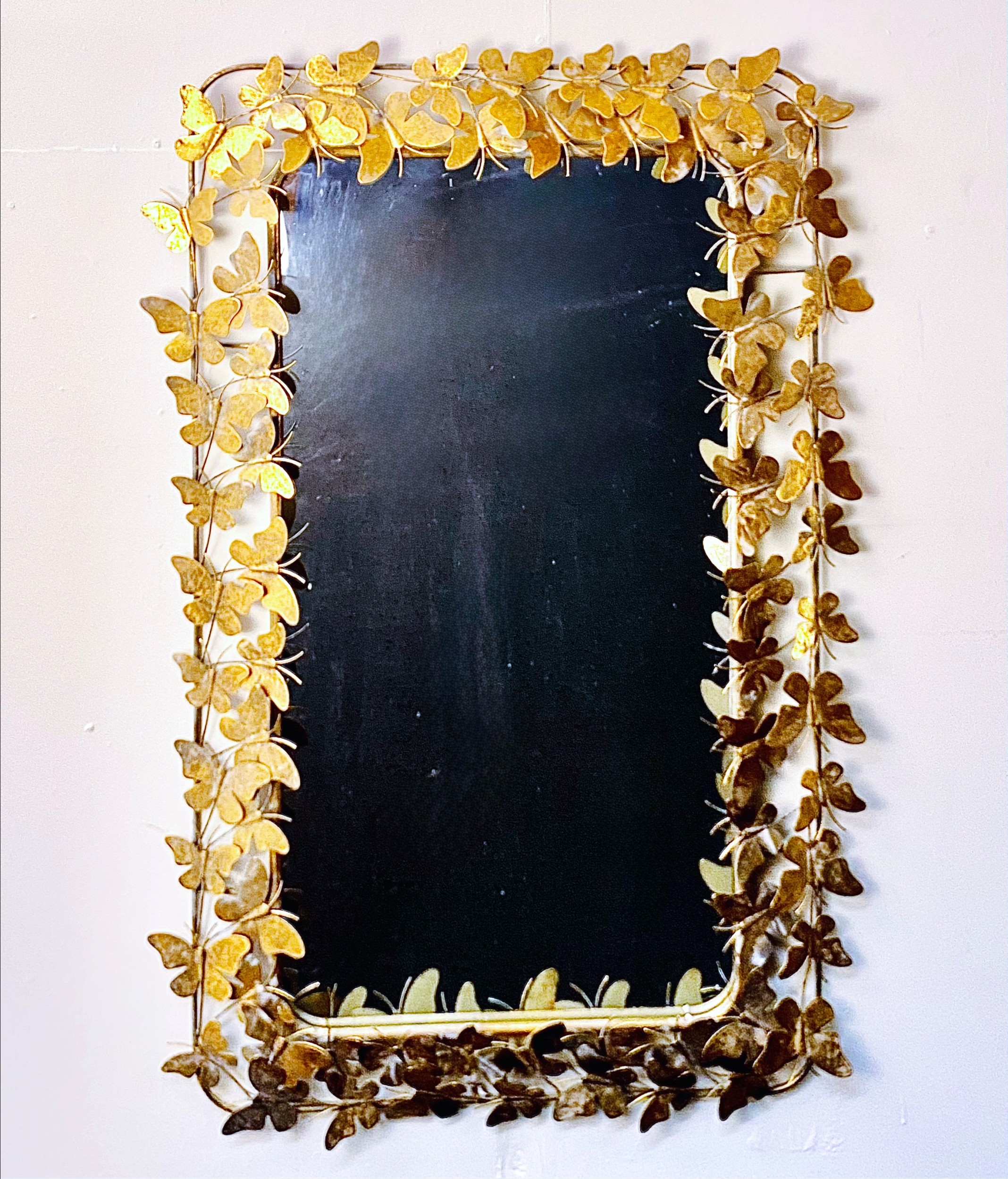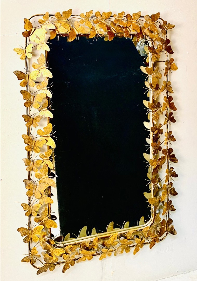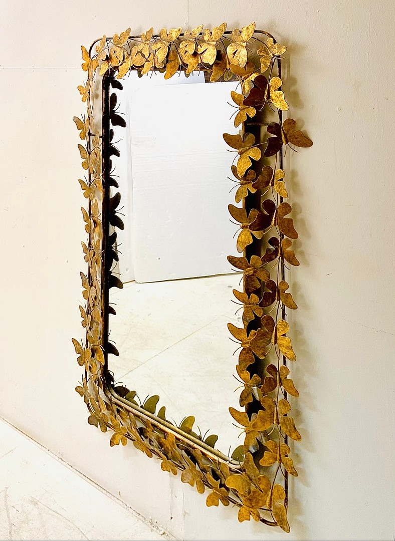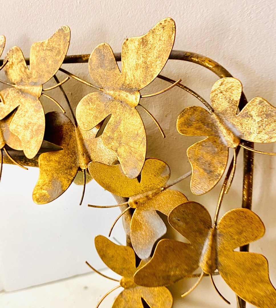 WALL MIRROR WITH GILT METAL BUTTERFLY FRAME. 11cm H x 80cm W.