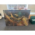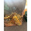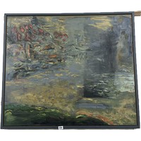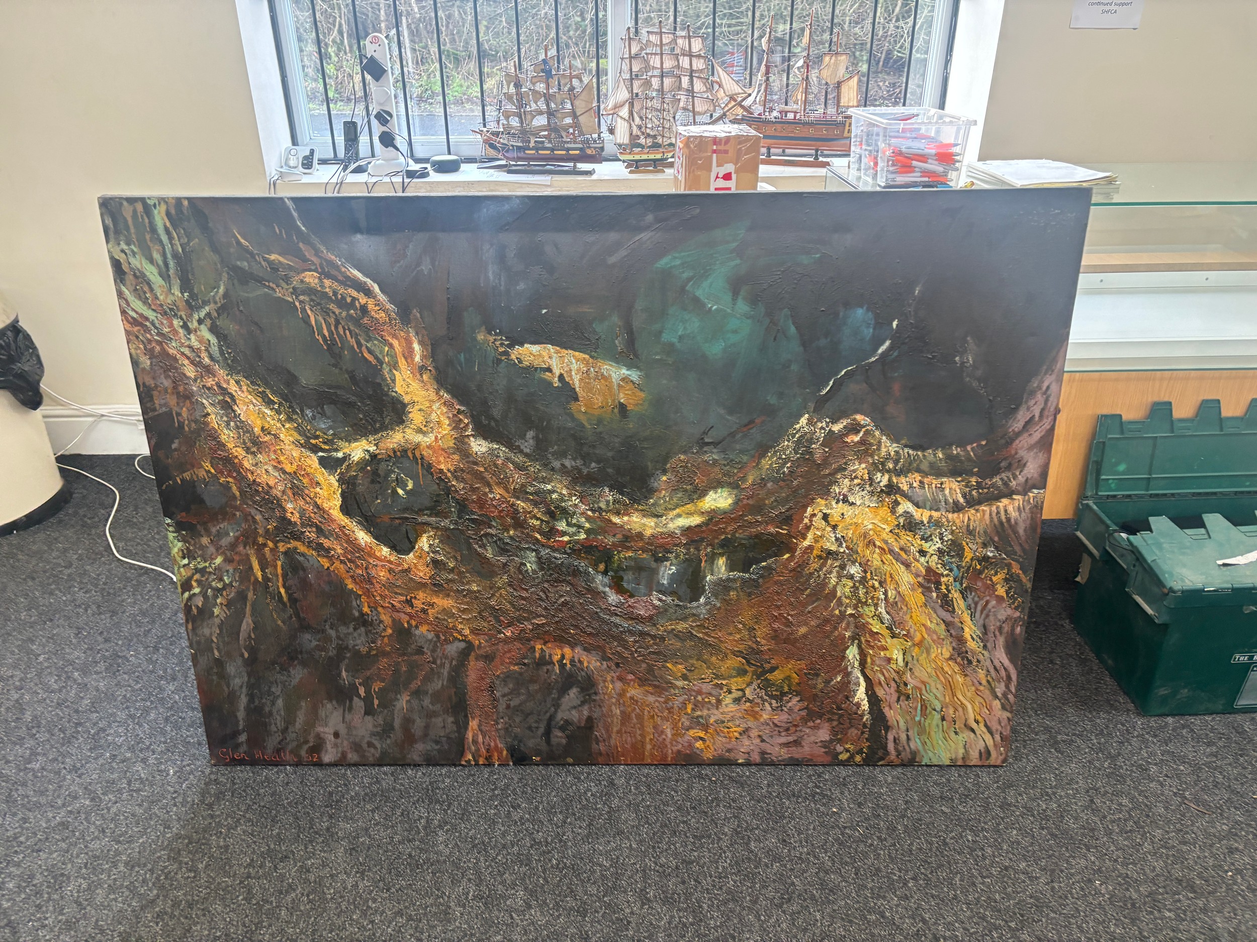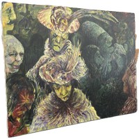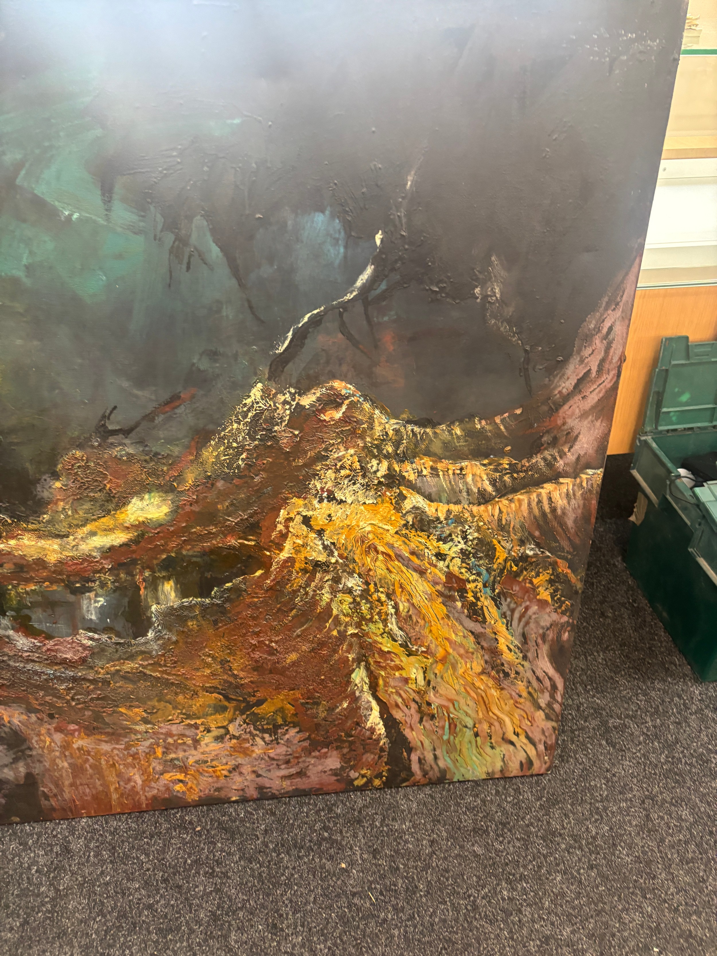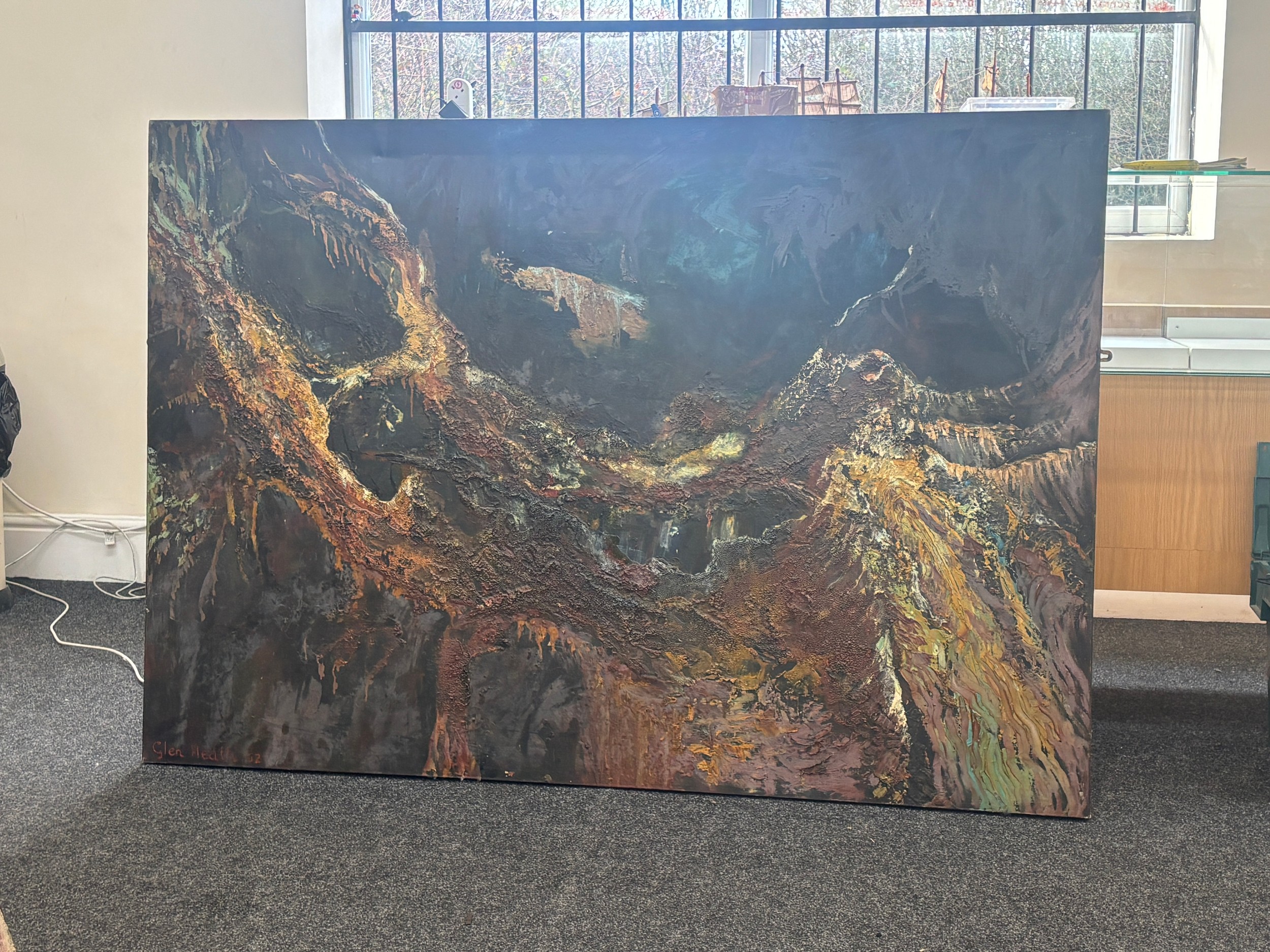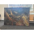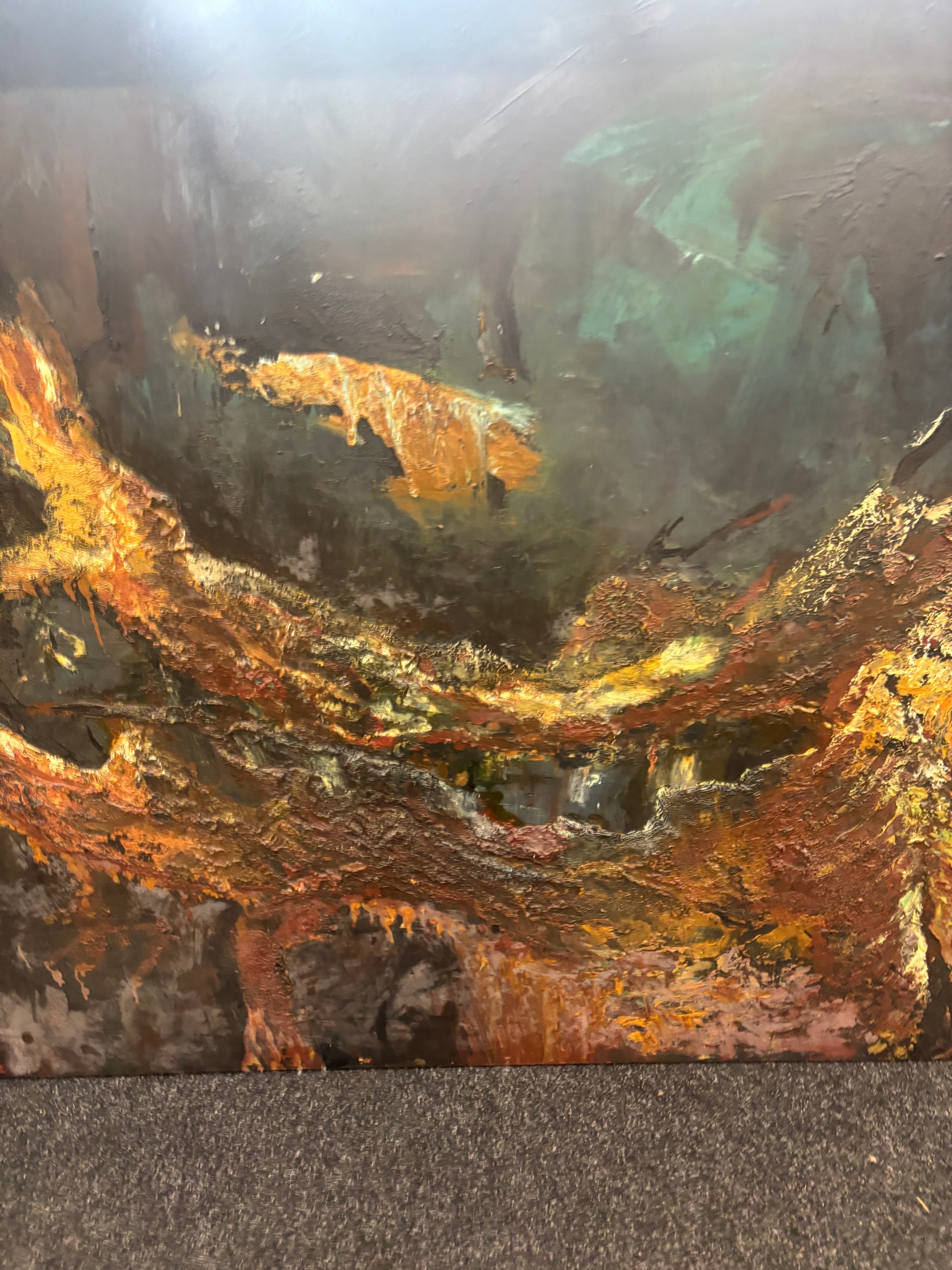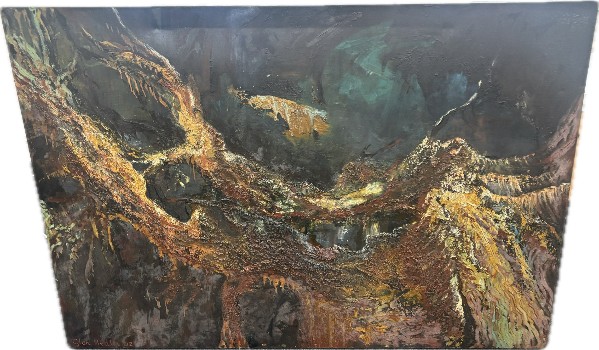 Large Expressional oil on canvas signed Cien Hearf measures approximately 46 inches tall 65 inches wide