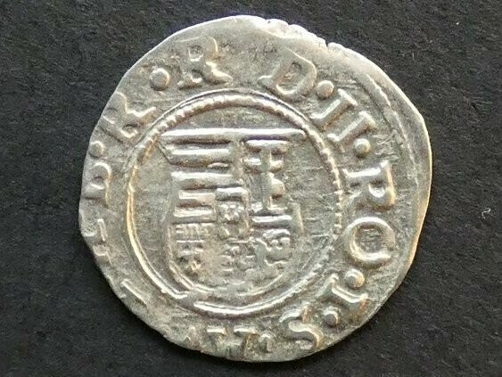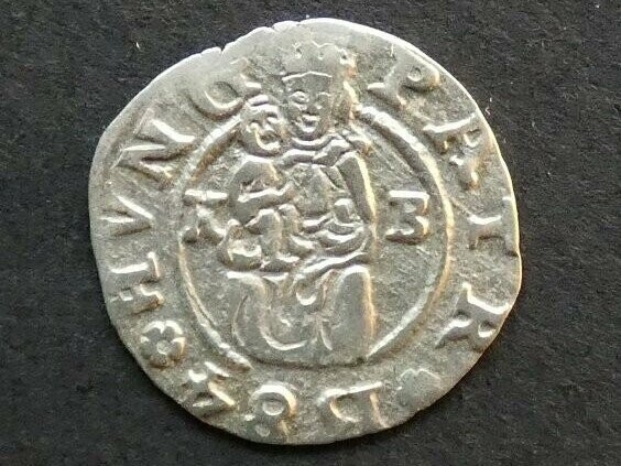 COIN. Hungary (Kingdom), Rudolf (1576-1608), silver Denar, 1584 K-B, Kremnica mint, 14mm, 0.6g, obverse; RVD II RO I S AV G H B R, shield of arms, reverse; PATR HVNG, Madonna & Child, Huszár-1059, VF, reference; Lajos Huszár, "Münzcatalog Ungarn von 1000 bis Heute", Munich, 1979.