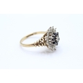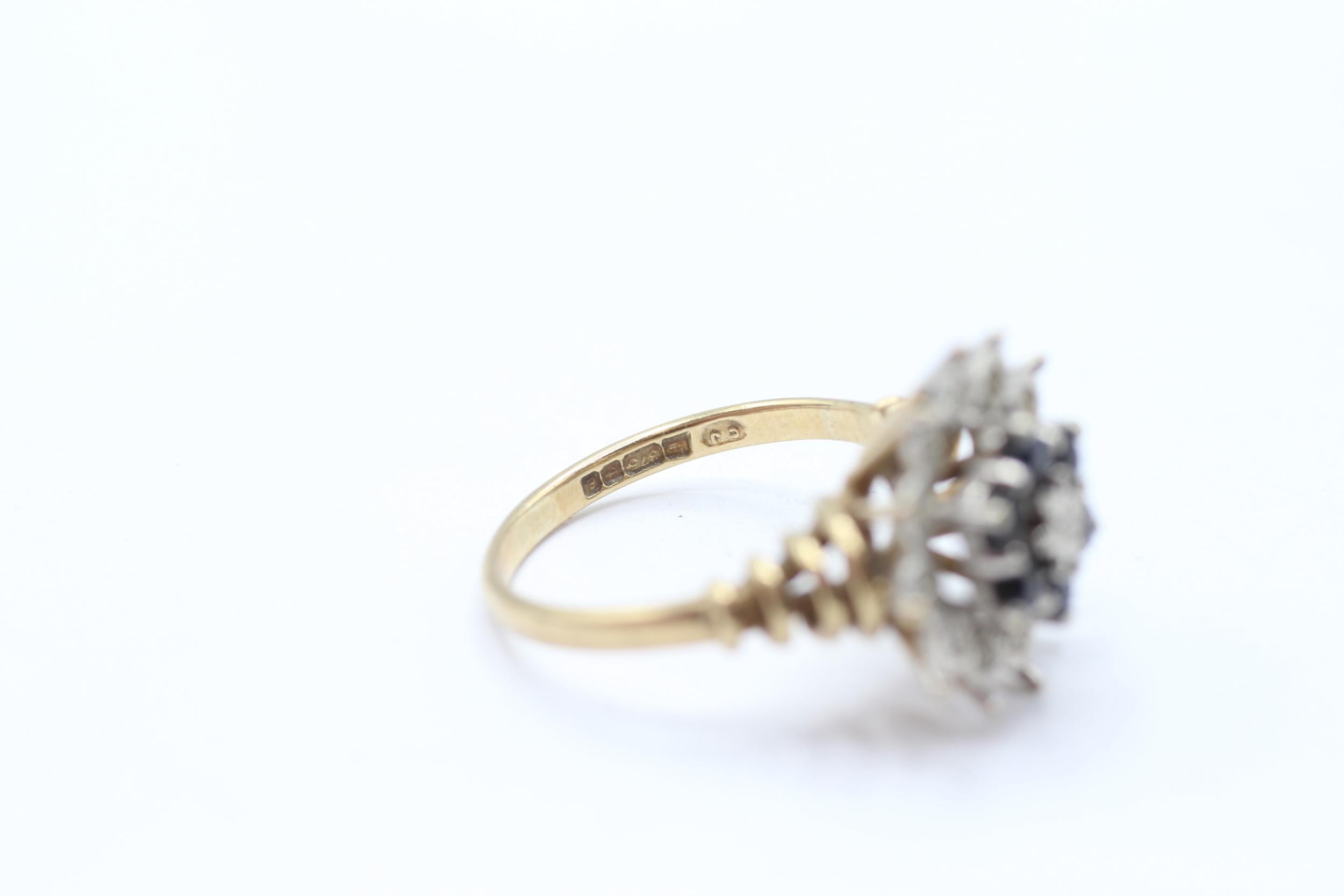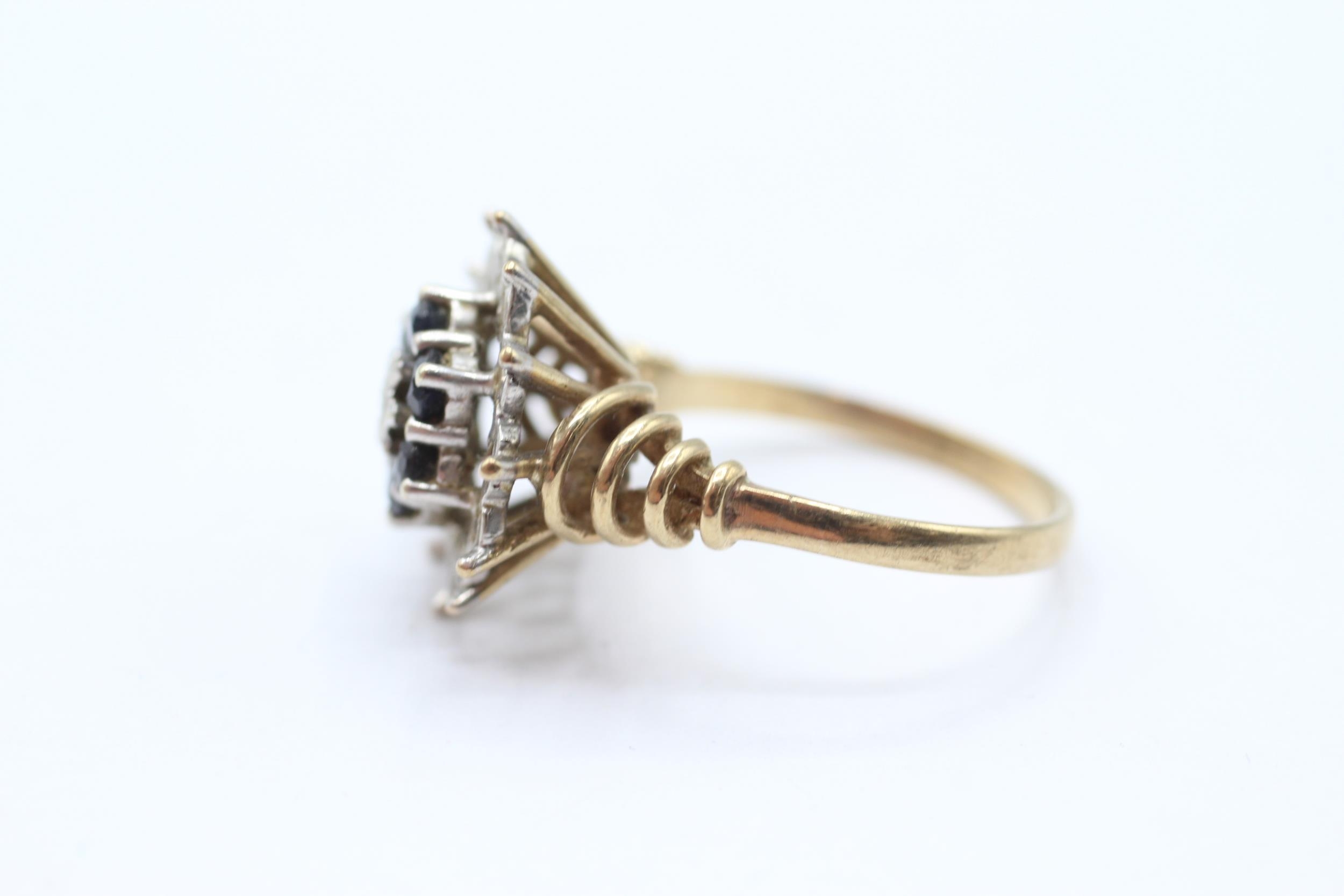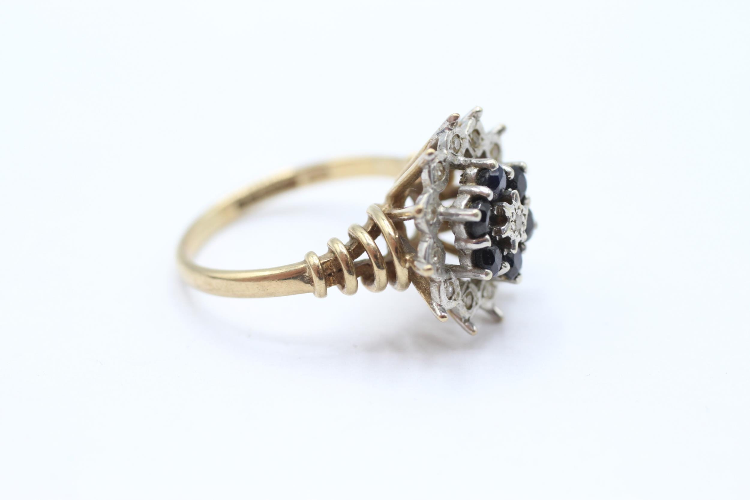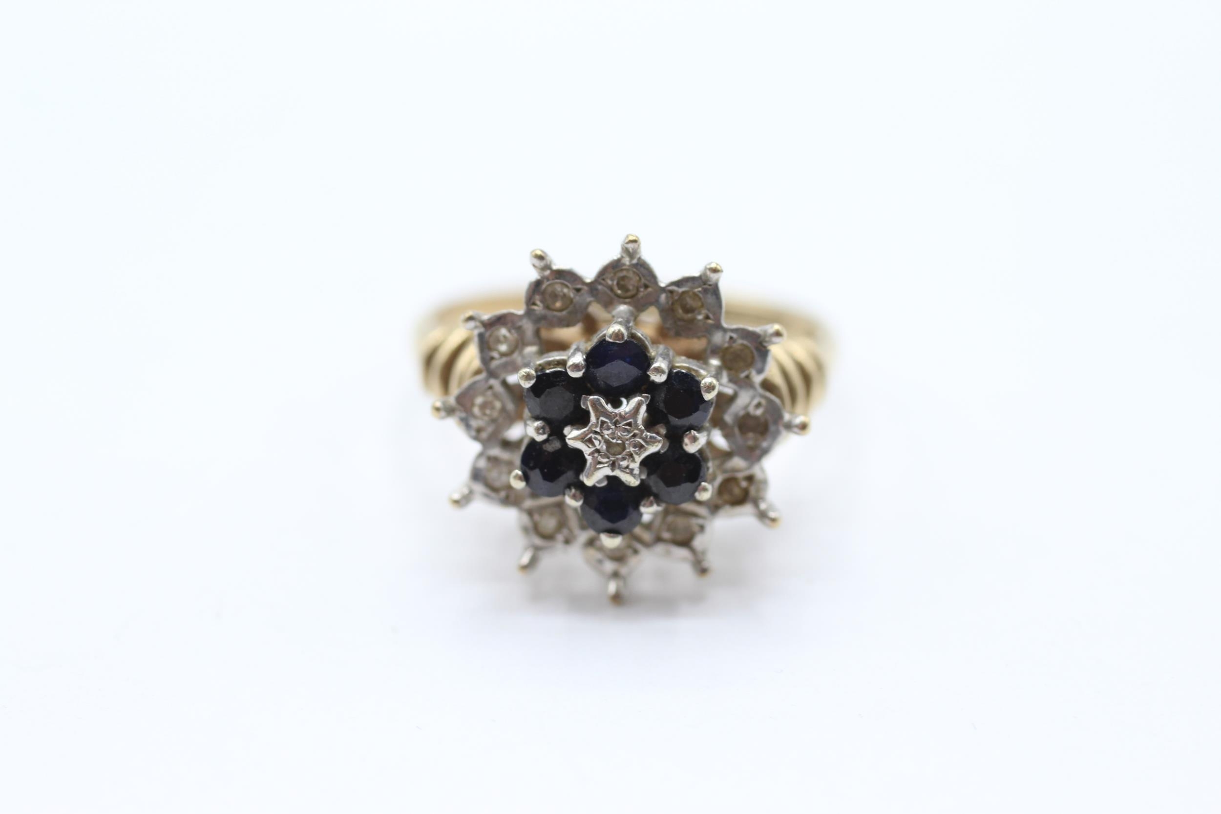 9ct gold vintage sapphire & diamond cluster ring Size M 1/2 - 4 g