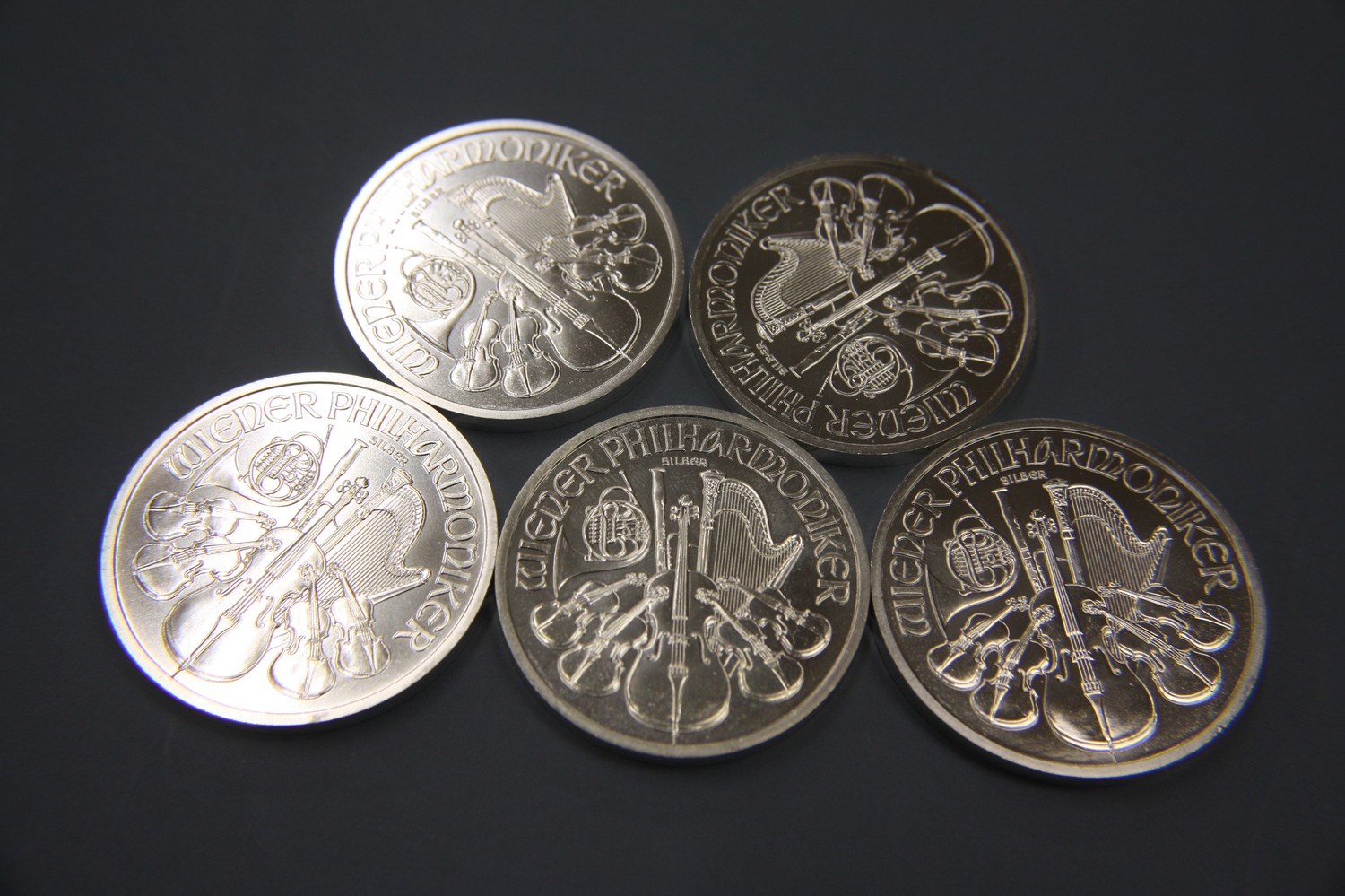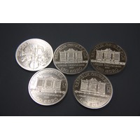 Five .999 1ozt fine silver Austrian coins