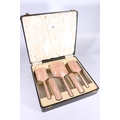 An Art Deco silver and guilloche enamel five piece dressing table set by Henry Clifford Davis, Birmingham 1937, in Cairncross of Perth fitted case