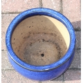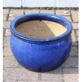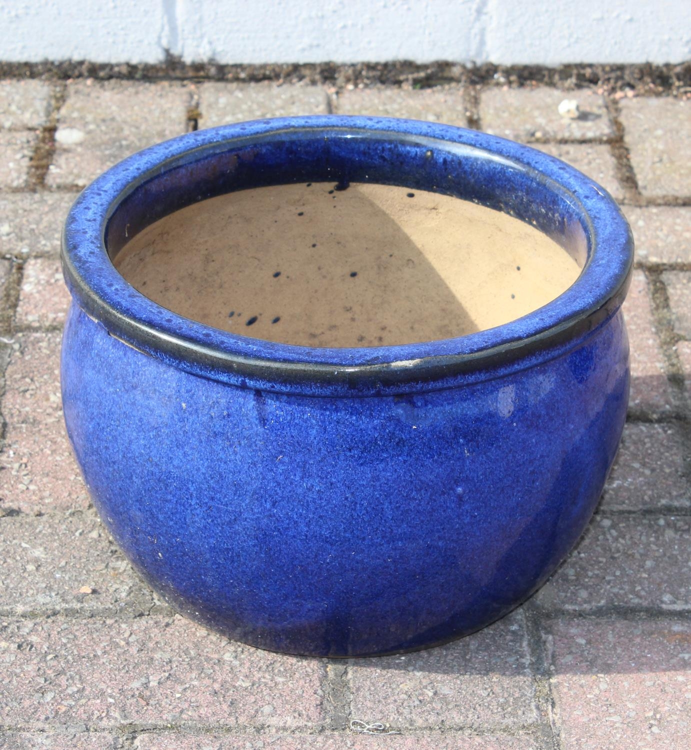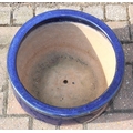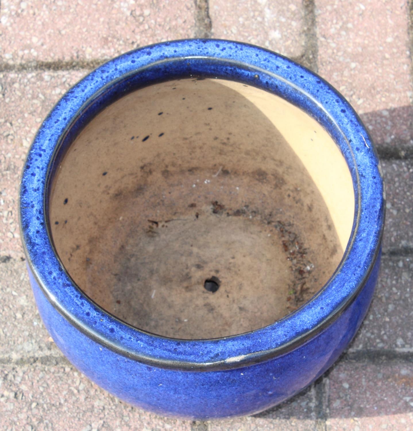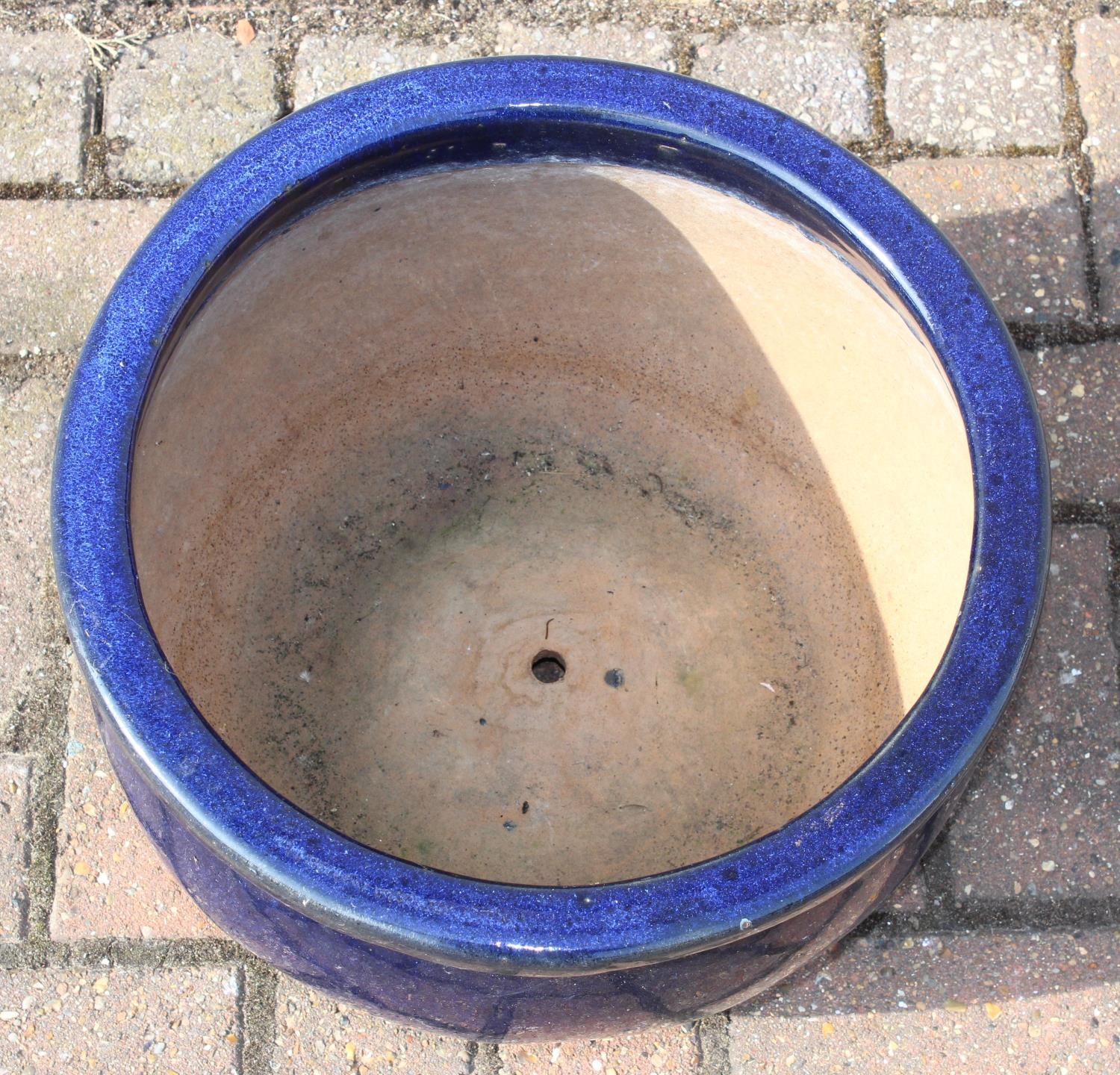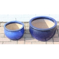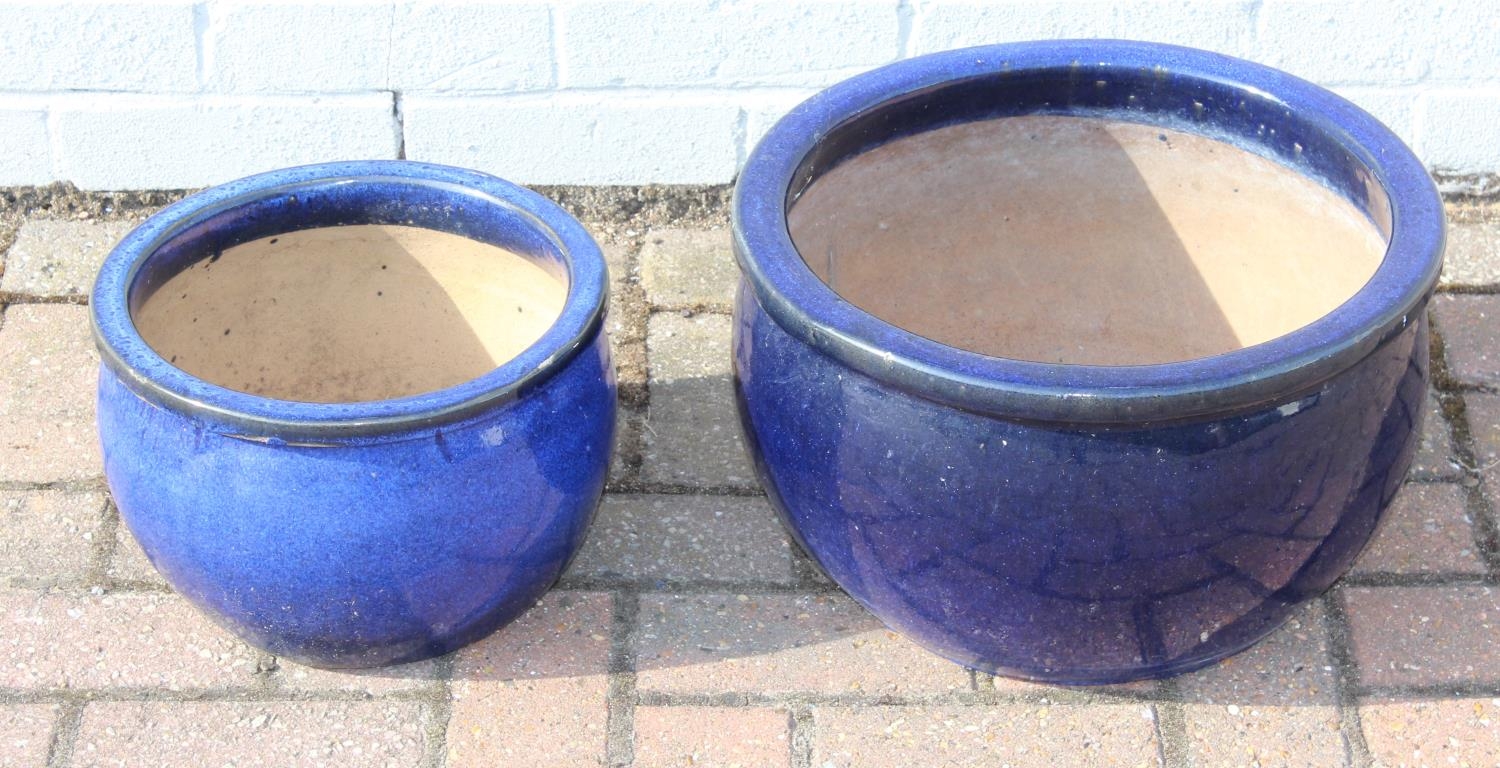 Two blue glazed garden planters or pots, the largest 40cm in diameter x 23cm tall [2]