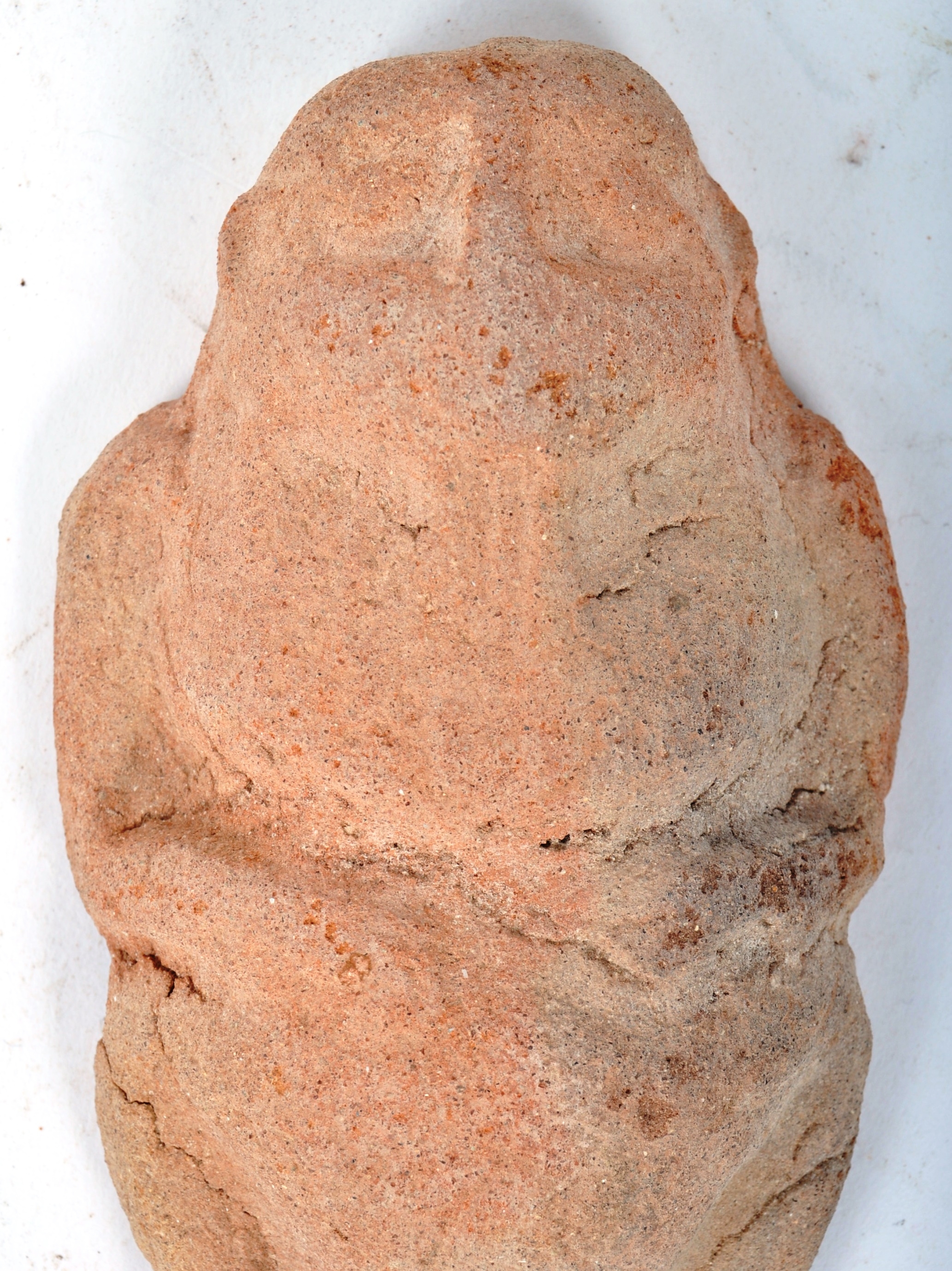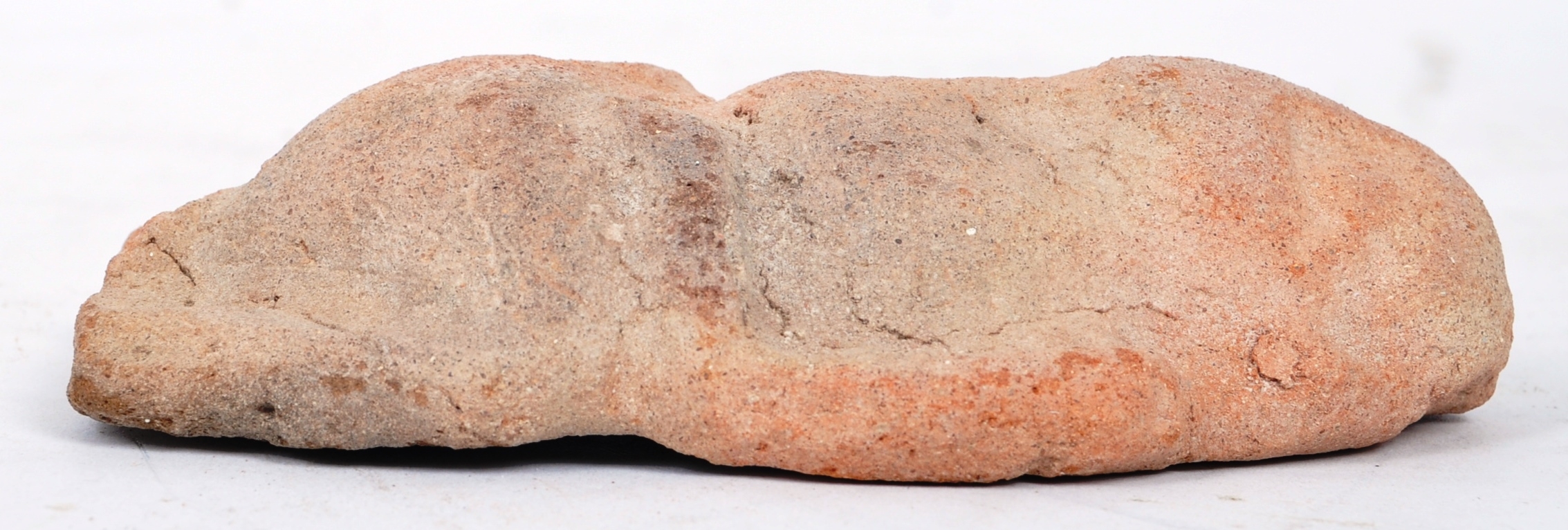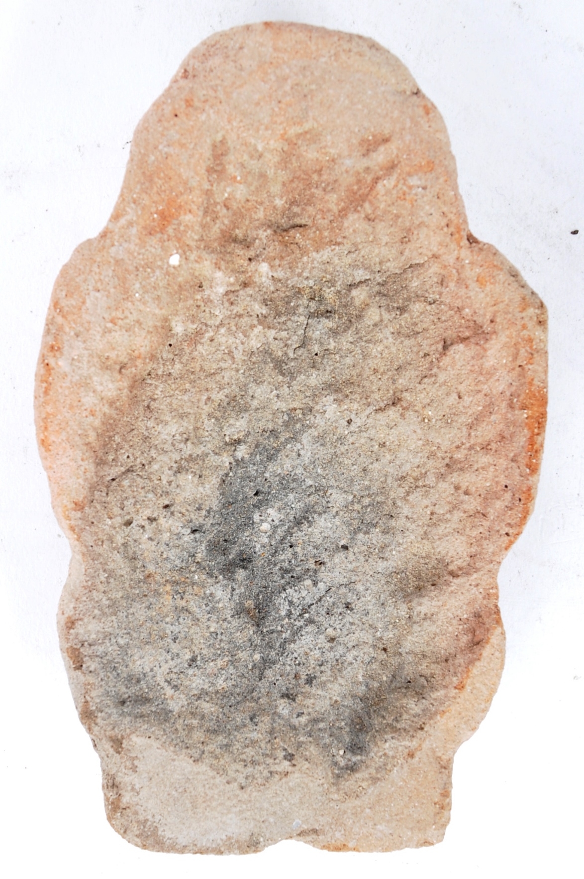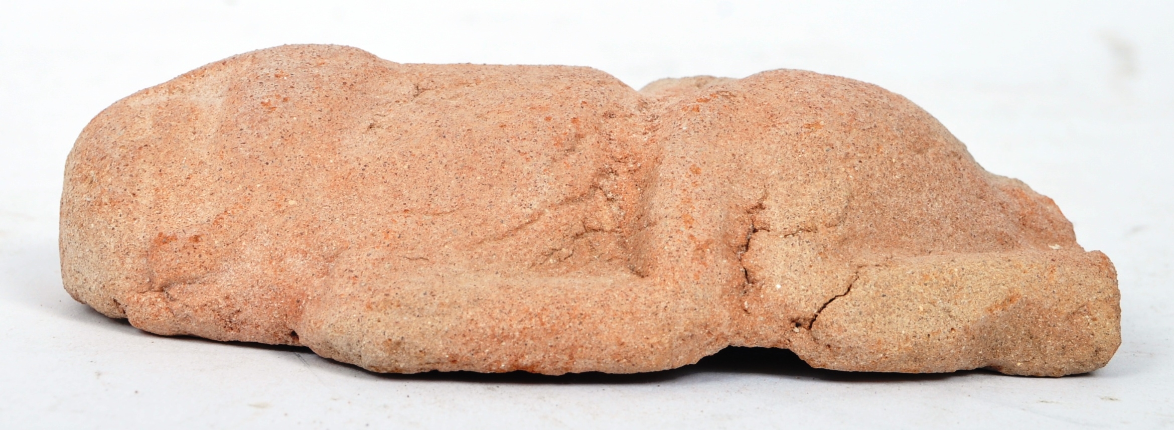 A Tang Dynasty (618–907 AD) Chinese terracotta ceremonial amulet figure of an elder bearded man. Unglazed. Measures approx. 13cm x 8cm.