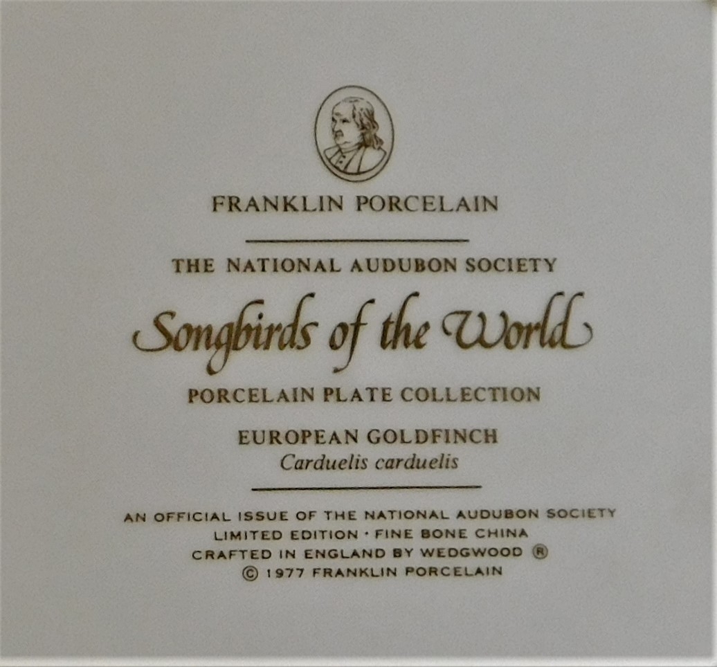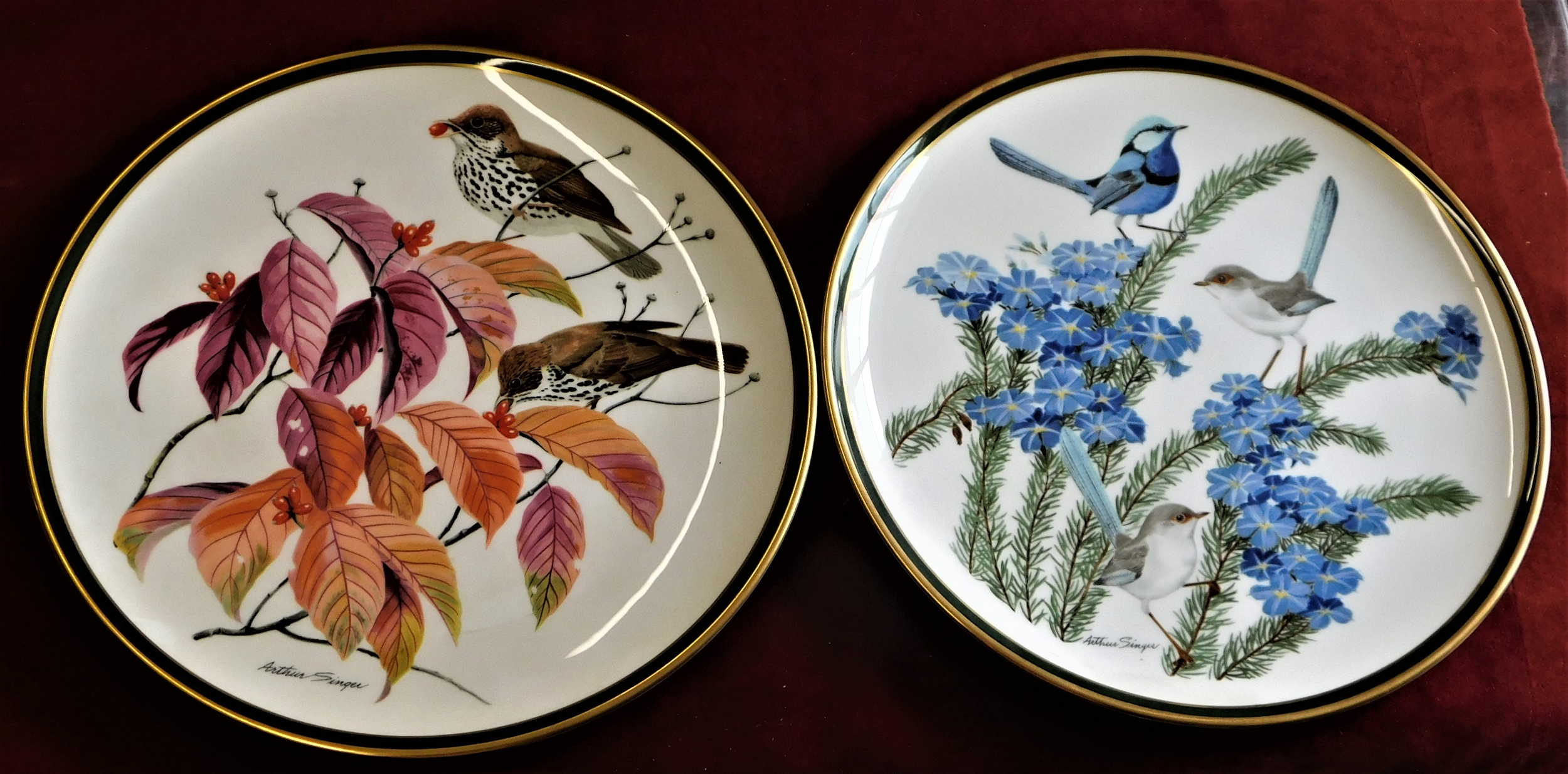Plates (8) - 'Songbirds of the World' Franklin Porcelain crafted in England by Wedgewood 1977, excellent condition, boxed dowmentation Inc Painted by Arthur Singer