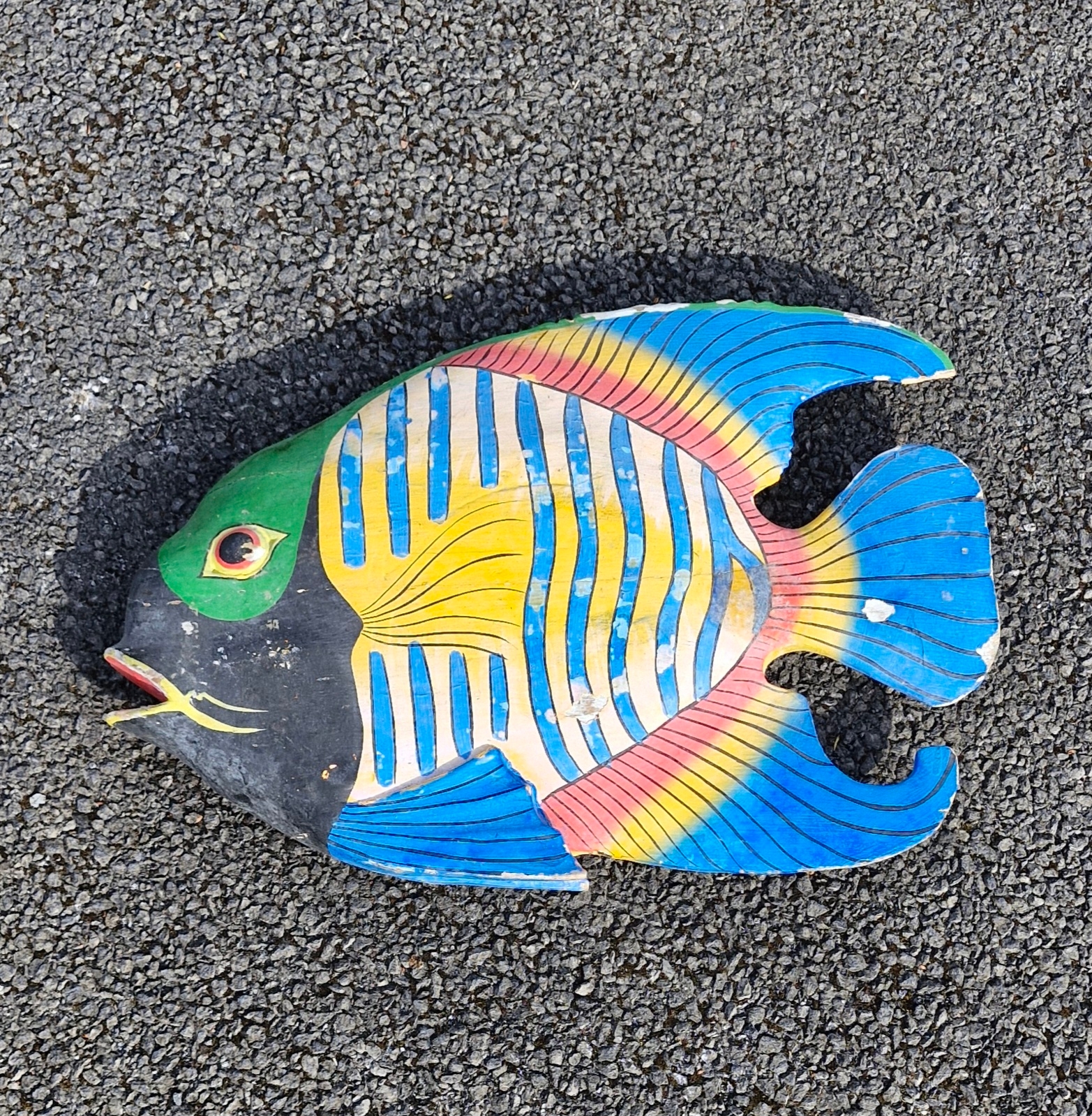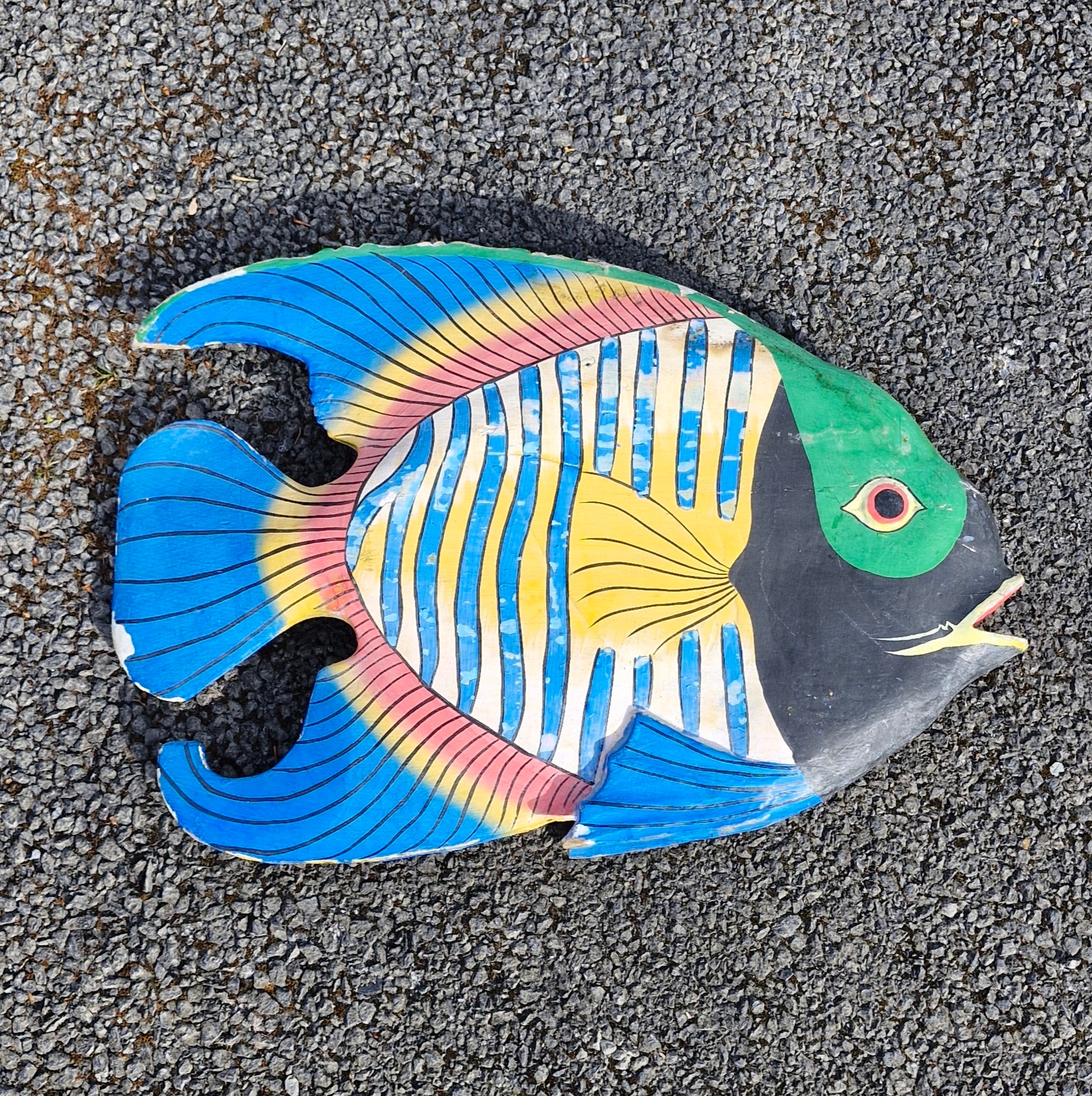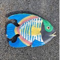 A wooden handpainted decorative tropical fish.