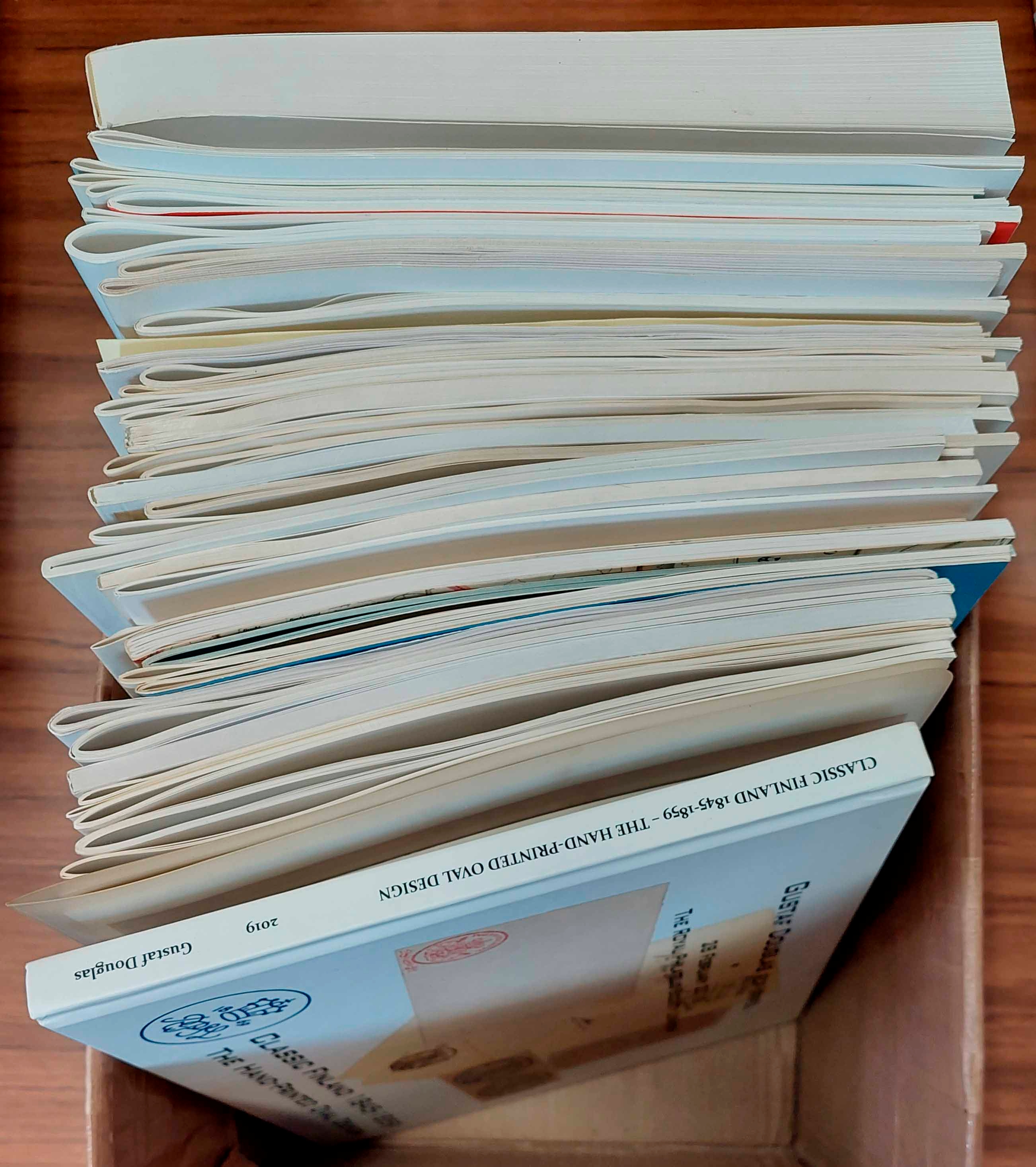 RPSL HANDOUTS: In one carton. Two hardbound: Pre-Colonial Madagascar by Berg and Classic Finland 1845-1859 by Douglas. Little to no duplication (c.50)
