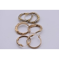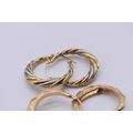A pair of tanzanite gold hoop earrings, stamped 14k, 3.6g; together with two pairs of gold hoop earrings, stamped 375, 4.8g total weight.