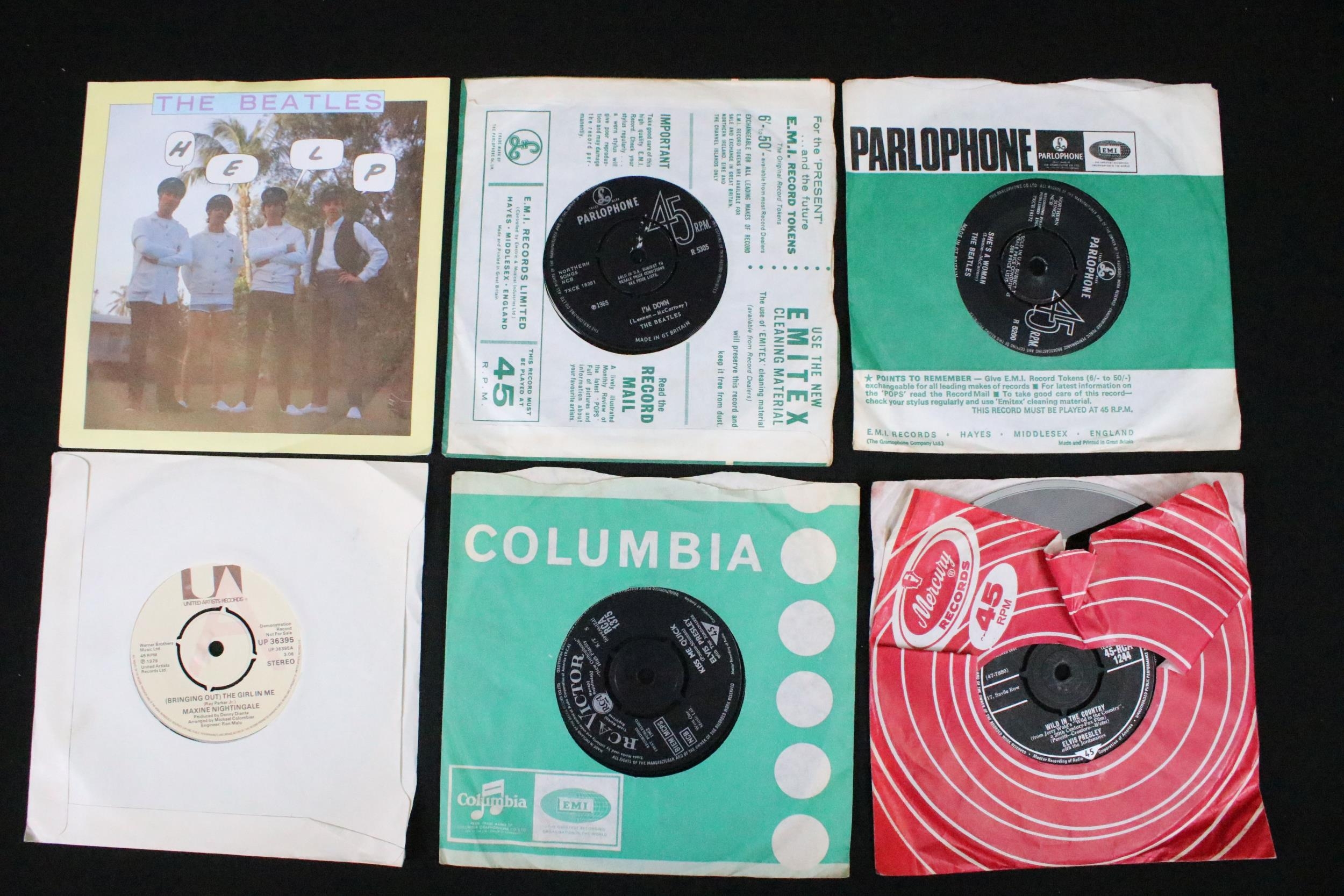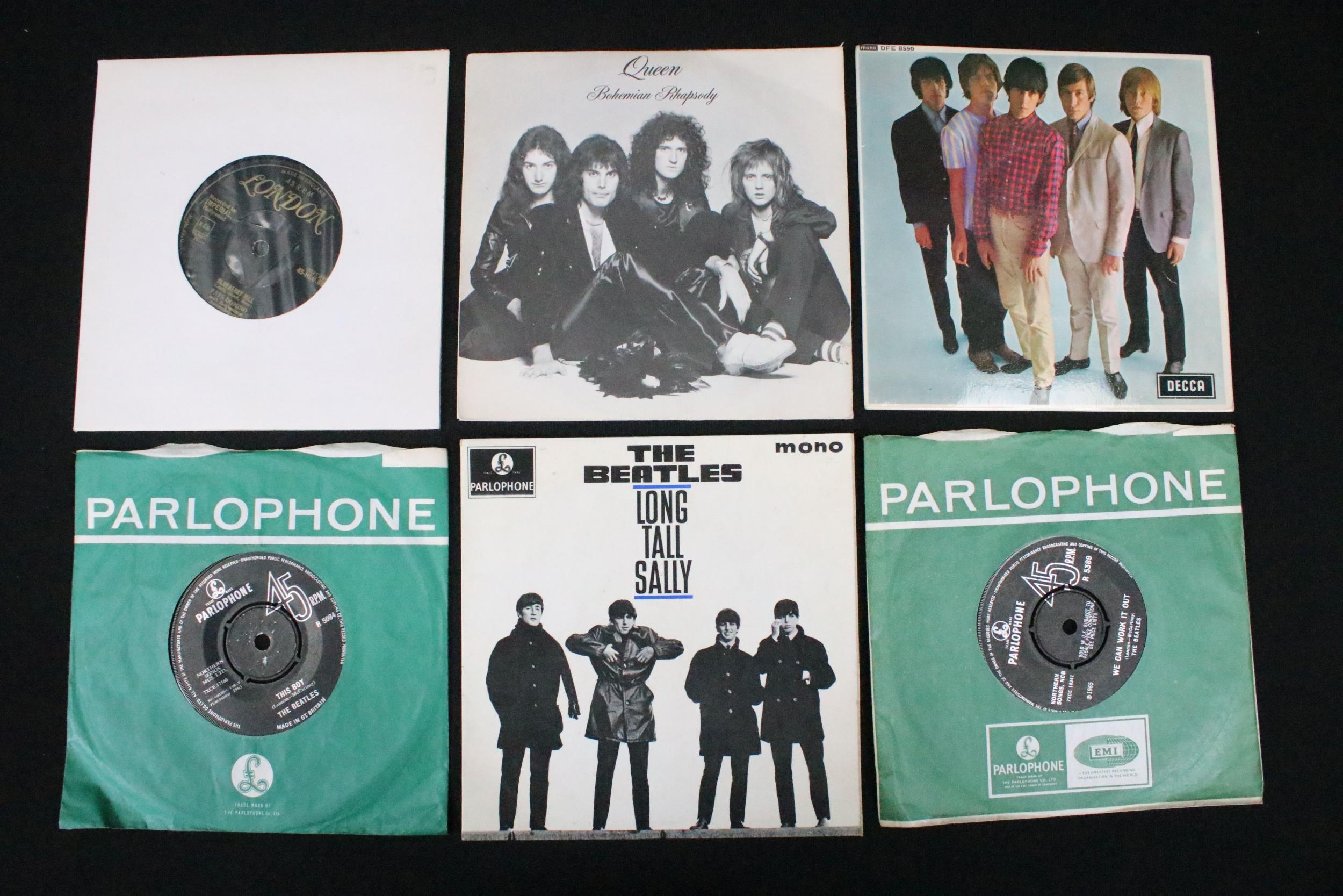 Vinyl - 65 Rock & Pop 7" singles and EPs to include Fats Domino (gold tri-centre London labels), Queen (Bohemian Rhapsody with pic sleeve), The Rolling Stones (EP), The Beatles x 6 (inc 1 EP), Maxine Nightingale (promo), Elvis Presley x 5 (inc 2 EPs), Bill Haley & His Comets, Jethro Tull, The Temptations, Ben E King, Martha & The Vandellas, The Drifters, Chuck Berry, Eric Burden & The Animals (foreign pressing with pic sleeve), Procul Harum and others. Vg overall