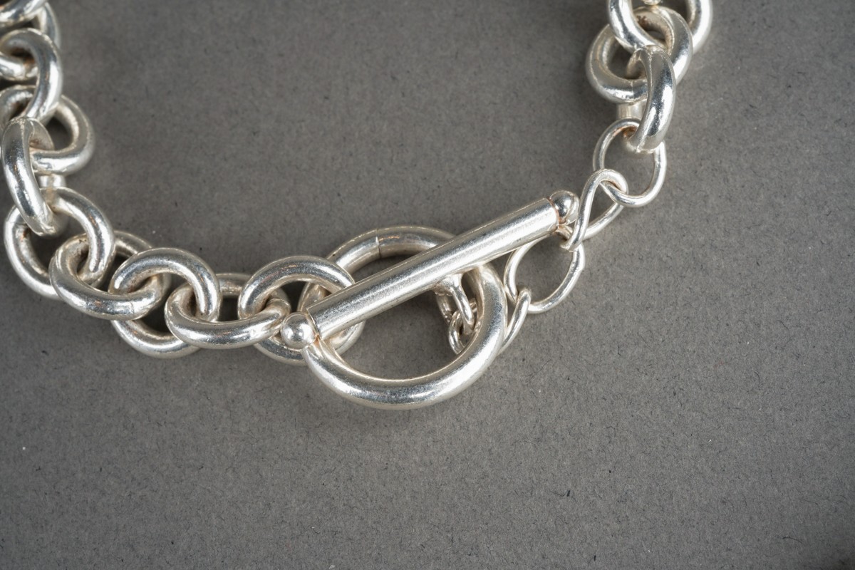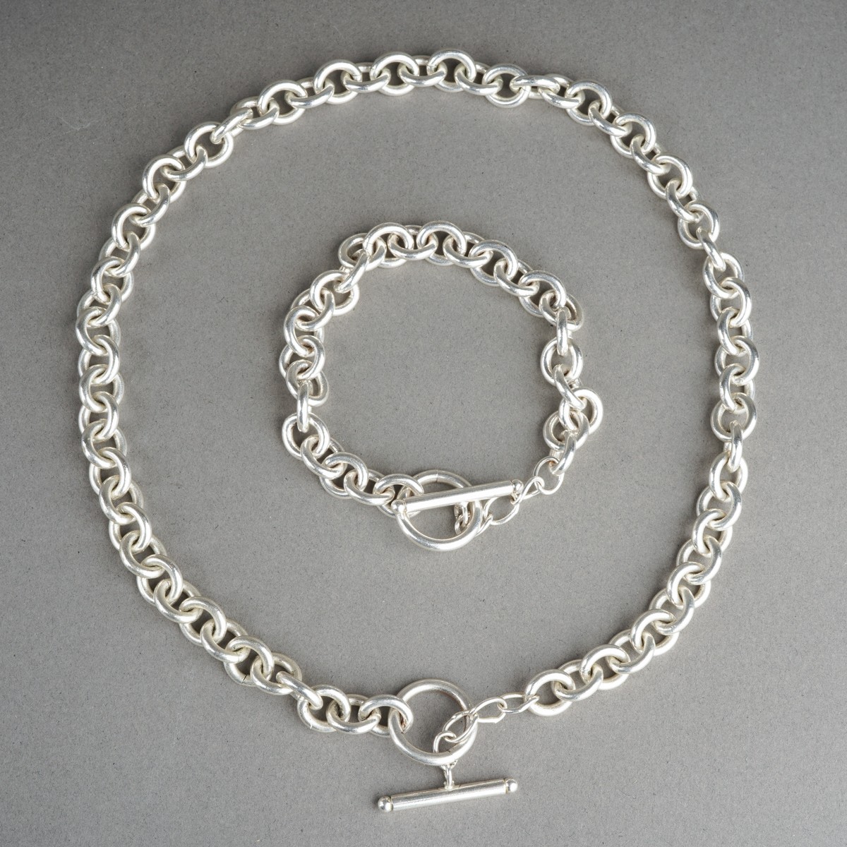 White metal necklace and bracelet. Stamped Ster 925, approx lengths 430mm and 195mm, approx gross weight 79.8 grams.