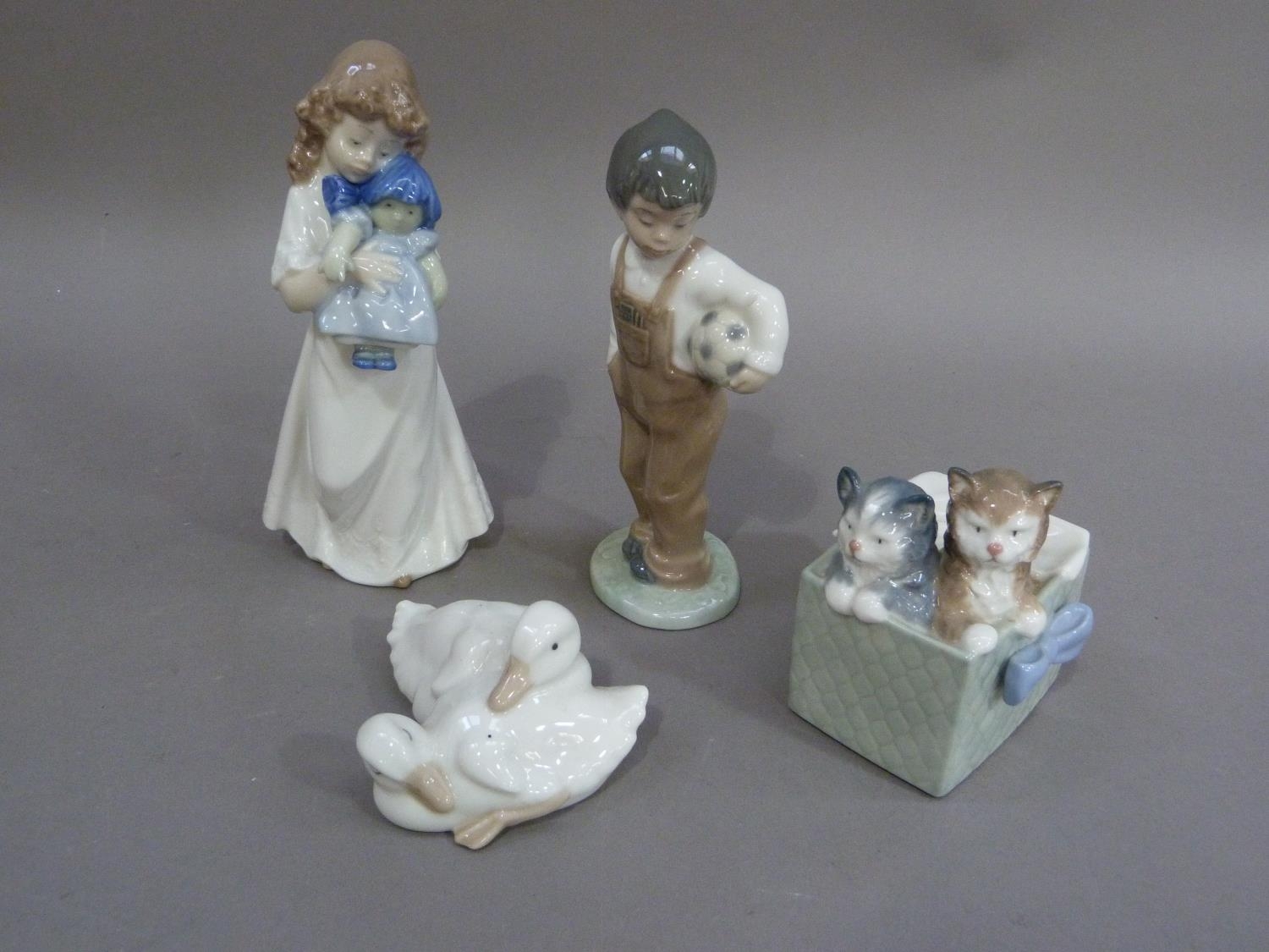 Three Nao figures, 1107, 1068, 1080 and a Nao figures number 545 of two sleeping ducks (4)