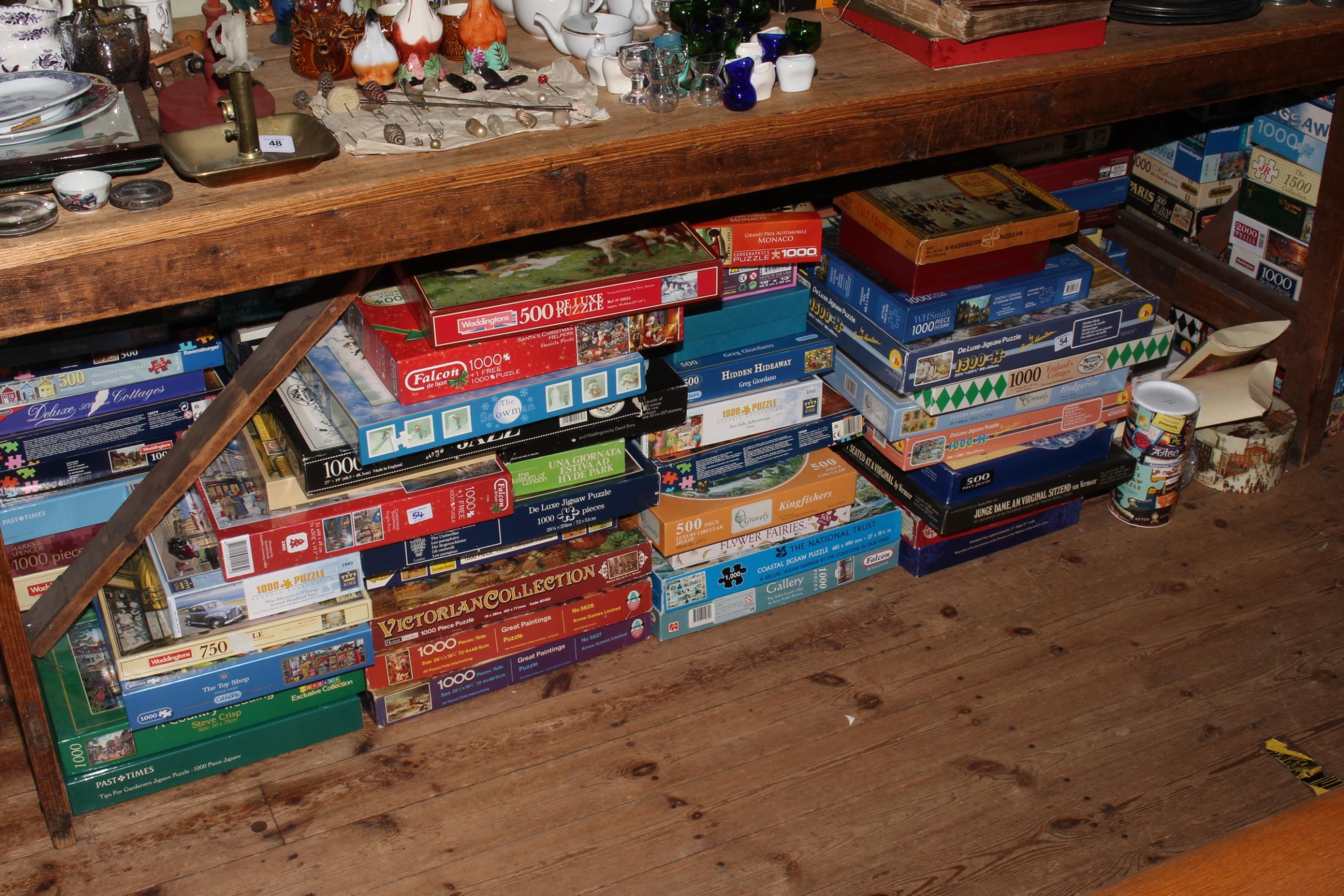 Large collection of approximately one hundred jigsaw puzzles.