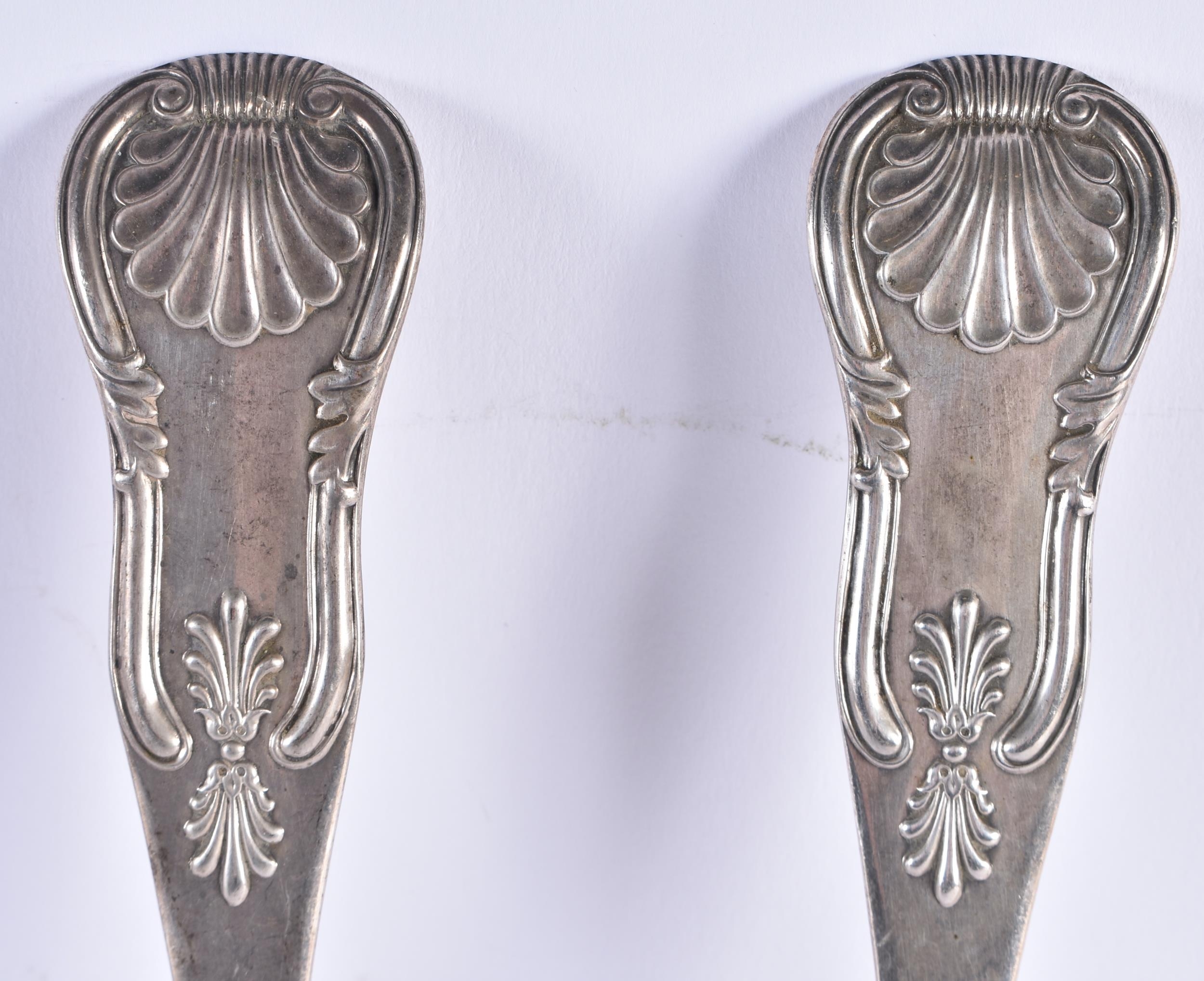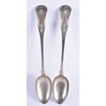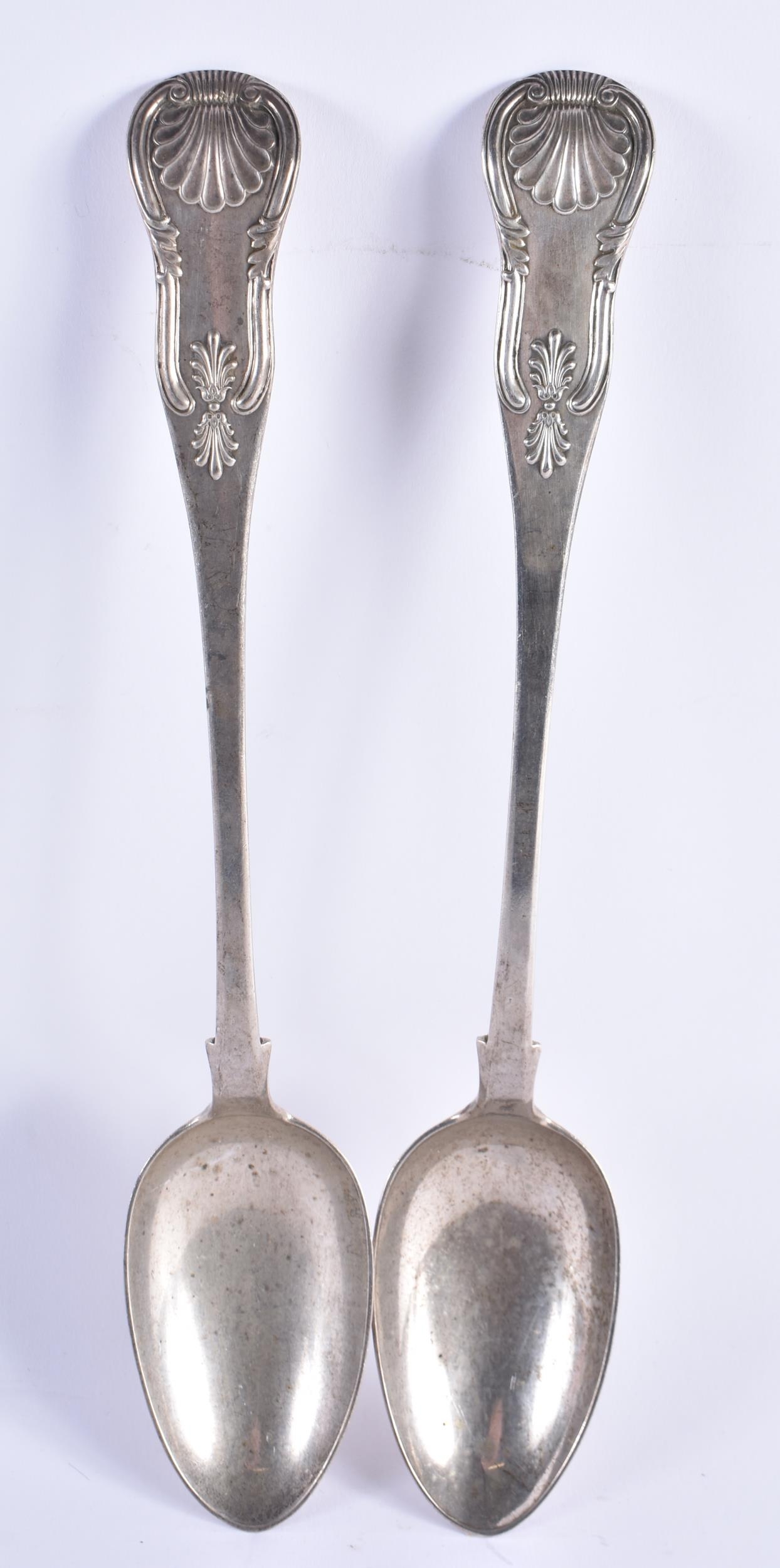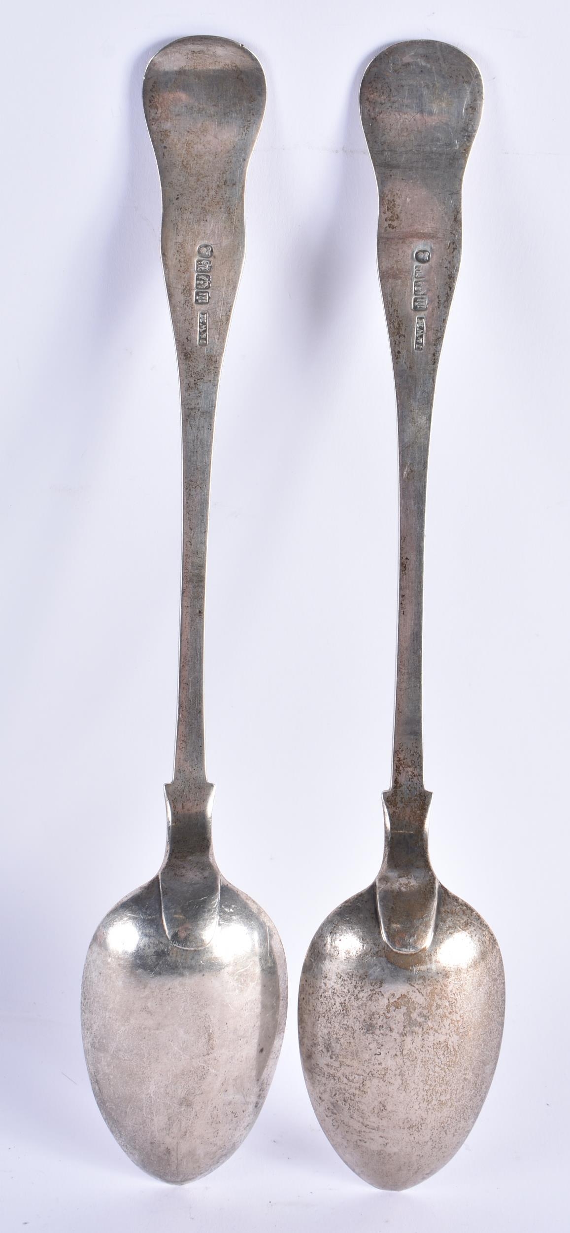 A VERY LARGE PAIR OF MID 19TH CENTURY SCOTTISH SILVER BASTING SPOONS. Edinburgh 1839. 274 grams. 32 cm long.