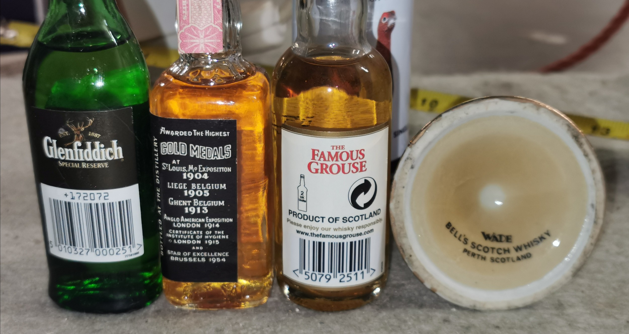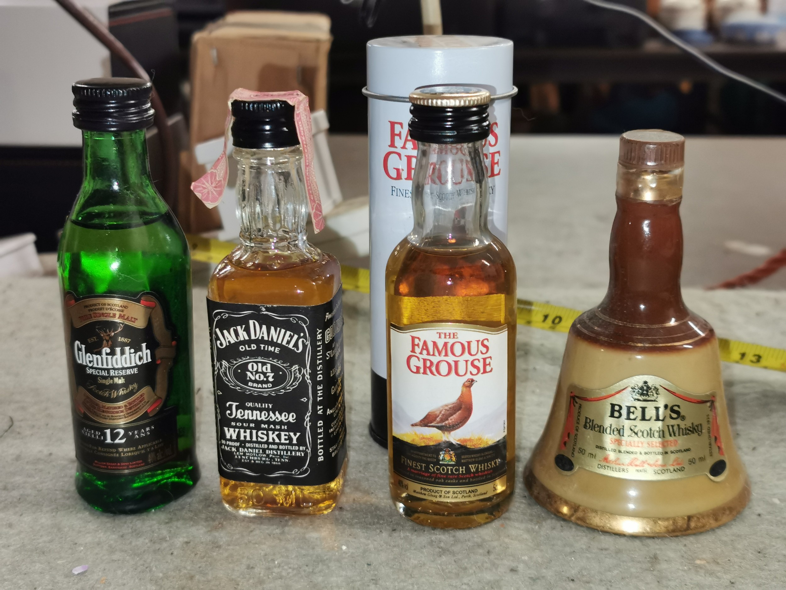 4 x unopened whisky cabinet miniatures being Bells, Famous Grouse, Jack Daniels & Glenfiddich