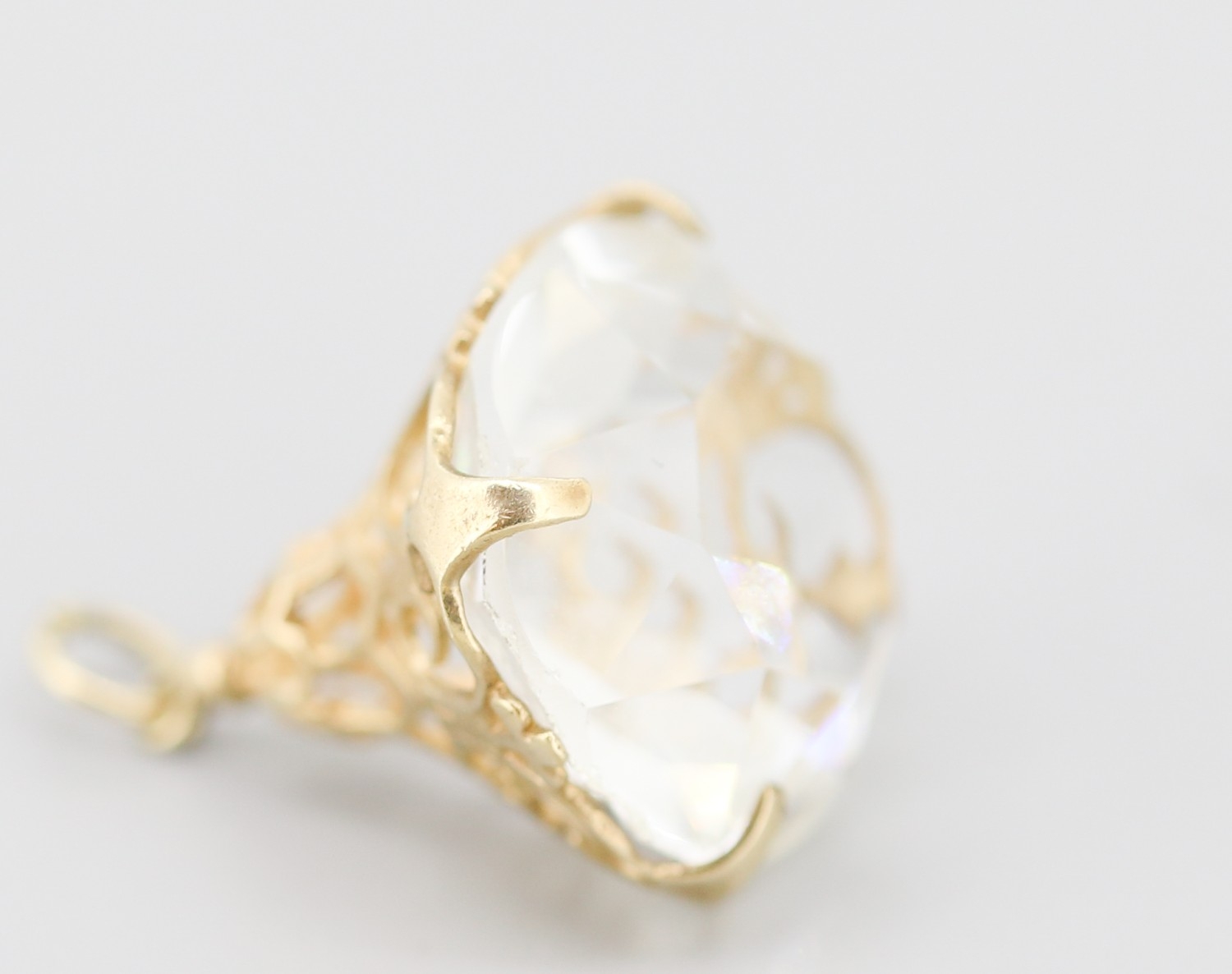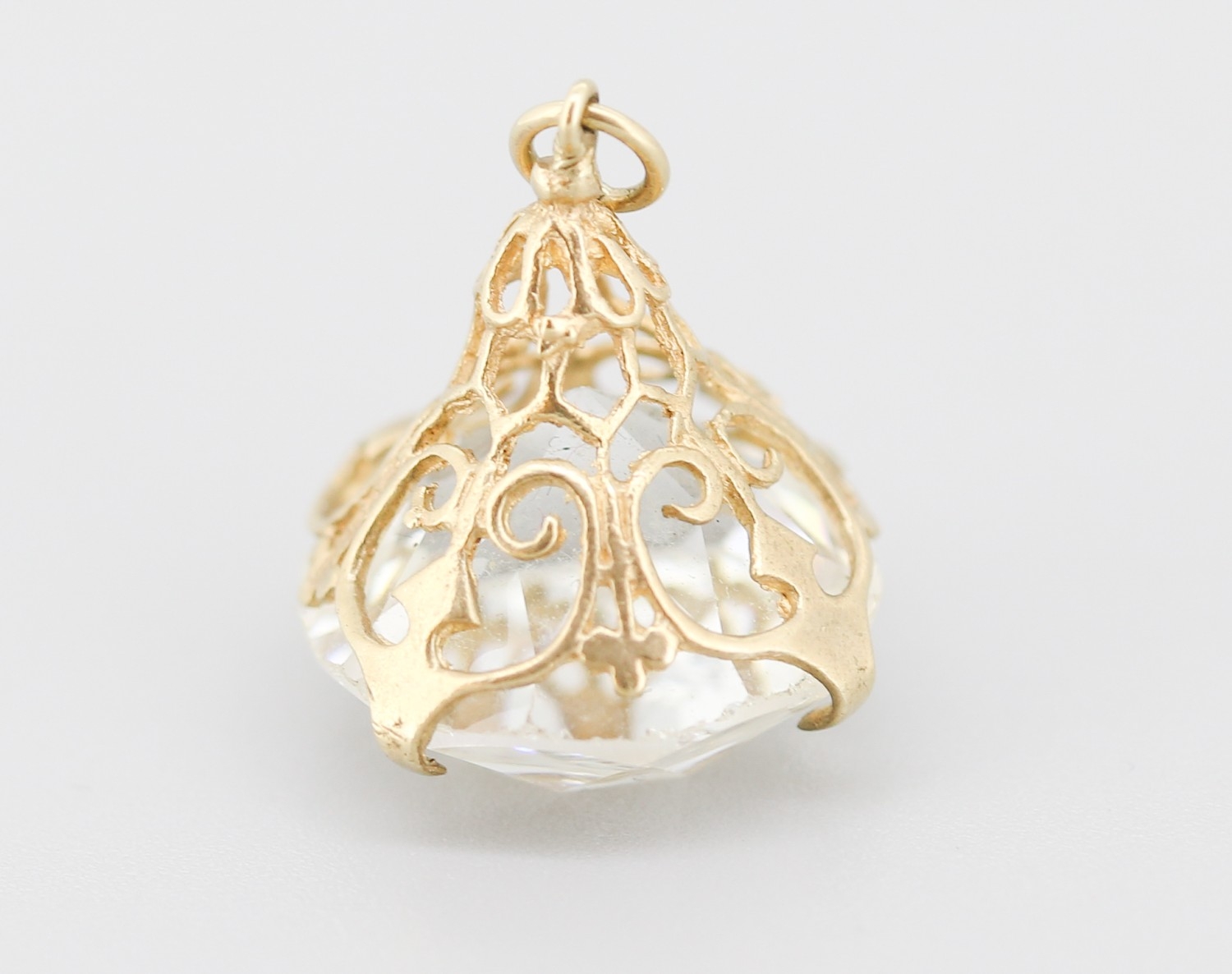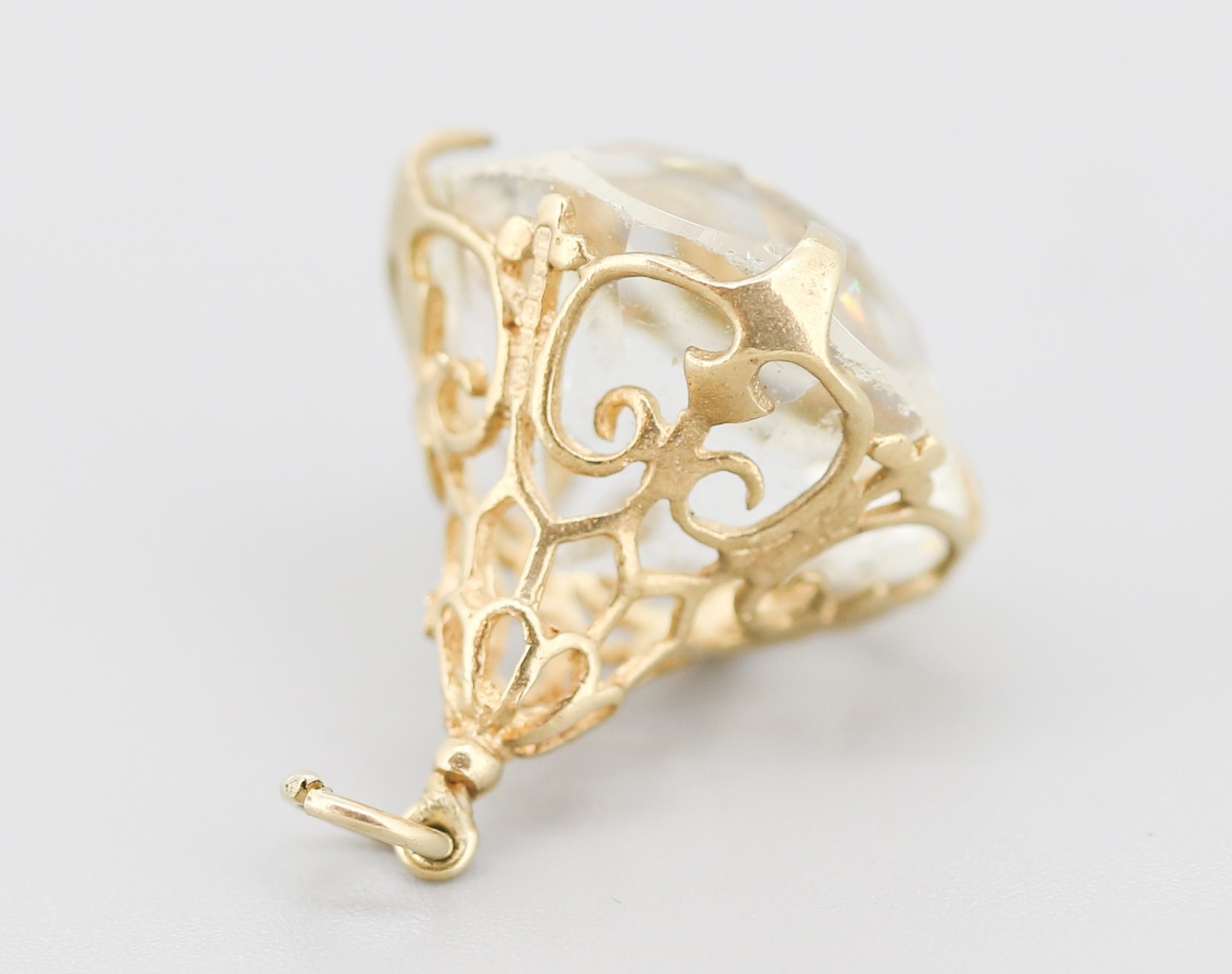 Attractively Detailed Quartz Fob Pendant Set in 9 Carat Yellow Gold 2.5cm High