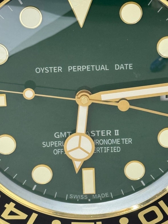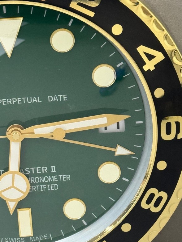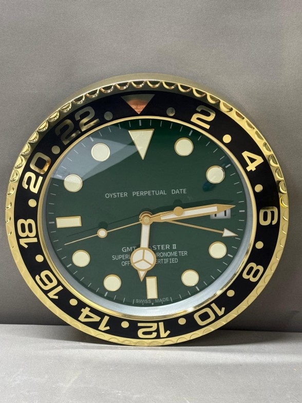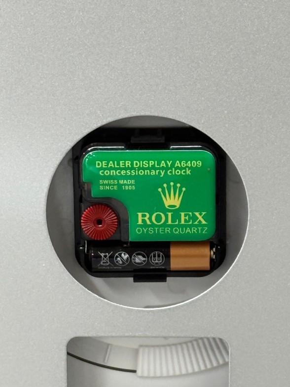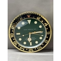 A Rolex-style dealer display metal wall clock with sweeping motion Dia34cm