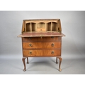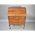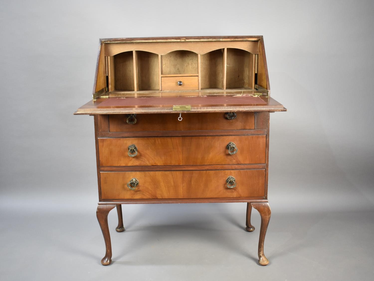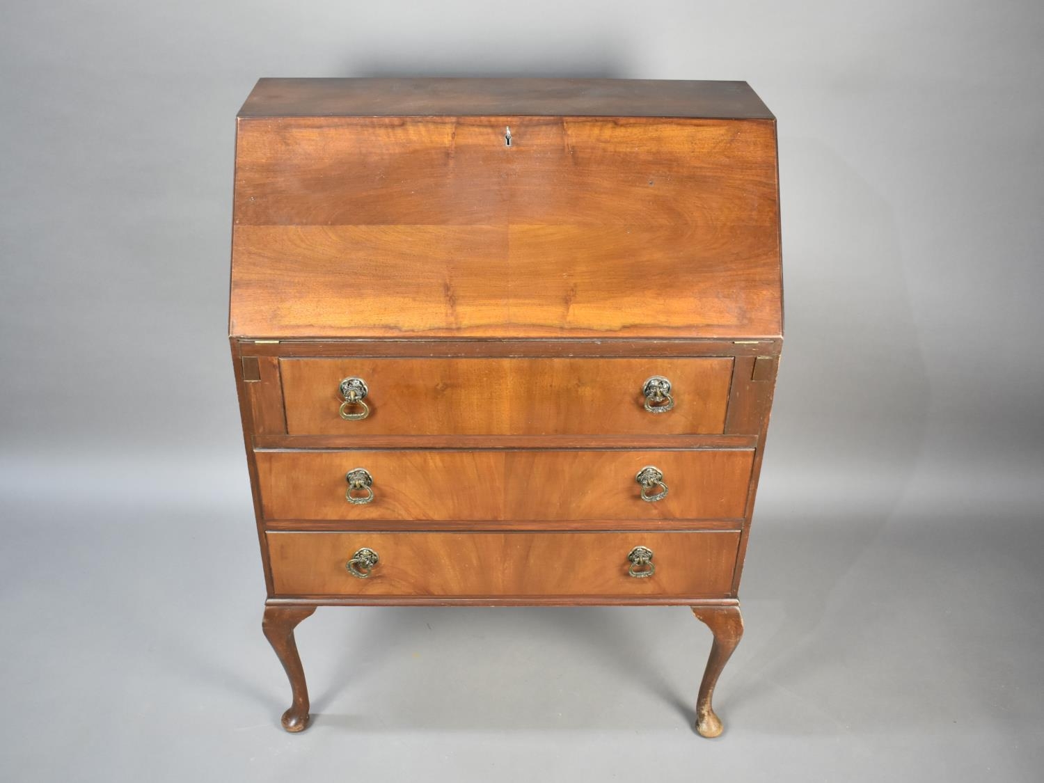 A Mid 20th Century Fall Front Walnut Bureau, Three Drawers to Base, 74cms Wide