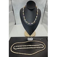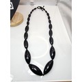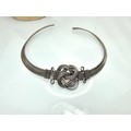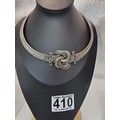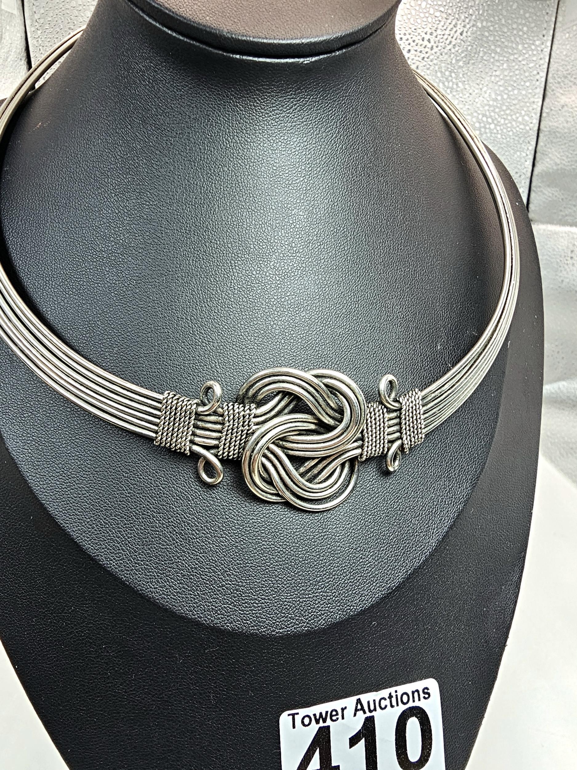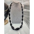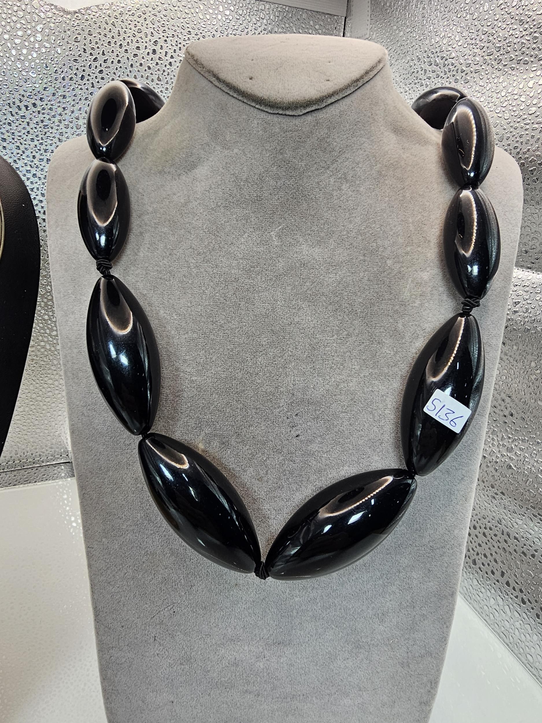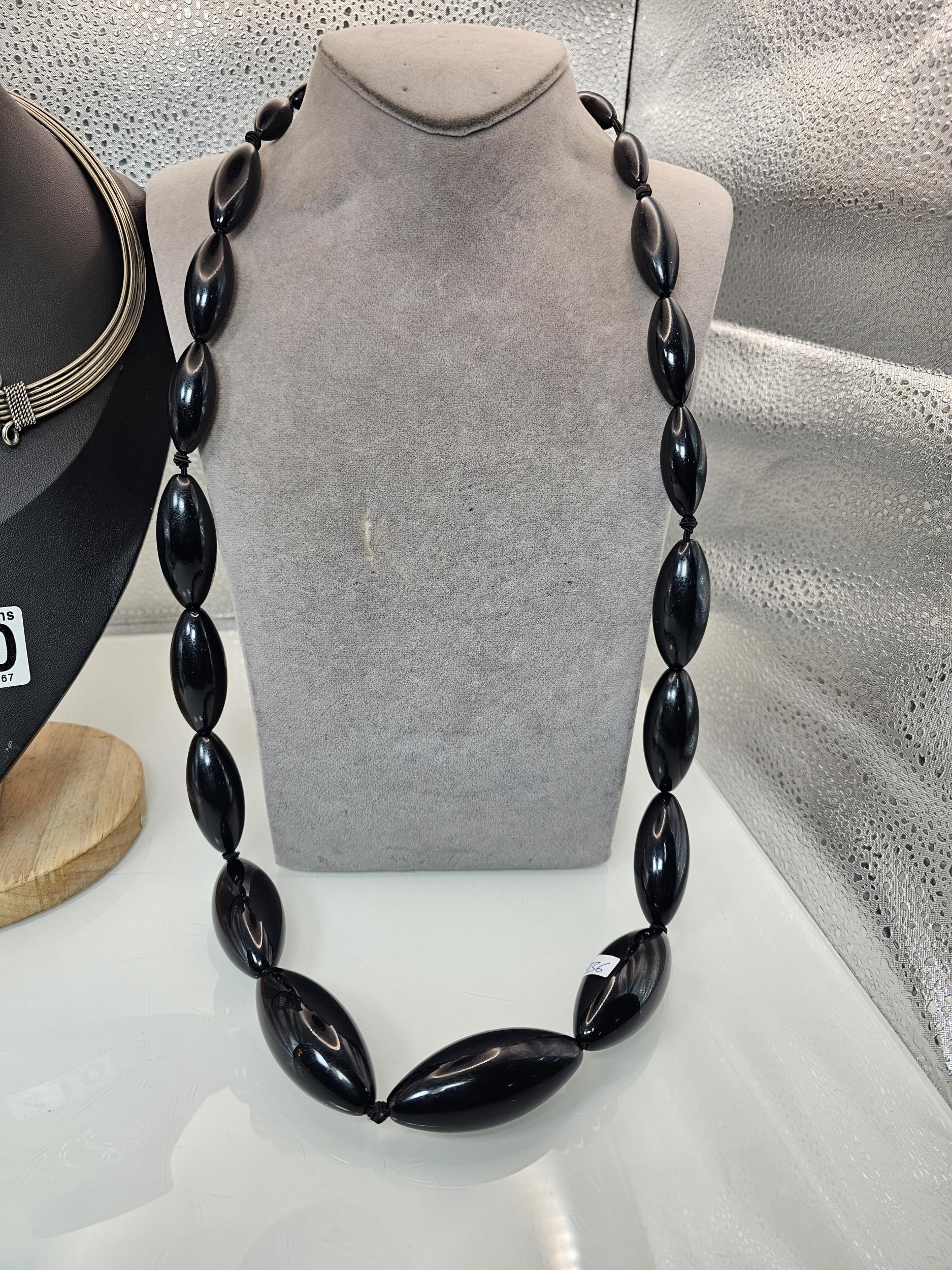 Two good vintage jewellery items to include a stunning ornate white metal multi strand choker necklace, having an art nouveau design, along with a large vintage early plastic beaded necklace with a hand knotted design. It has a length of 36 inches. The choker has a width of 15.5 cm and a length of 16cm.