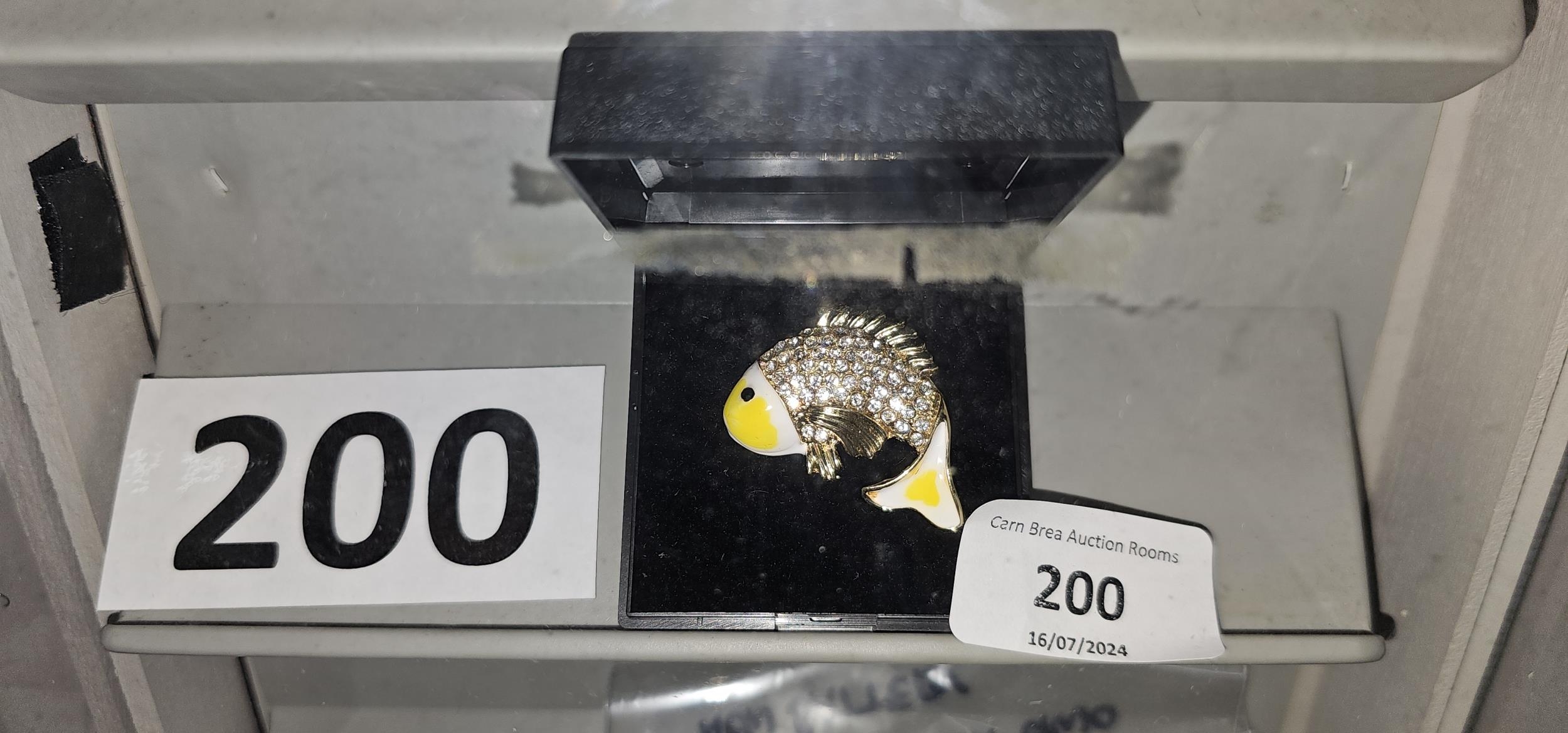 enamel & crystal fish brooch