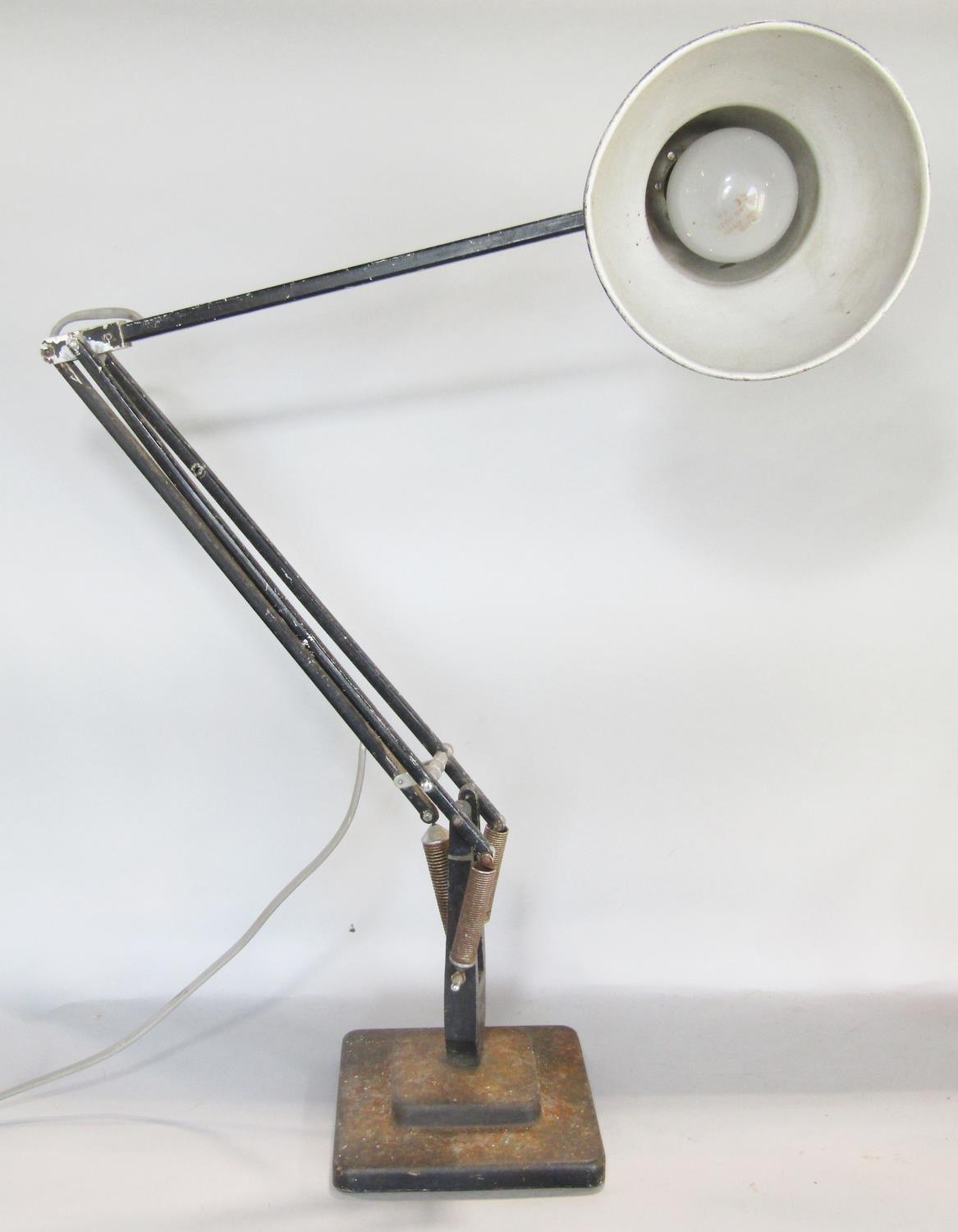 A Herbert Terry Anglepoise lamp set on a black two tier square cut base.