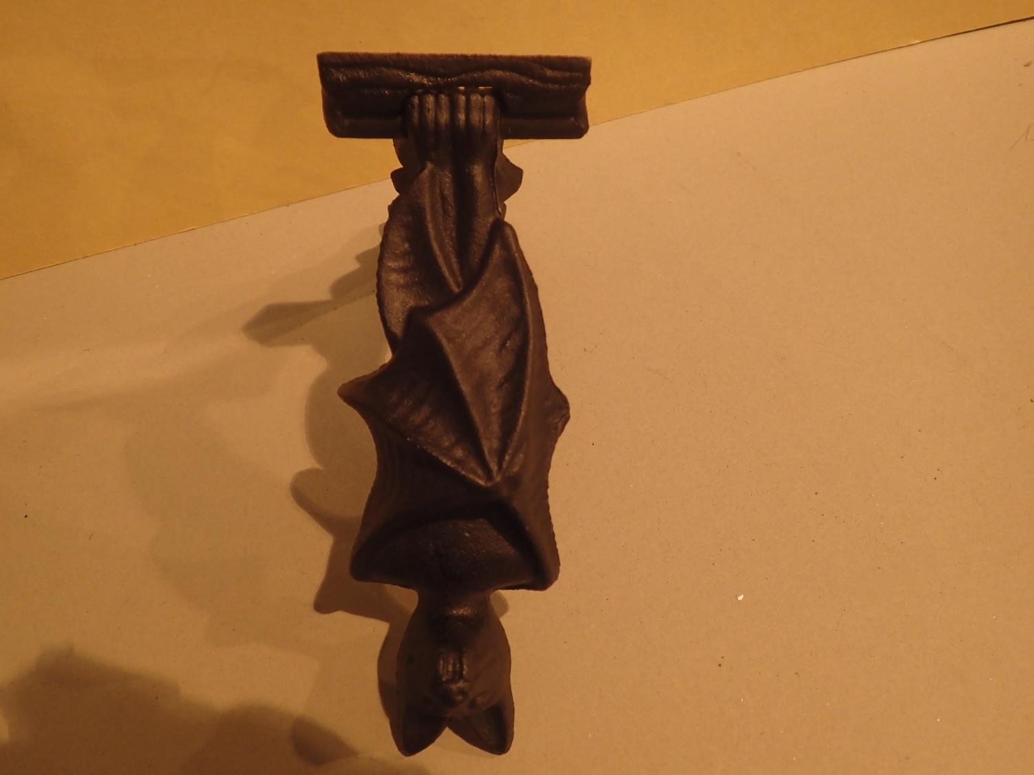 Cast iron hanging bat doorknocker, L: 18 cm. P&P Group 1 (£14+VAT for the first lot and £1+VAT for subsequent lots)