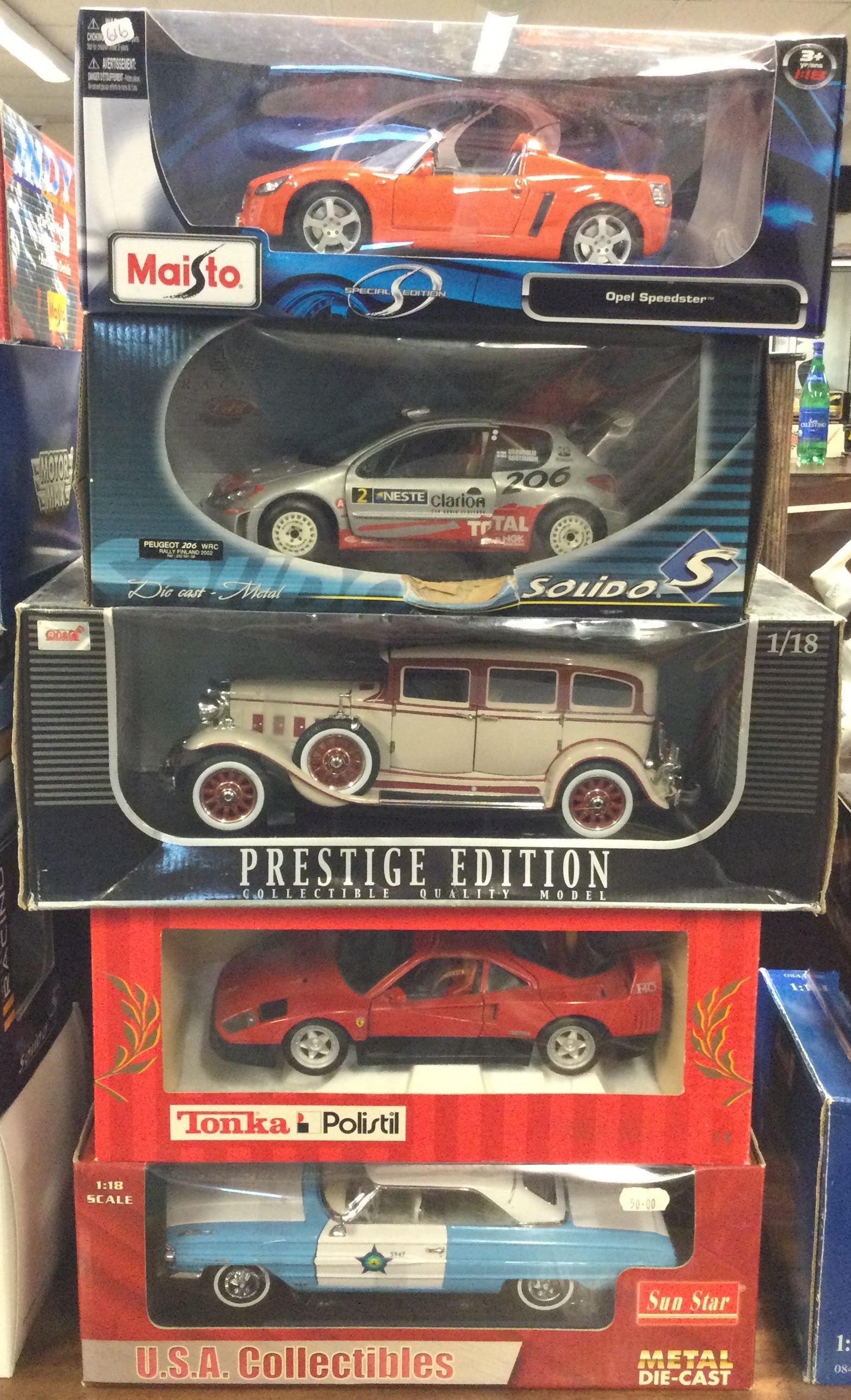 Five various 1:18 scale boxed model cars. Est. £20 - £30.