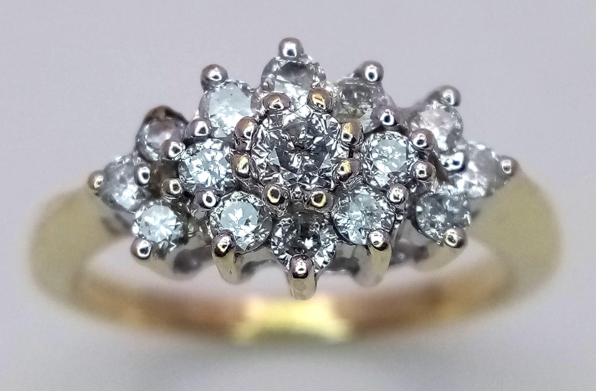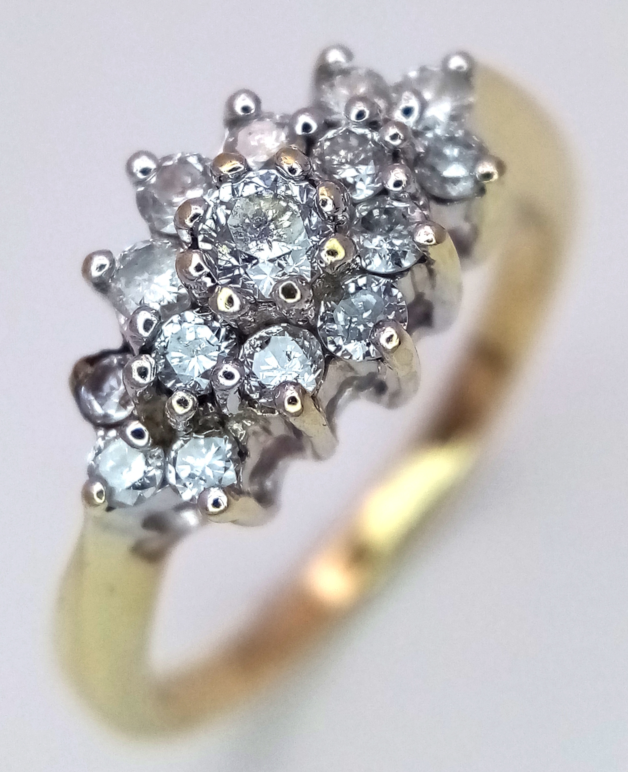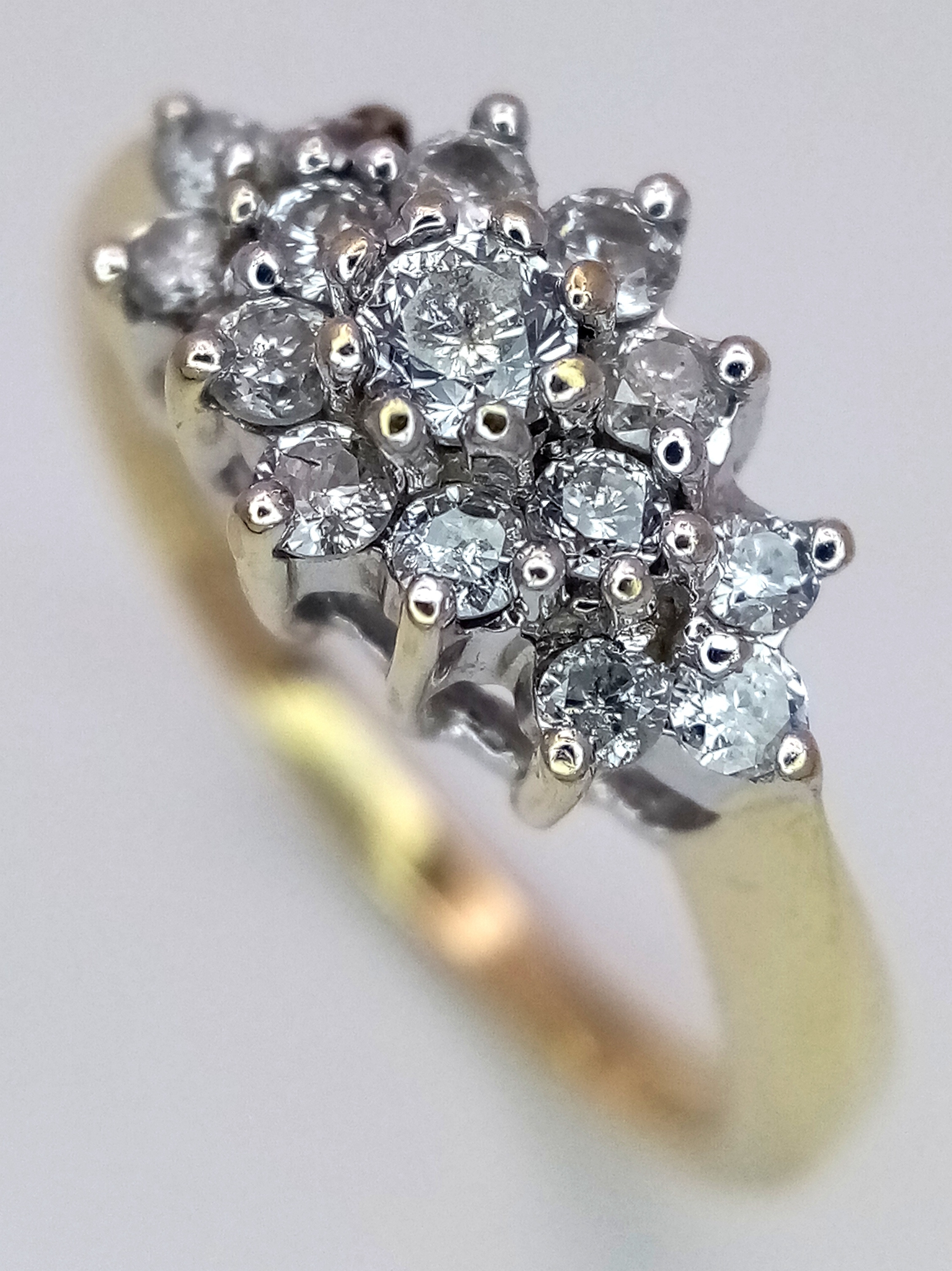 A 9K YELLOW GOLD DIAMOND CLUSTER RING. 0.50CTW, 2.9G TOTAL W...