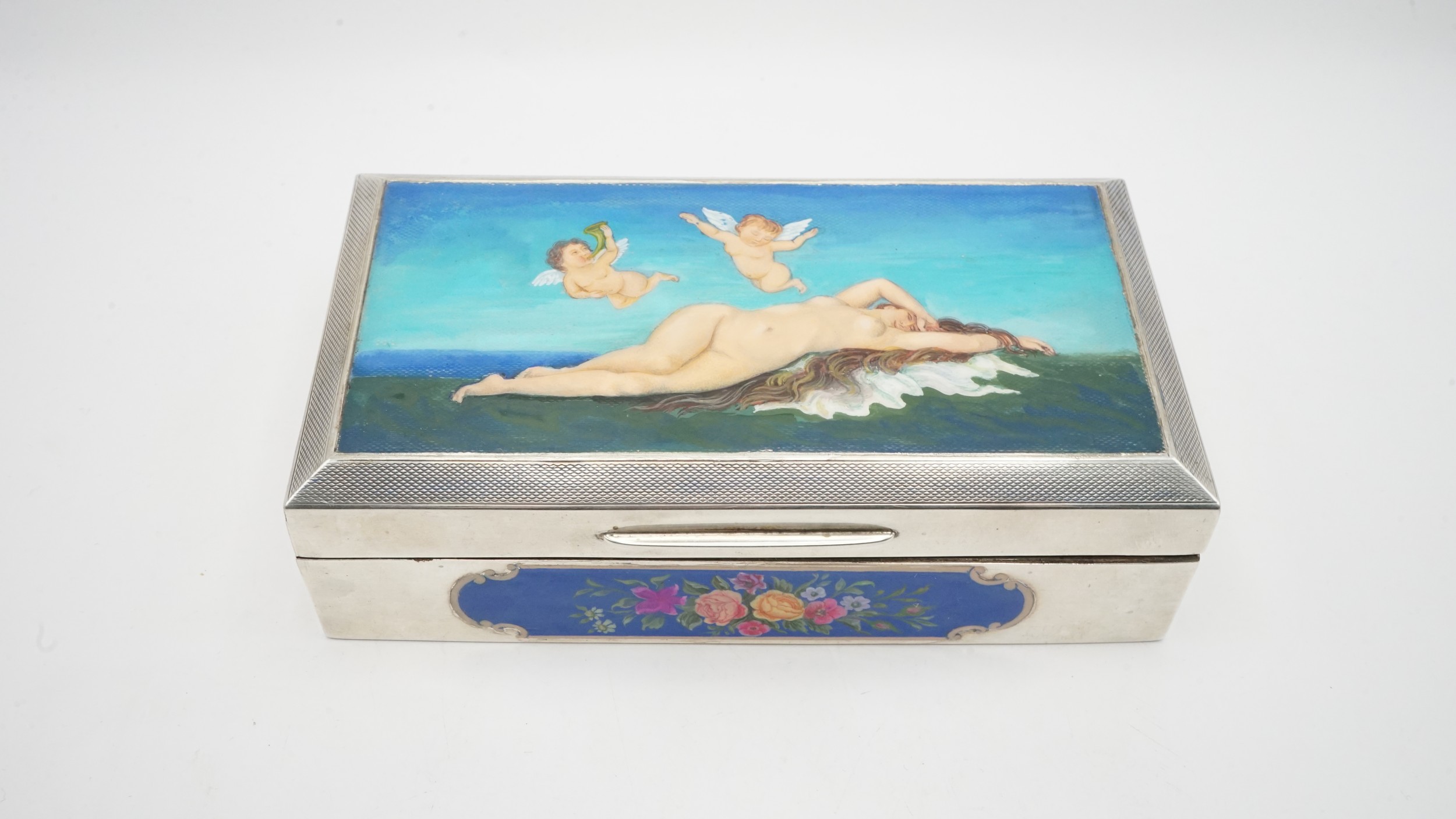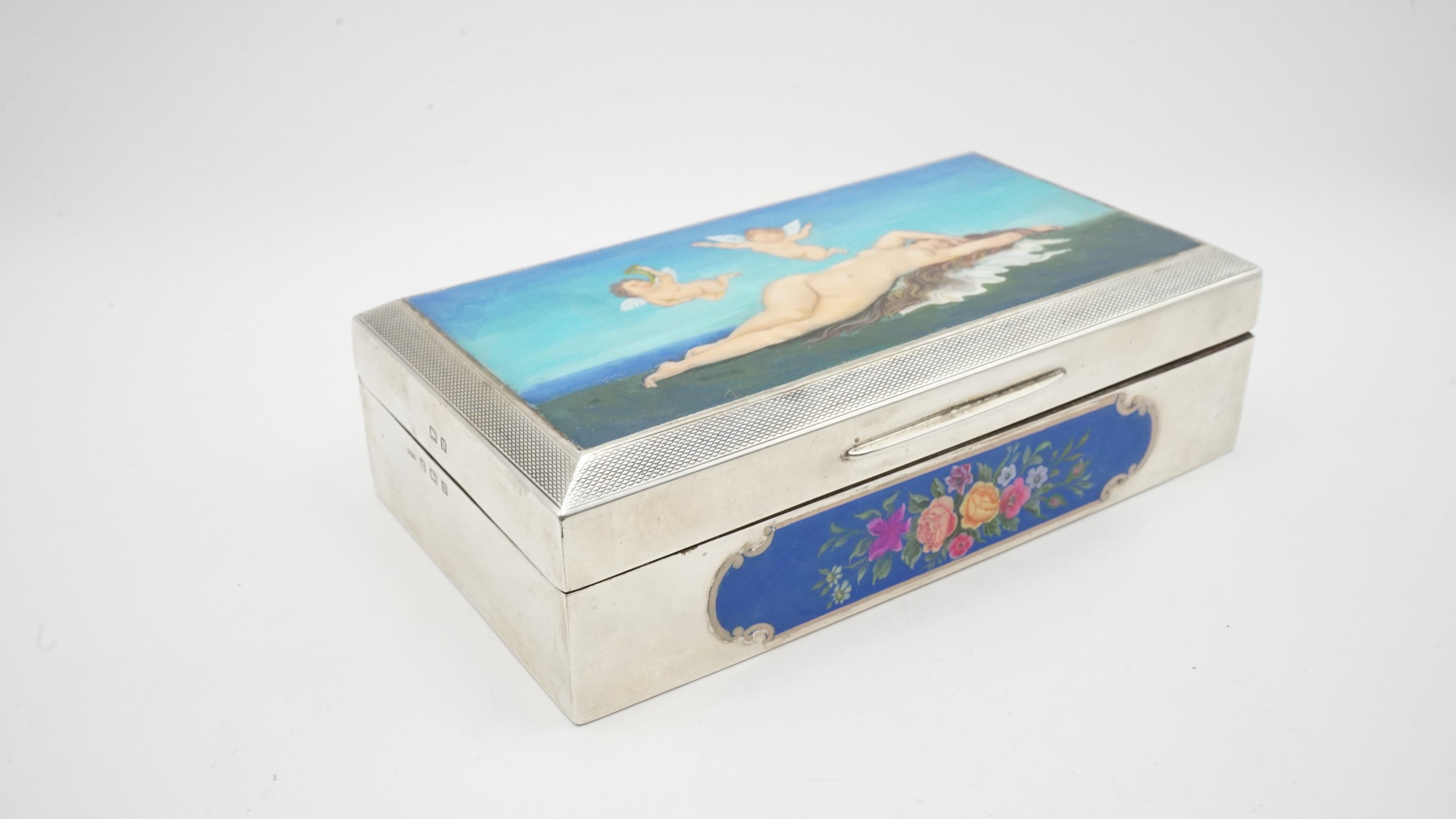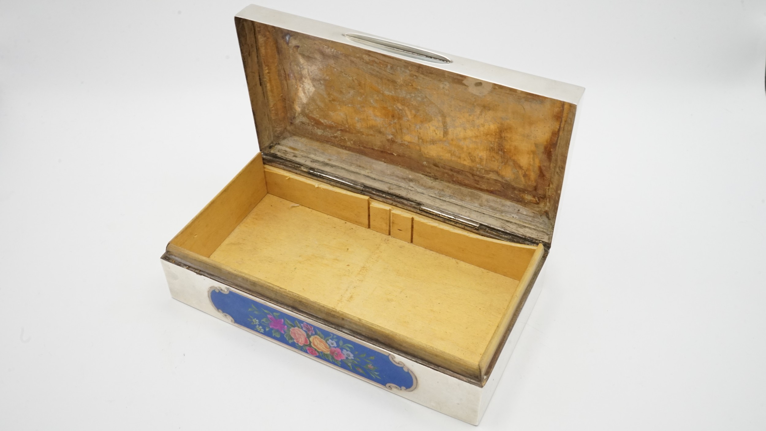 Sterling Silver Box With Decorative Lid And Wood Lining Total weight 366g