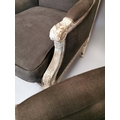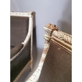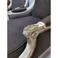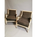 Pair of upholstered gilded and painted armchairs { Each 94cm H X 76cm W X 74cm D }.