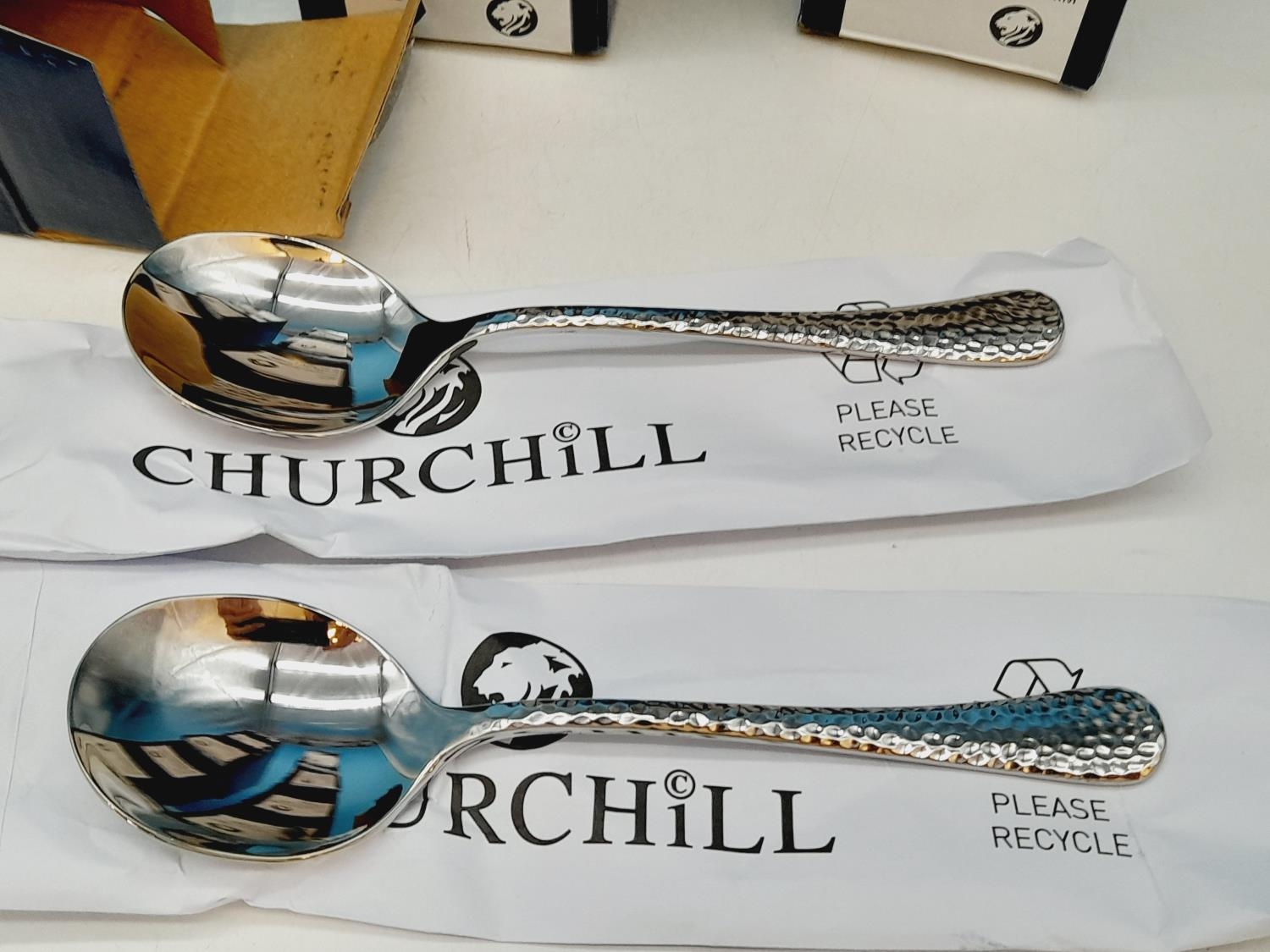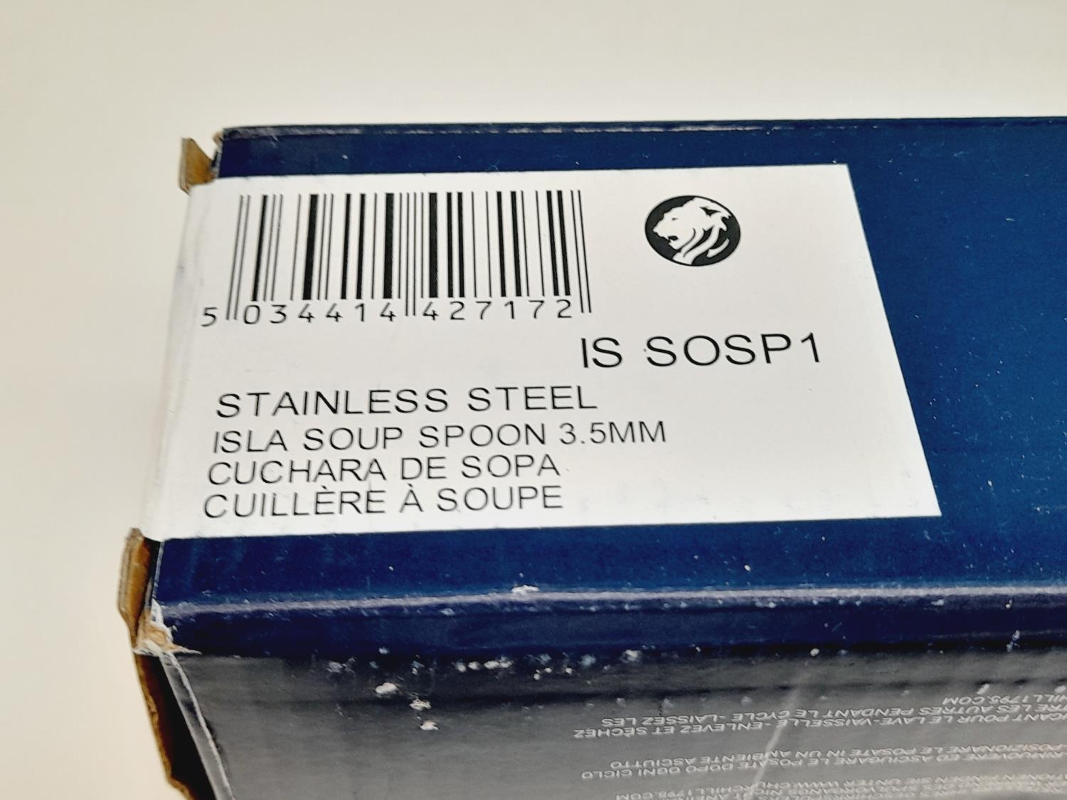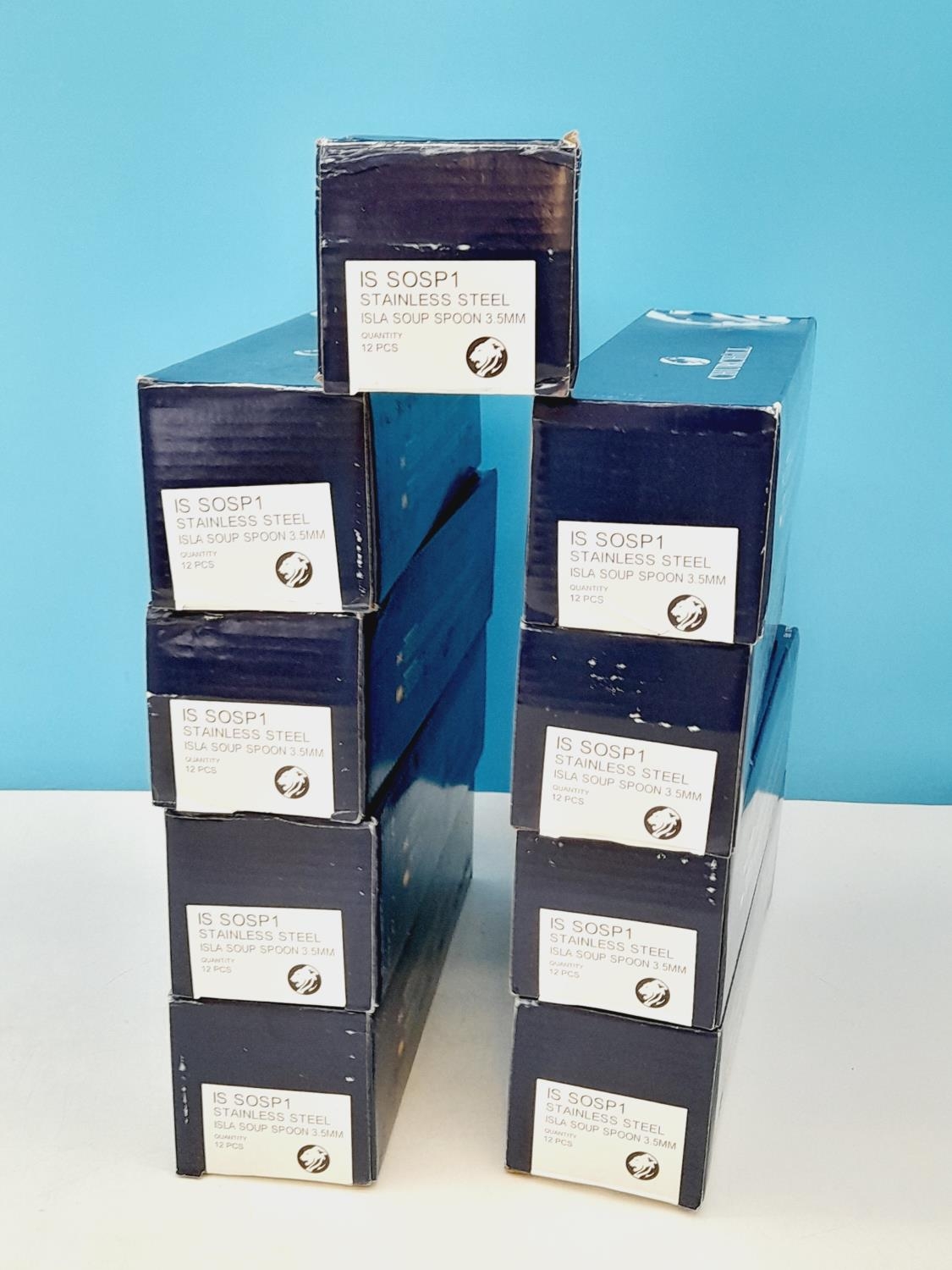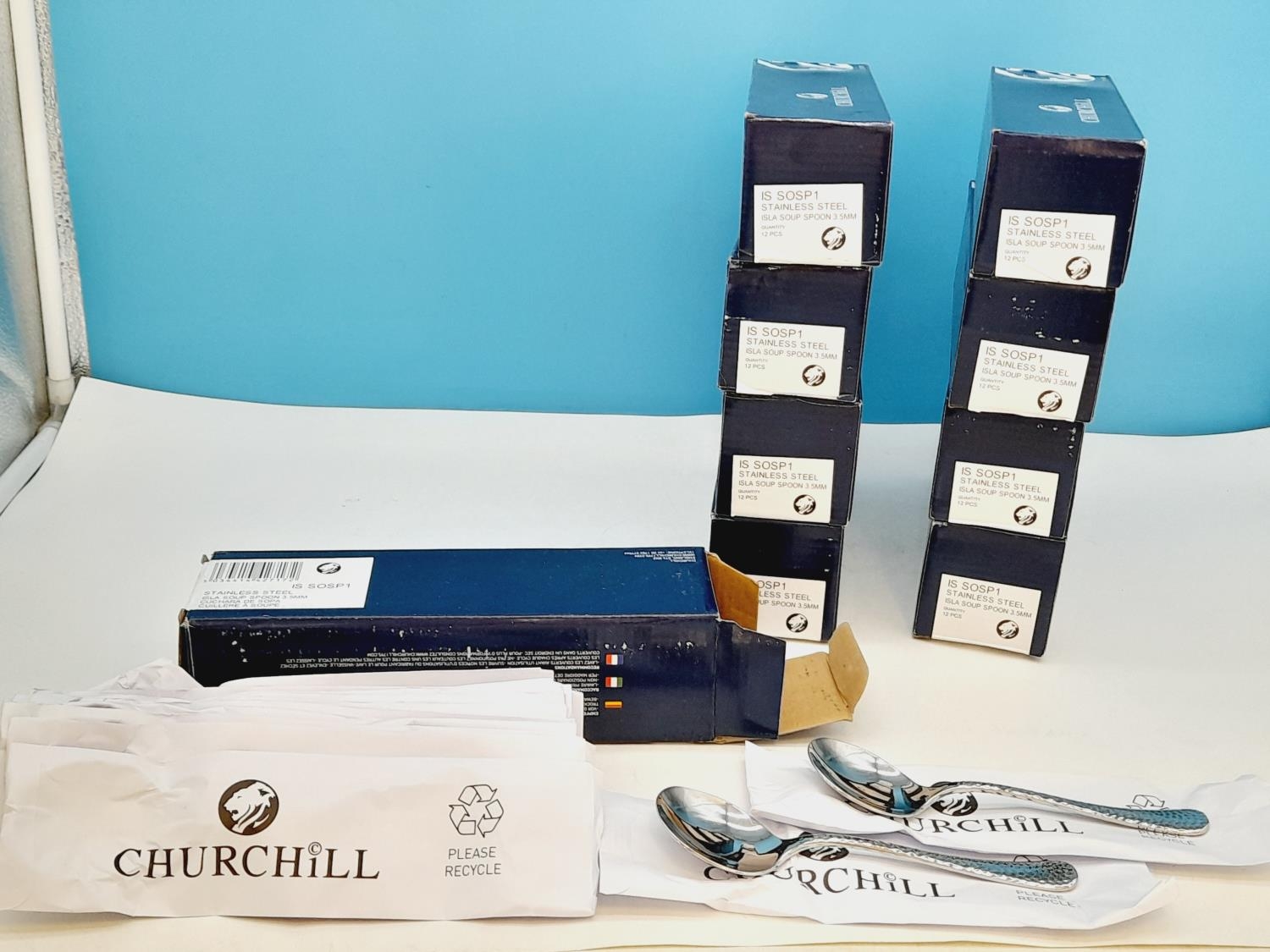 New 9 Boxes of 12 Stainless Steel Churchill 'Isla' Soup Spoons.