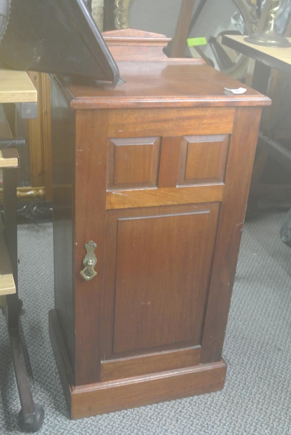 A mahogany single door cupboard with gallery back