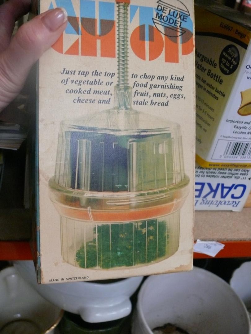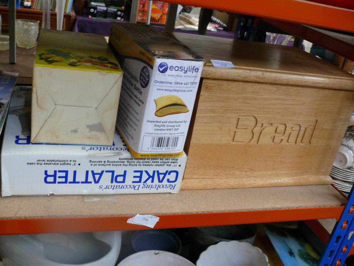 Wooden bread bin plus cake platter, mini chopper and rechargeable hot water botle