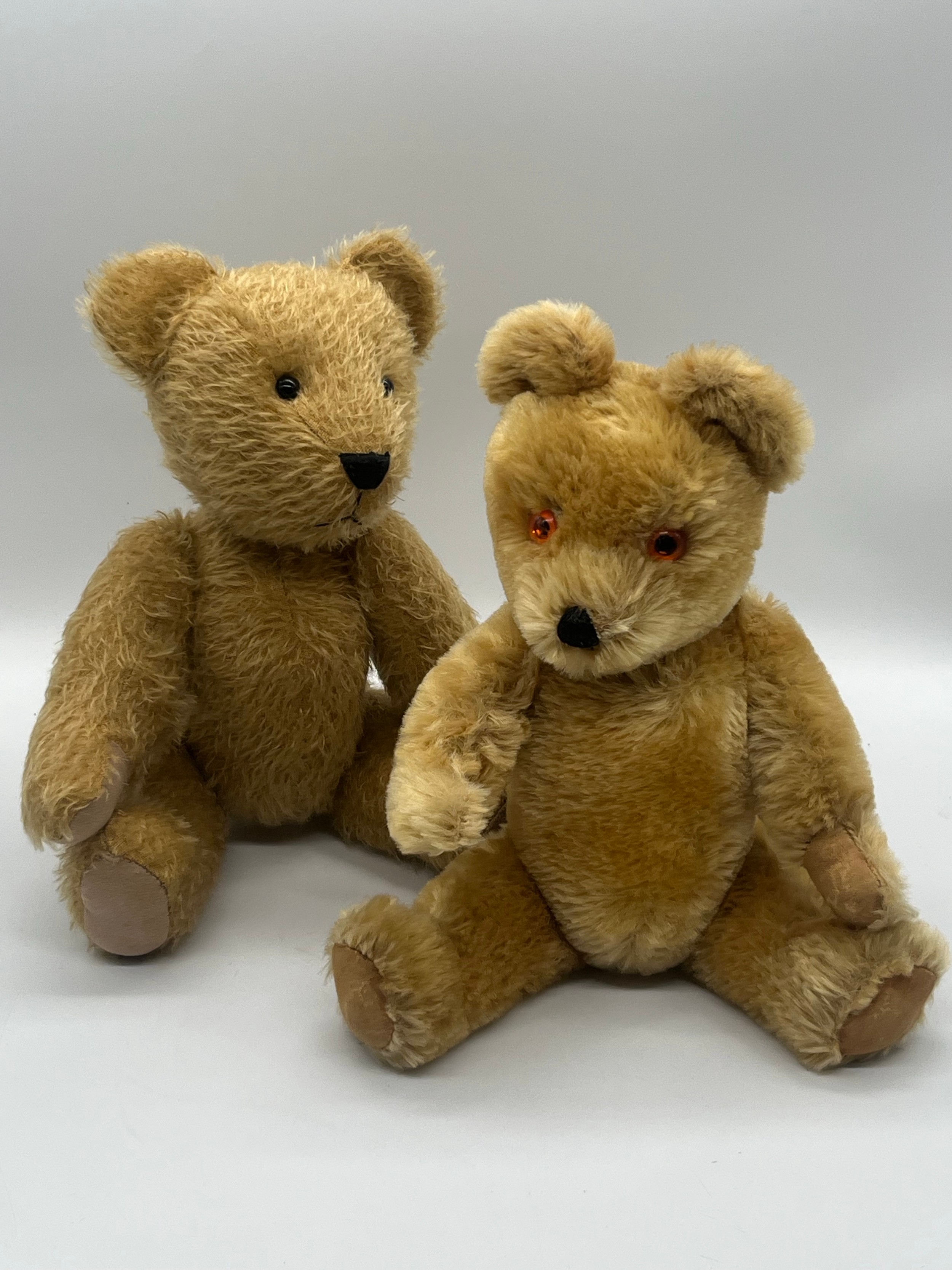 2 vintage jointed teddy bears - Growlies and Dean's 13" tall.