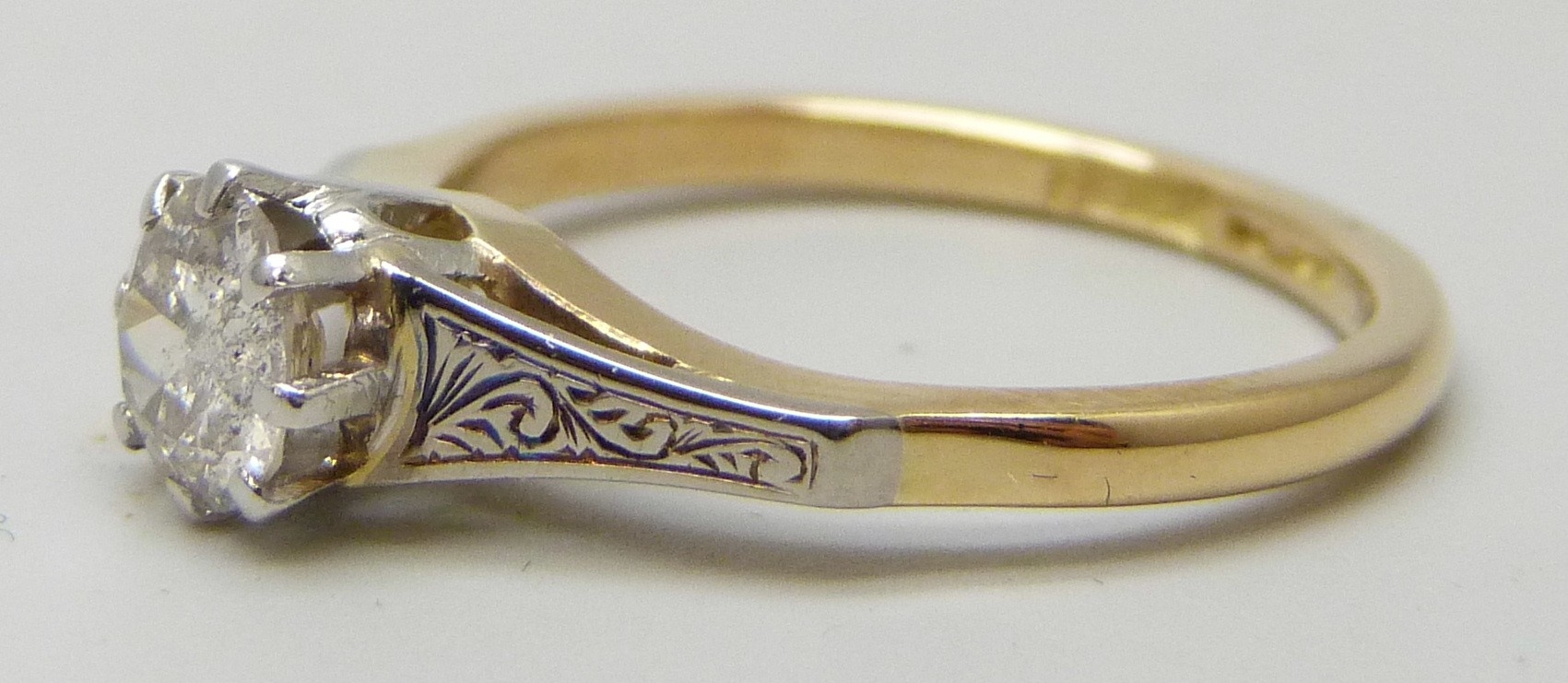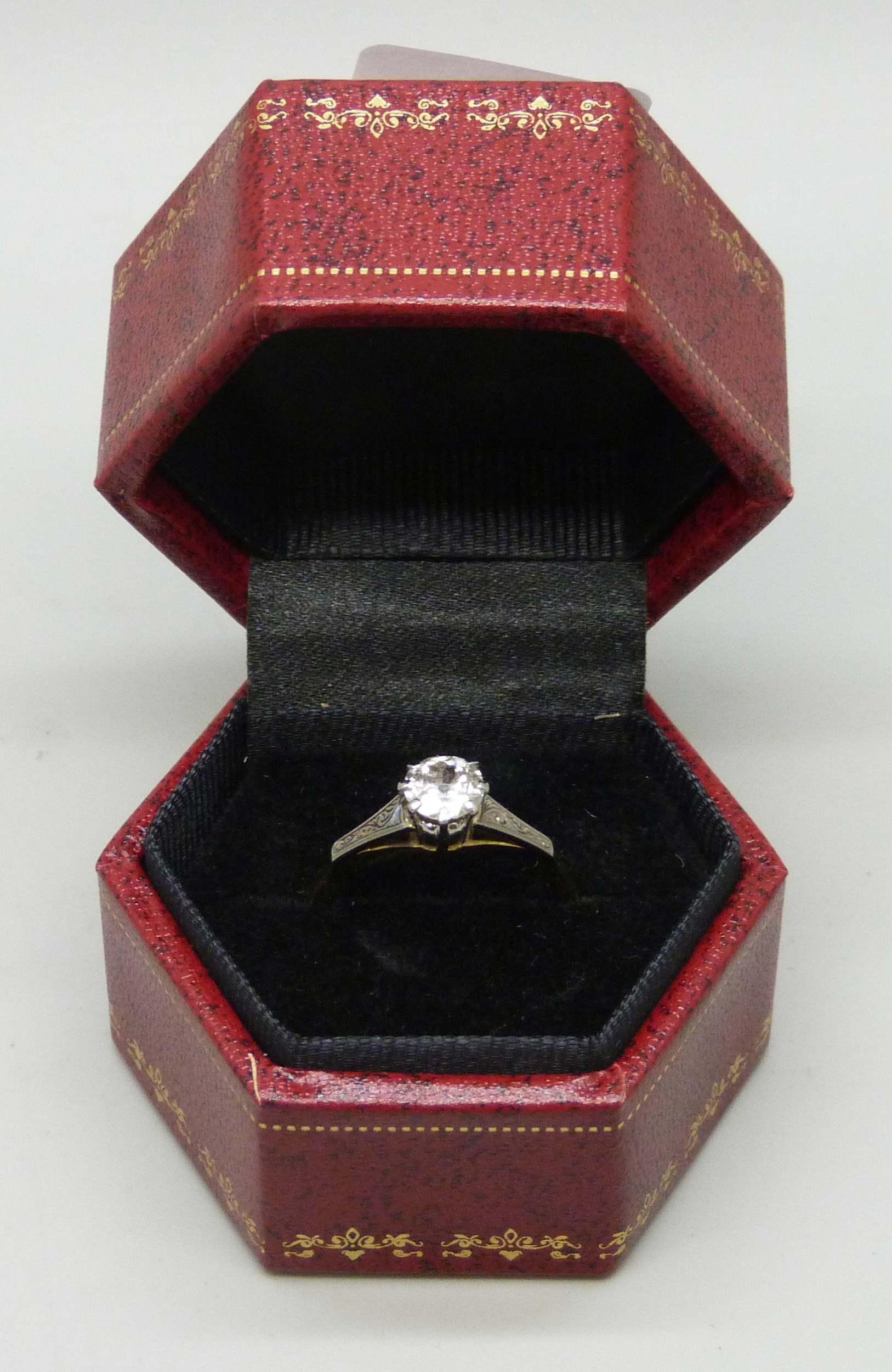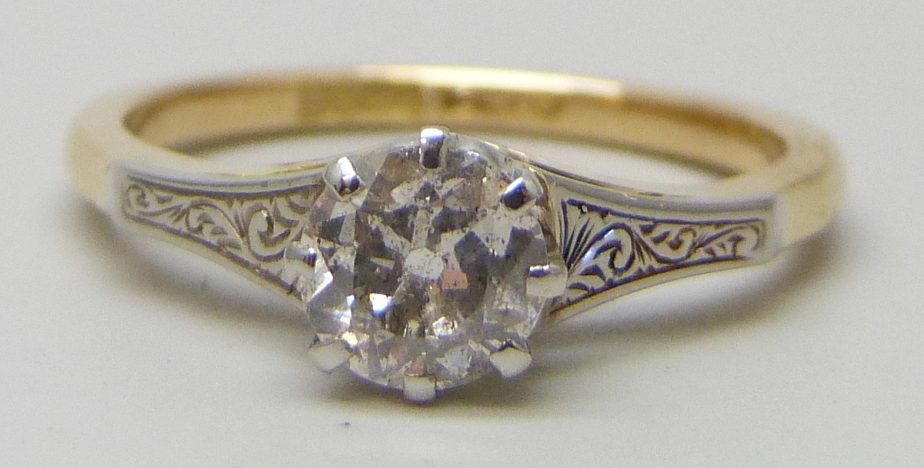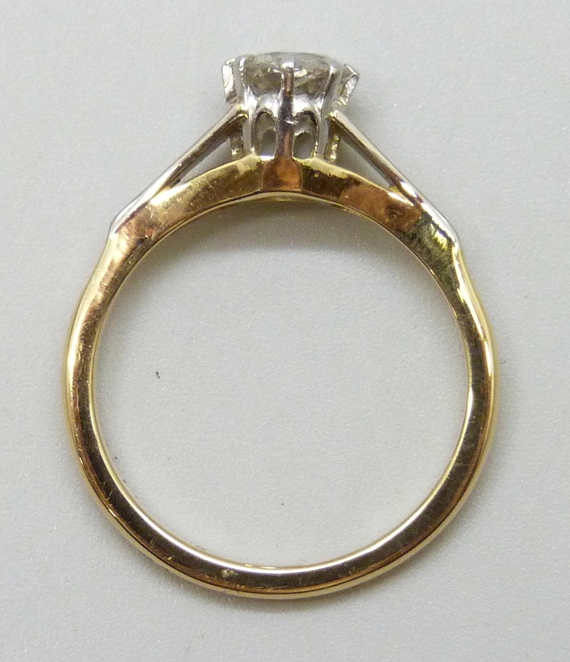 An 18ct gold and platinum early 20th century old cut diamond solitaire ring, diamond weight approximately 0.65 carat, 3.1g, L/M