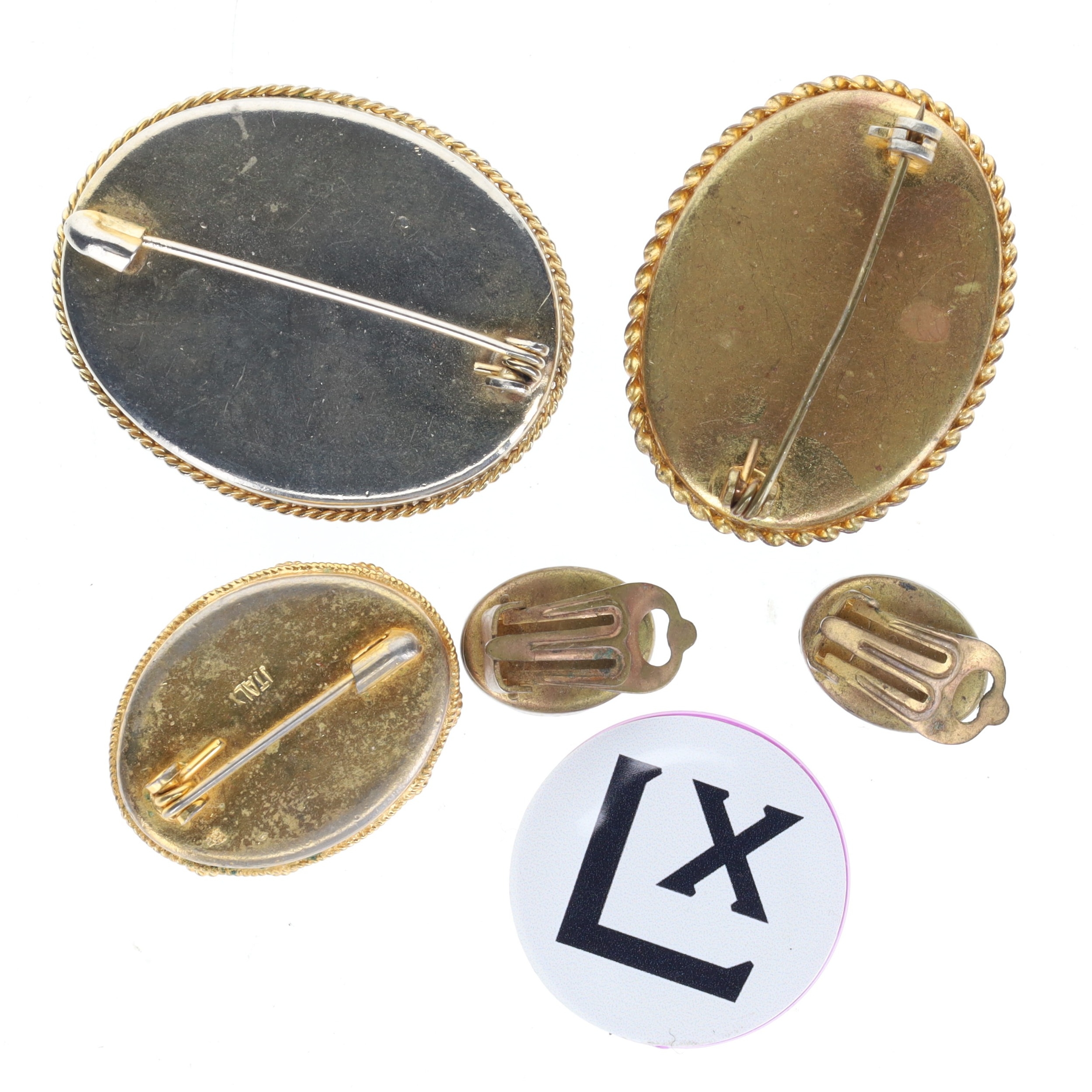 Micro Mosaic Jewellery Collection. There are some areas of plate wear, all pieces appear intact. Clasps are in working order, signs of wear due to age. Weighs in total 38g.